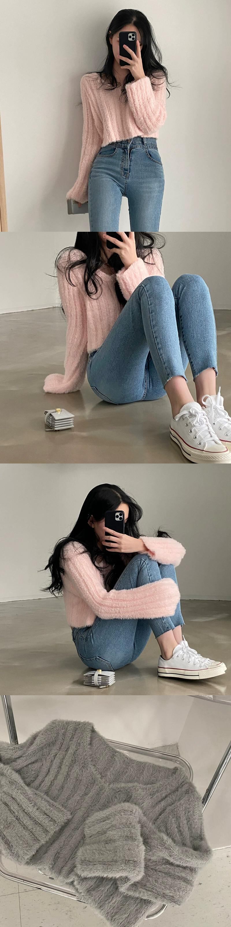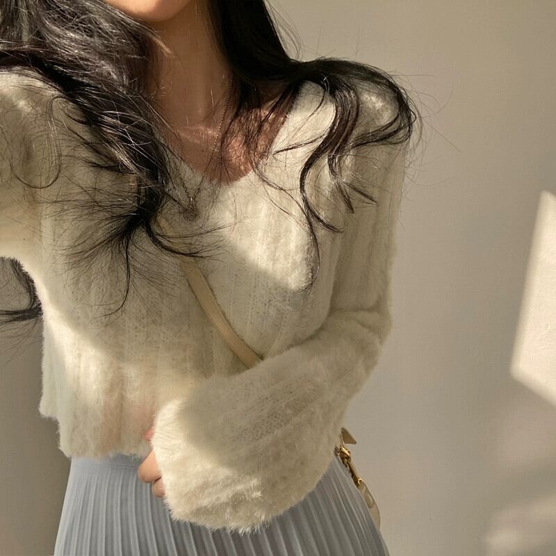 小さなハイウエストショートモヘアセーター女性の秋と冬のスタイルルーズアウターウェア痩身多目的長袖セーター ロング オータム 秋物 ウィンター 冬物 7460027853358364 | framboise21