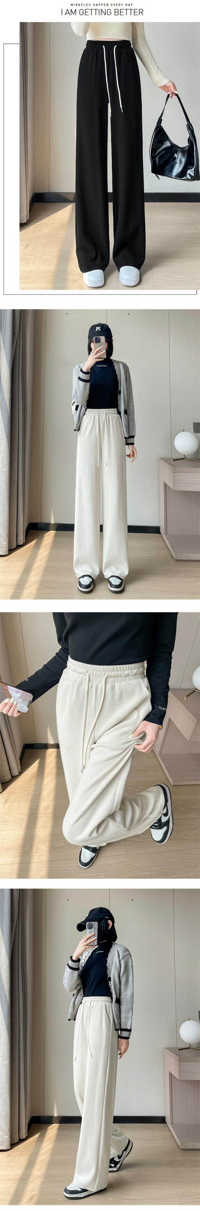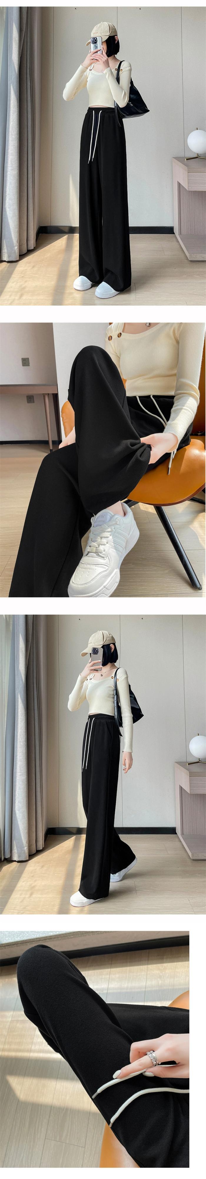 黒カシミヤワイドレッグパンツ女性 2023 秋冬新作レディースパンツハイウエストスリムドレープカジュアルストレートレッグフロアレングスパンツ ブラック オータム 秋物 ウィンター 冬物 7460074919797350 | framboise21