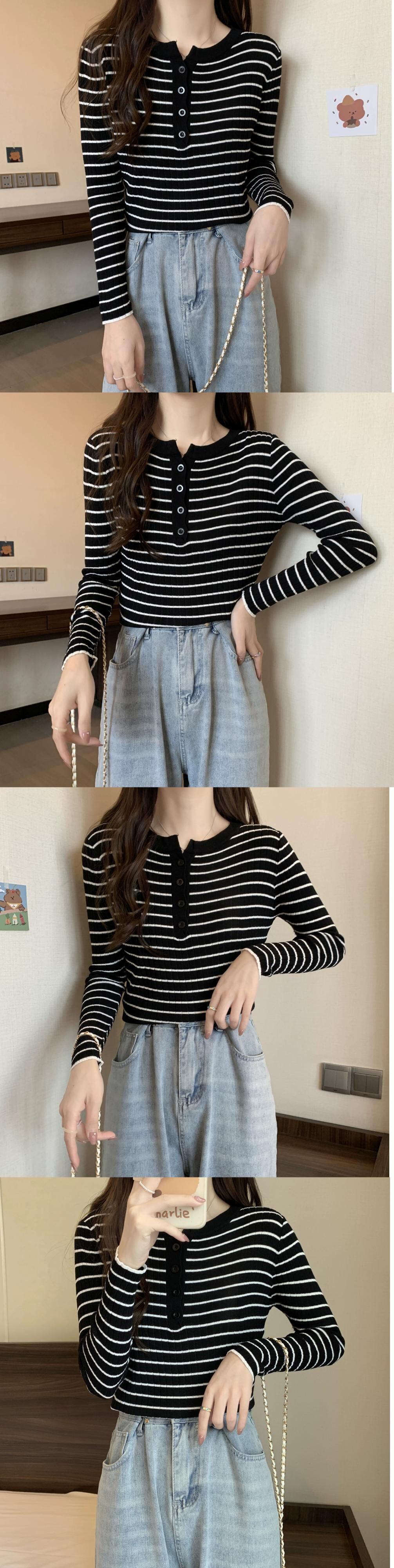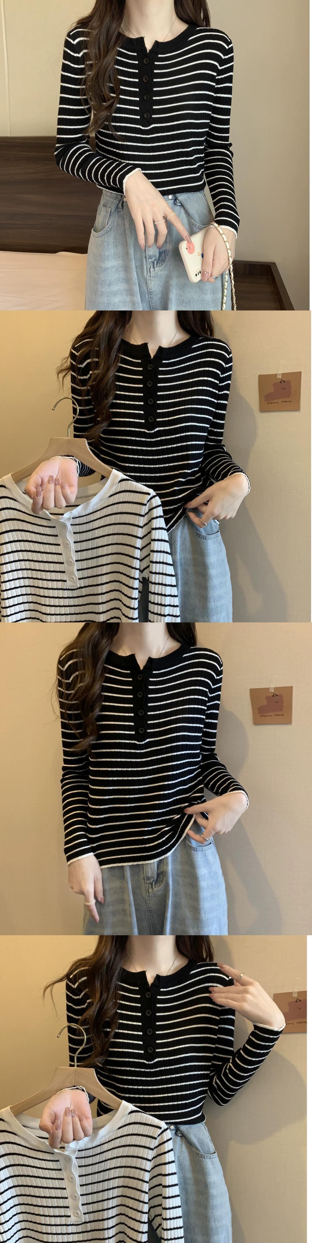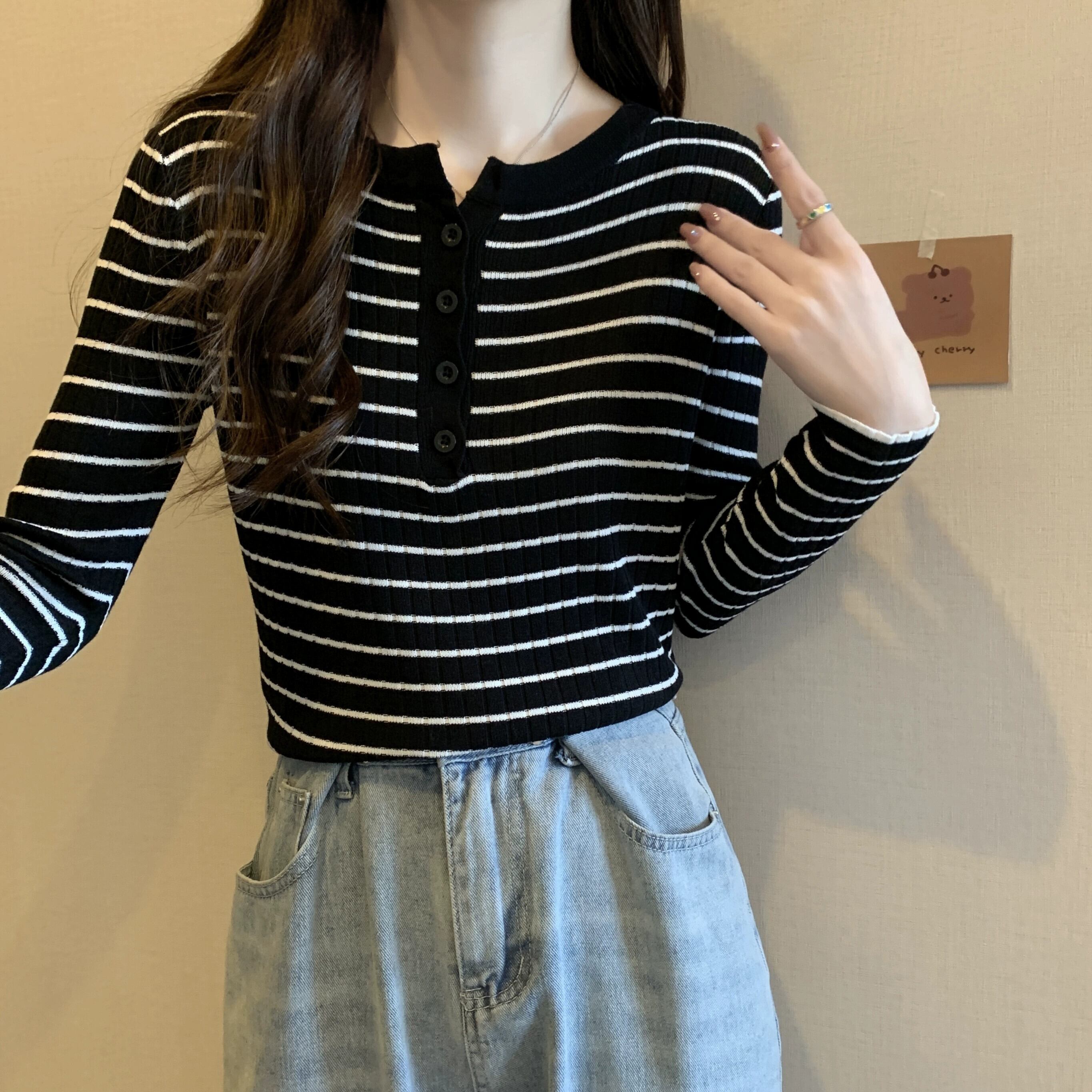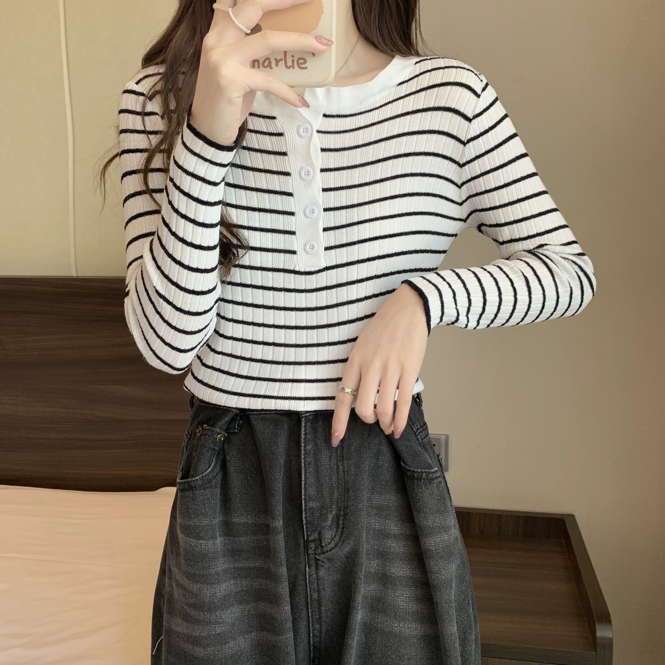 黒と白のストライプのボトムシャツ女性 2023 秋と冬の新しいスタイルのファッショナブルでルーズな痩身インナー長袖セーター ロング ホワイト ブラック オータム 秋物 ウィンター 冬物 7460040567718617 | framboise21