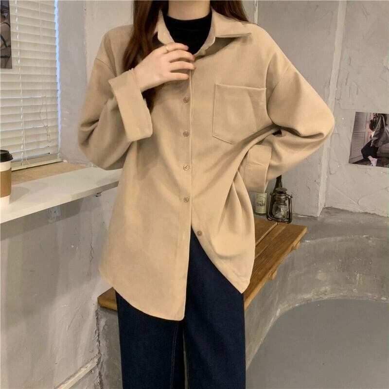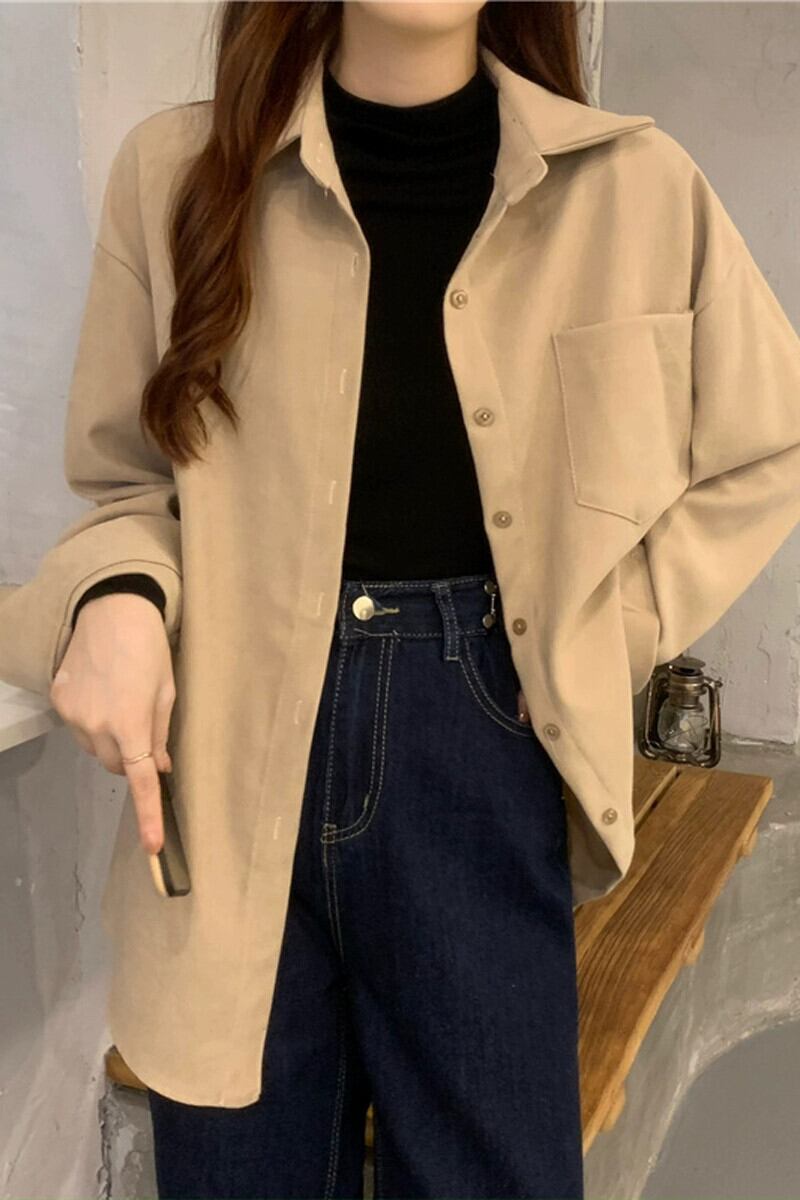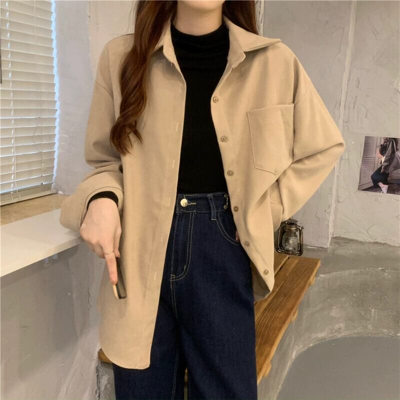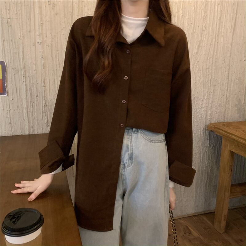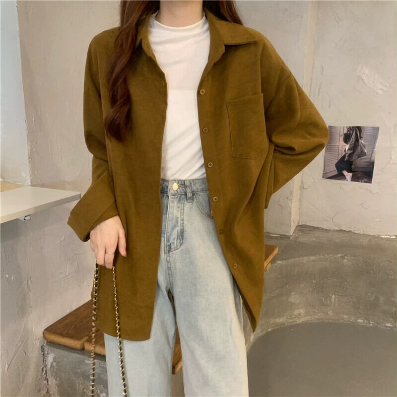 ミッドレングスのコーデュロイシャツジャケットレディース、秋冬スタイル、レトロなルーズ、スリム、多用途な重ね着、内側に長袖シャツ ロング オータム 秋物 ウィンター 冬物 7460098156235754 | framboise21