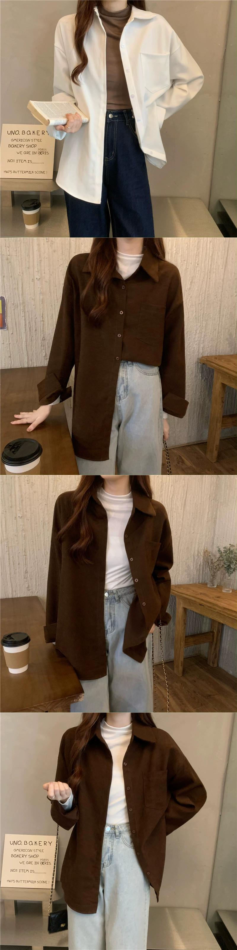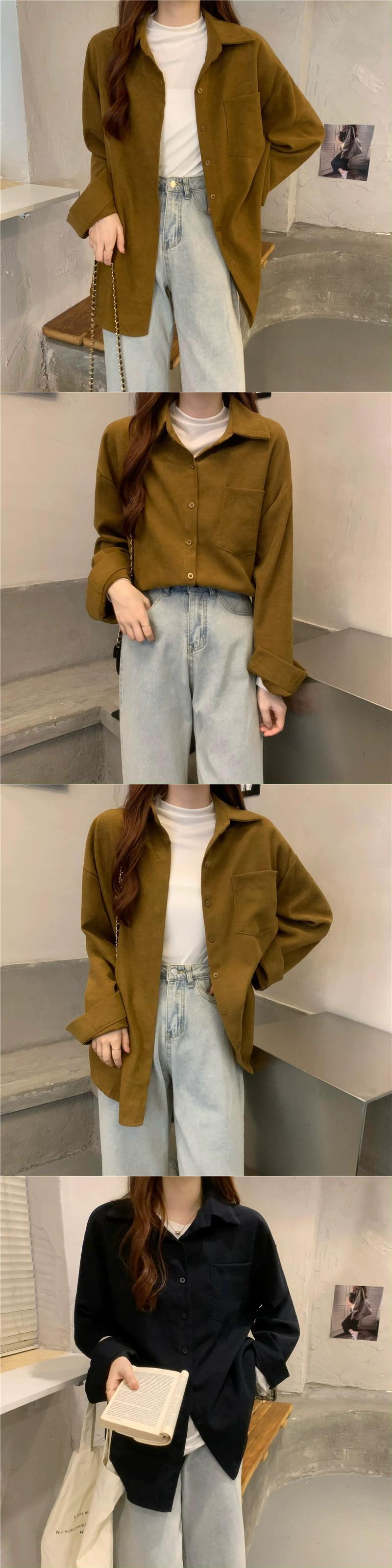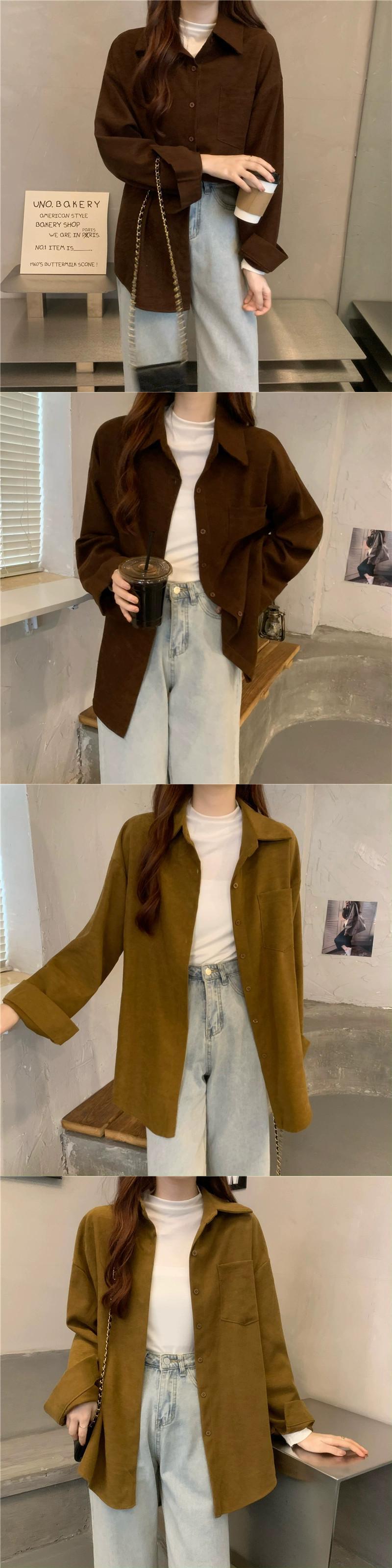 ミッドレングスのコーデュロイシャツジャケットレディース、秋冬スタイル、レトロなルーズ、スリム、多用途な重ね着、内側に長袖シャツ ロング オータム 秋物 ウィンター 冬物 7460098156235754 | framboise21