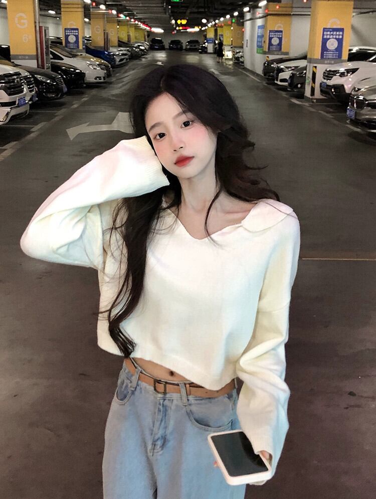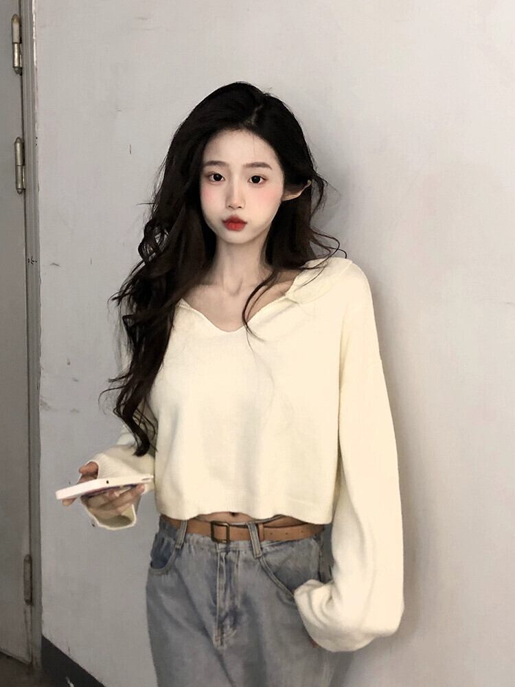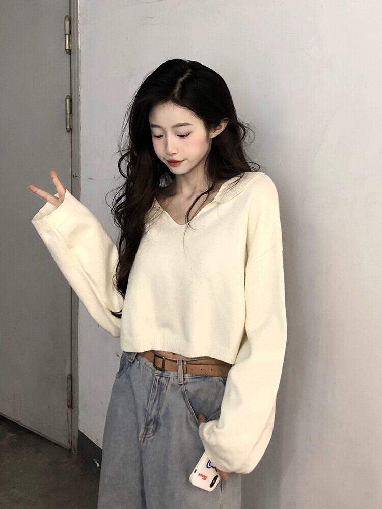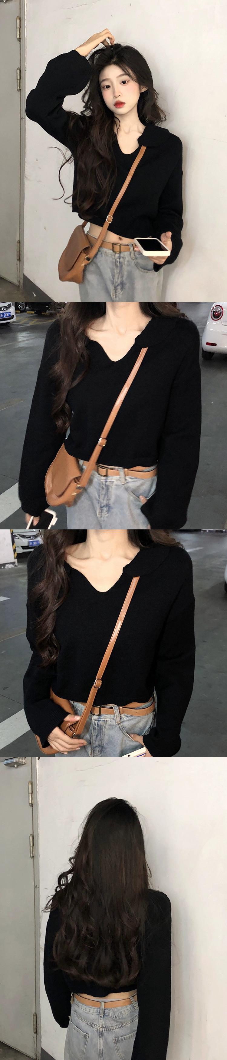 秋と冬の小さな短いポロカラーのセーターの女性、フランスのルーズなアウターウェア、怠惰なスタイル、内側の長袖ニットトップ ショート ロング オータム 秋物 ウィンター 冬物 7460039862025952 | framboise21
