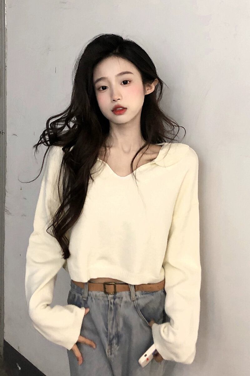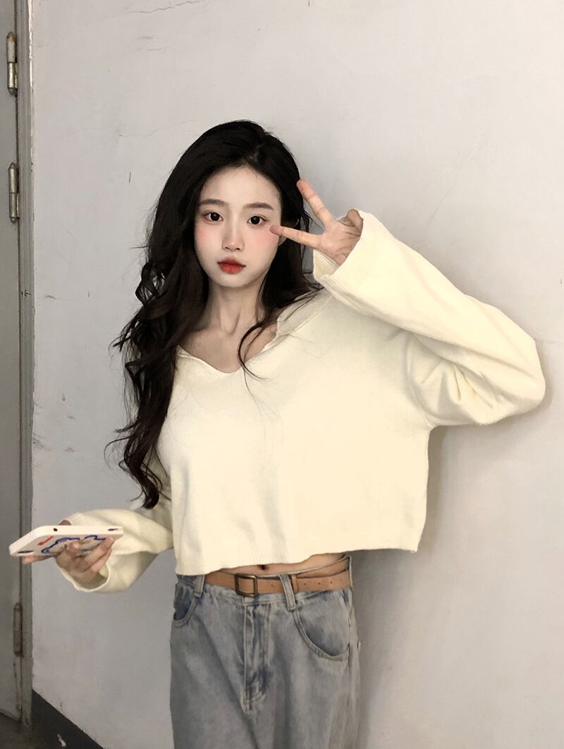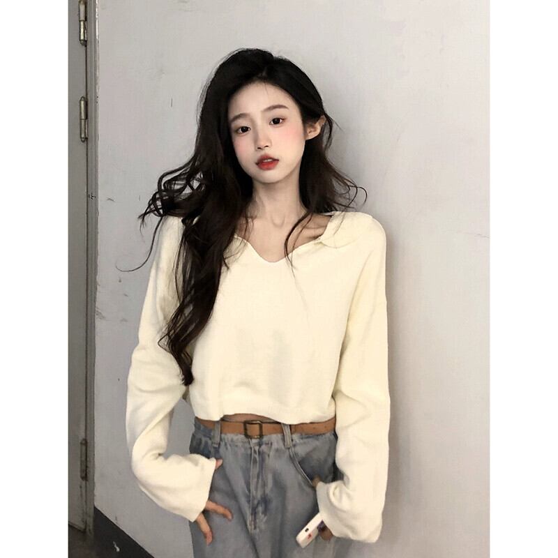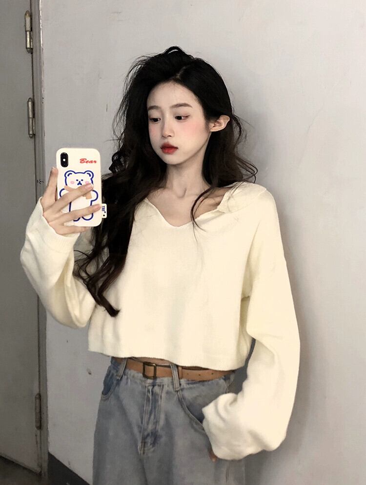 秋と冬の小さな短いポロカラーのセーターの女性、フランスのルーズなアウターウェア、怠惰なスタイル、内側の長袖ニットトップ ショート ロング オータム 秋物 ウィンター 冬物 7460039862025952 | framboise21