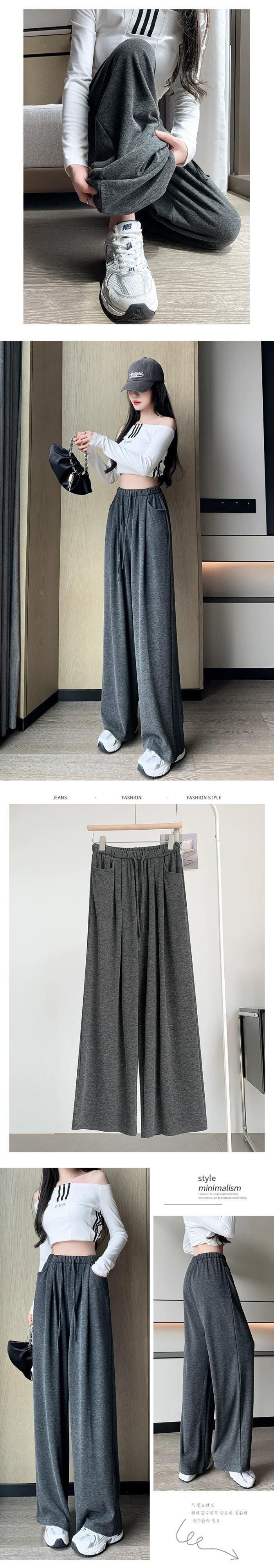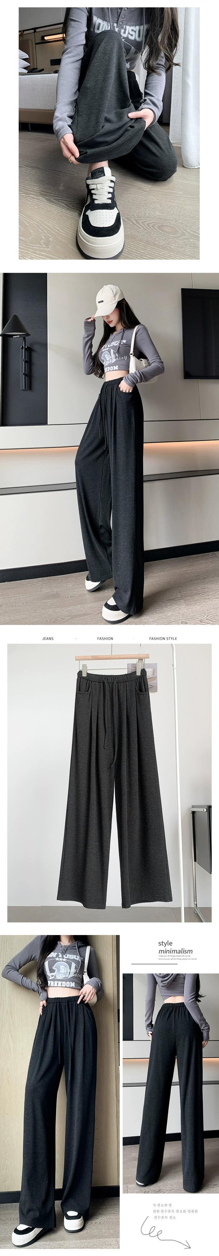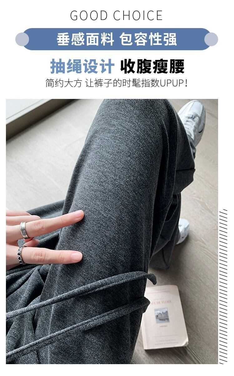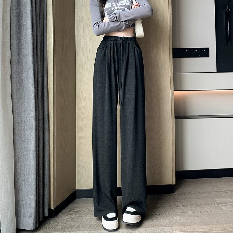ダークグレーの狭いワイドレッグパンツの女性 2023 新しい秋と冬の怠惰なスタイルルーズ痩身ストレートドレープカジュアルパンツ オータム 秋物 ウィンター 冬物 7460083655167857 | framboise21