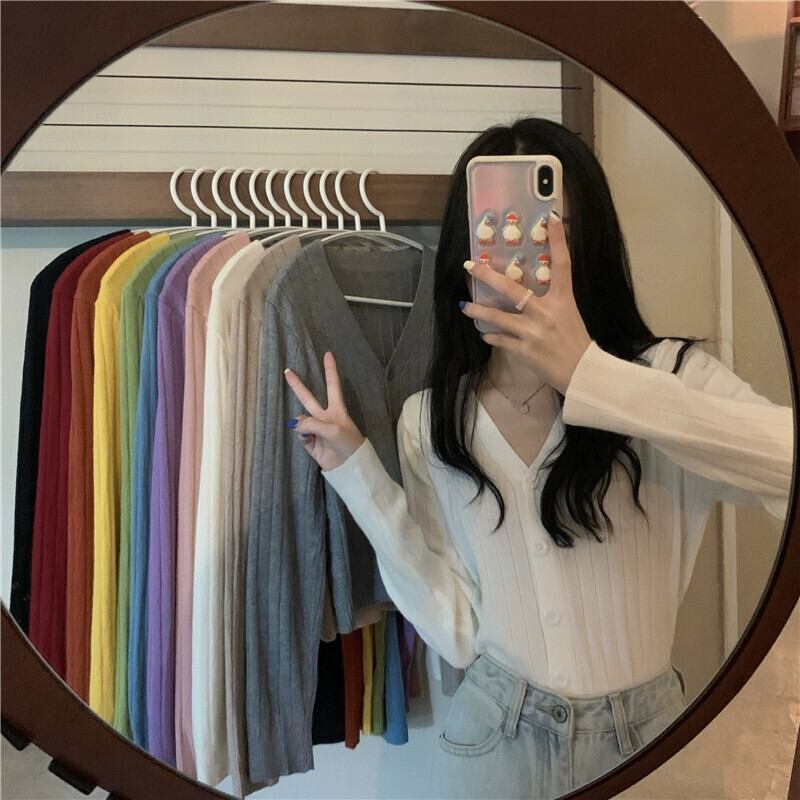 V ネックニットカーディガンジャケット女性秋冬 2023 新しい緩いファッショナブルなスタイルスリムショート長袖セーターグレー ロング オータム 秋物 ウィンター 冬物 Vネック 7460019005497494 | framboise21