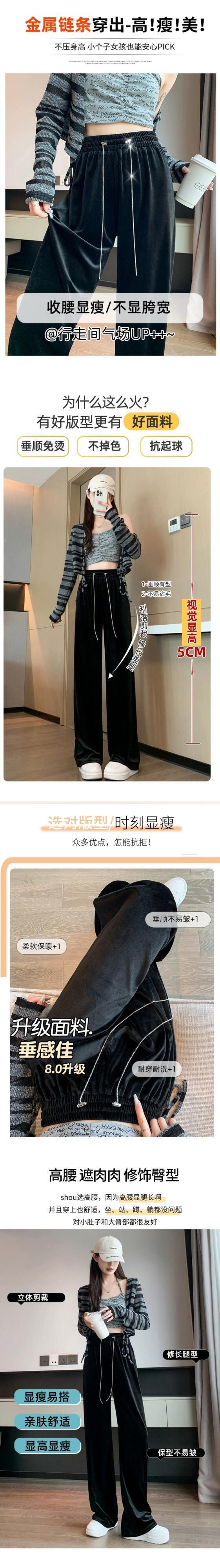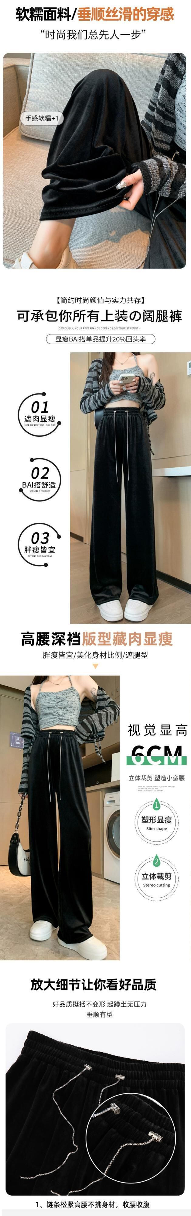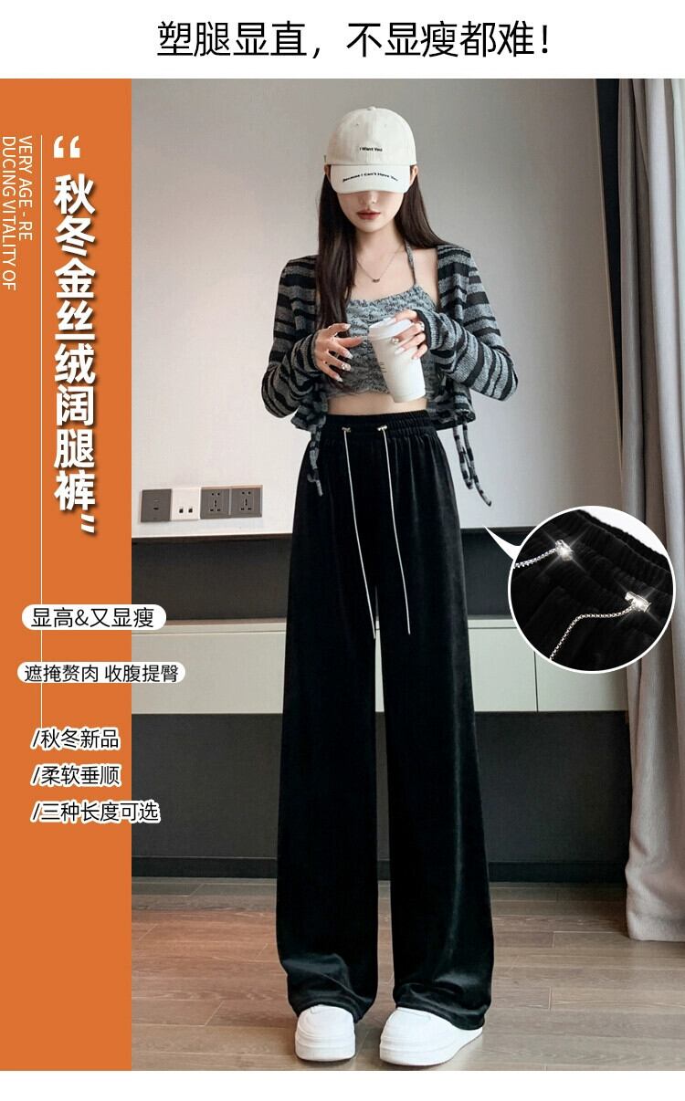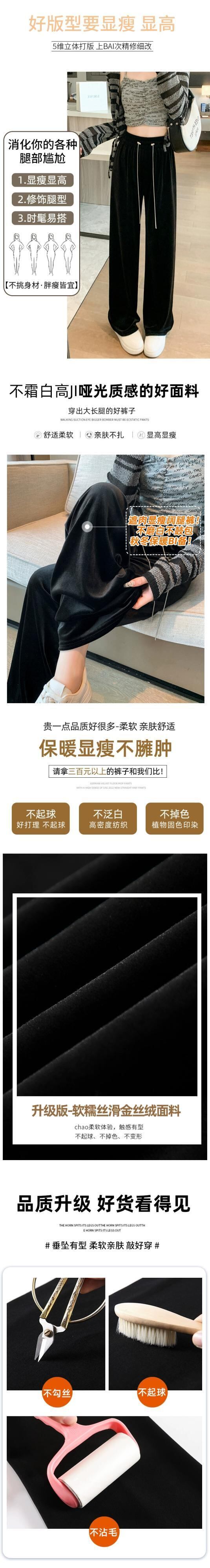ゴールドベルベットワイドレッグパンツ女性 2023 秋と冬の新しいチェーン弾性ハイウエストカジュアルパンツルーズストレートドレープパンツ エラスティック 伸縮 オータム 秋物 ウィンター 冬物 7460050281616674 | framboise21