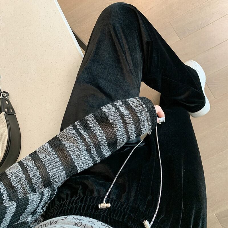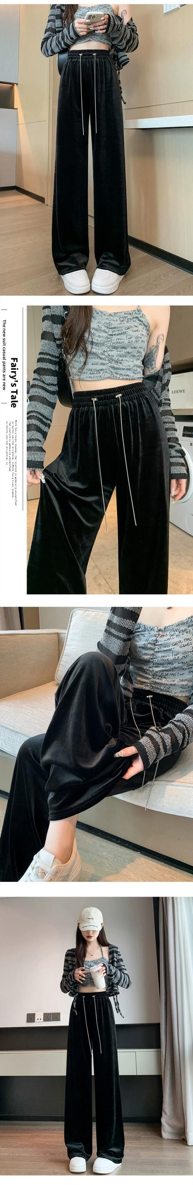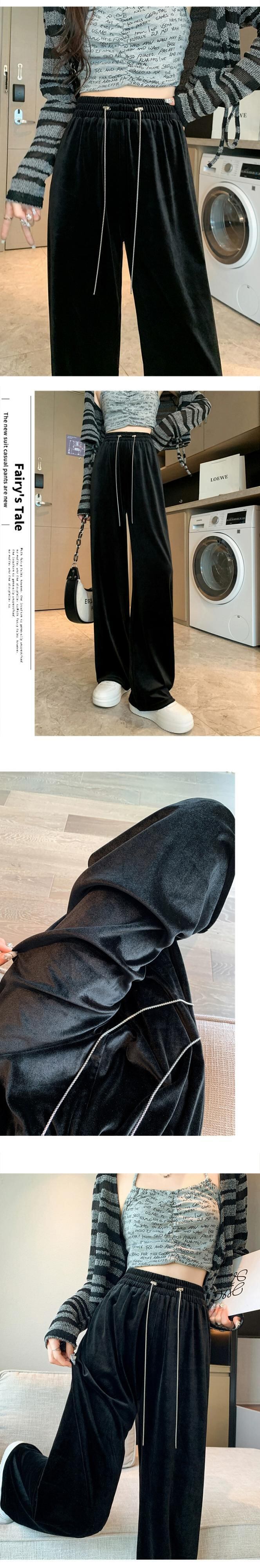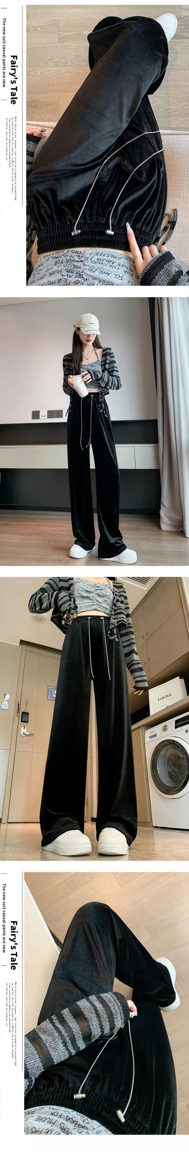 ゴールドベルベットワイドレッグパンツ女性 2023 秋と冬の新しいチェーン弾性ハイウエストカジュアルパンツルーズストレートドレープパンツ エラスティック 伸縮 オータム 秋物 ウィンター 冬物 7460050281616674 | framboise21