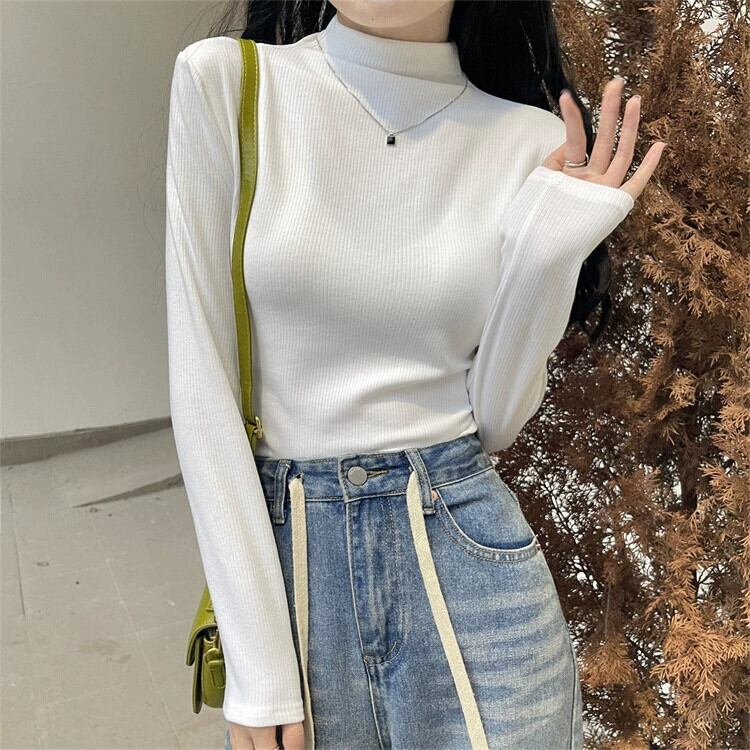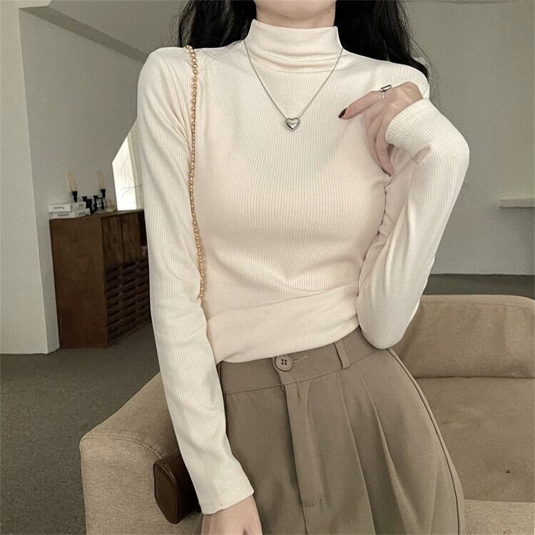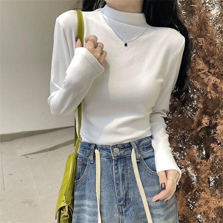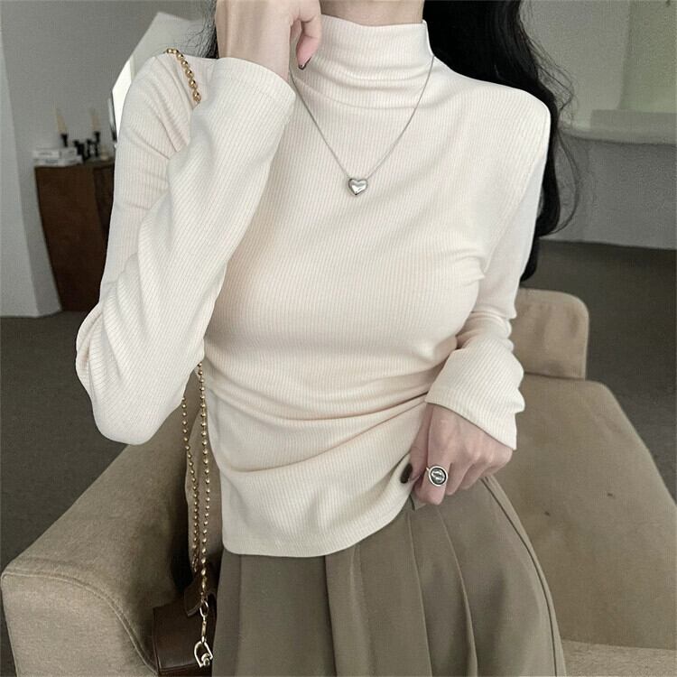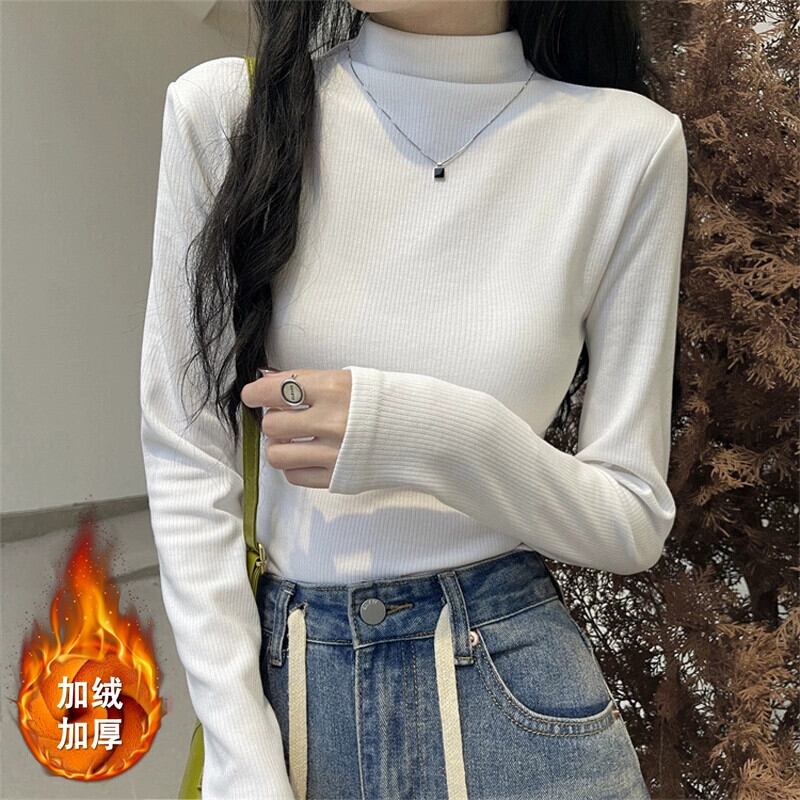 ベルベット肥厚ハーフタートルネックボトリングシャツ女性の秋と冬の新スタイル 2023 スタイルファッショナブルなスタイルインナー長袖 Tシャツ白 ロング ホワイト オータム 秋物 ウィンター 冬物 7460098924077742 | framboise21