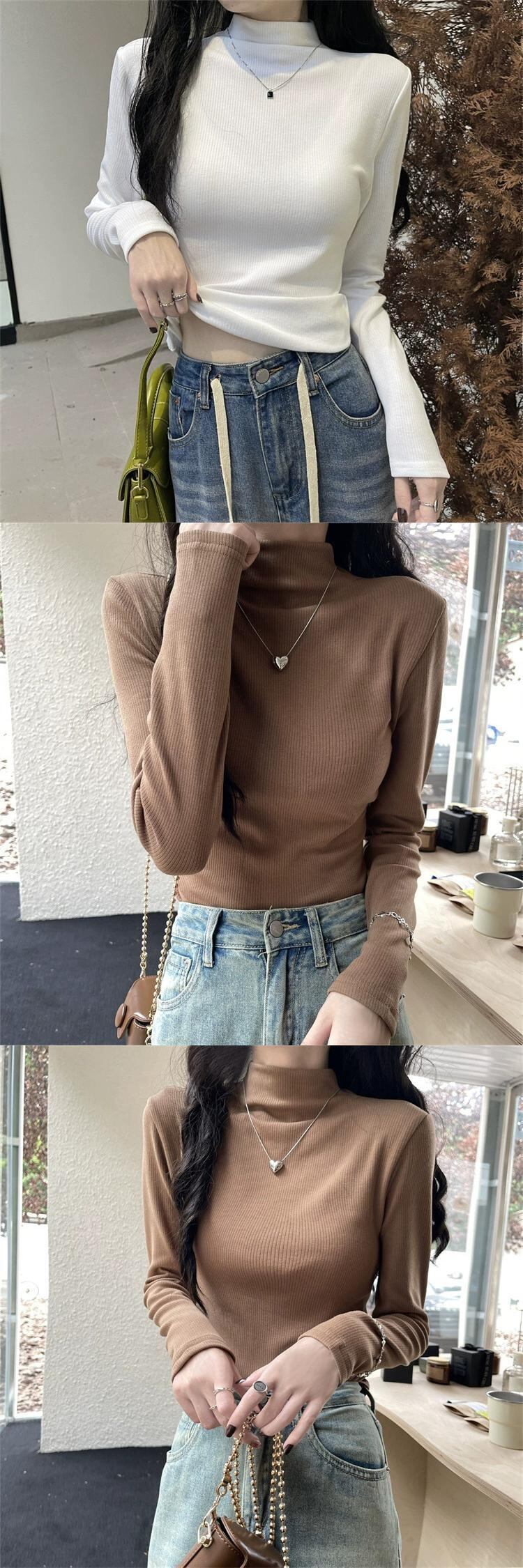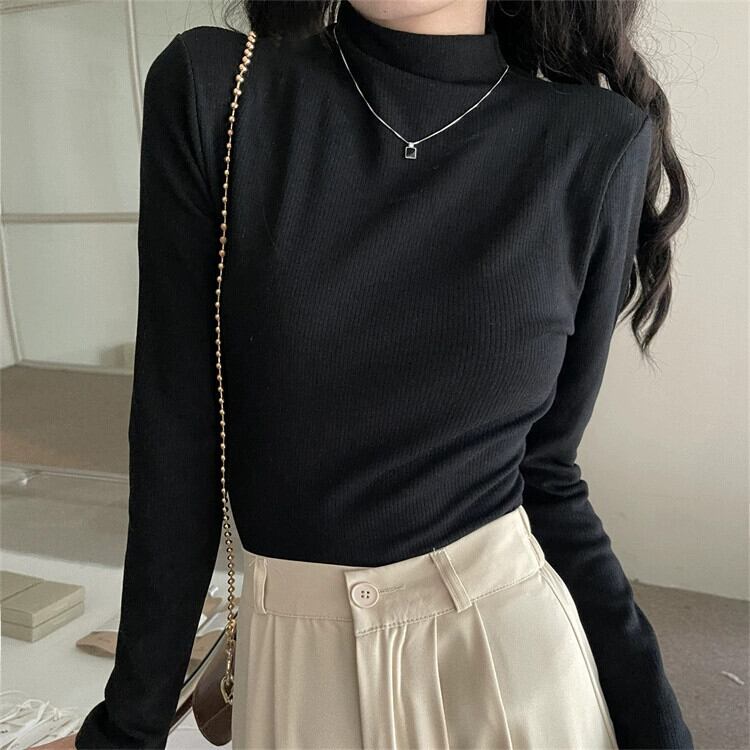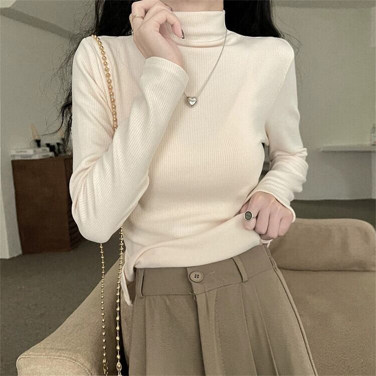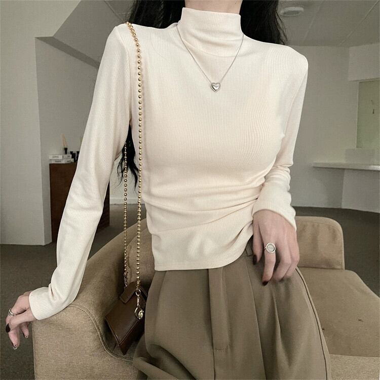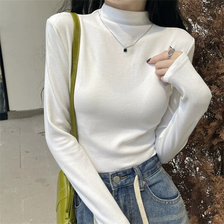 ベルベット肥厚ハーフタートルネックボトリングシャツ女性の秋と冬の新スタイル 2023 スタイルファッショナブルなスタイルインナー長袖 Tシャツ白 ロング ホワイト オータム 秋物 ウィンター 冬物 7460098924077742 | framboise21