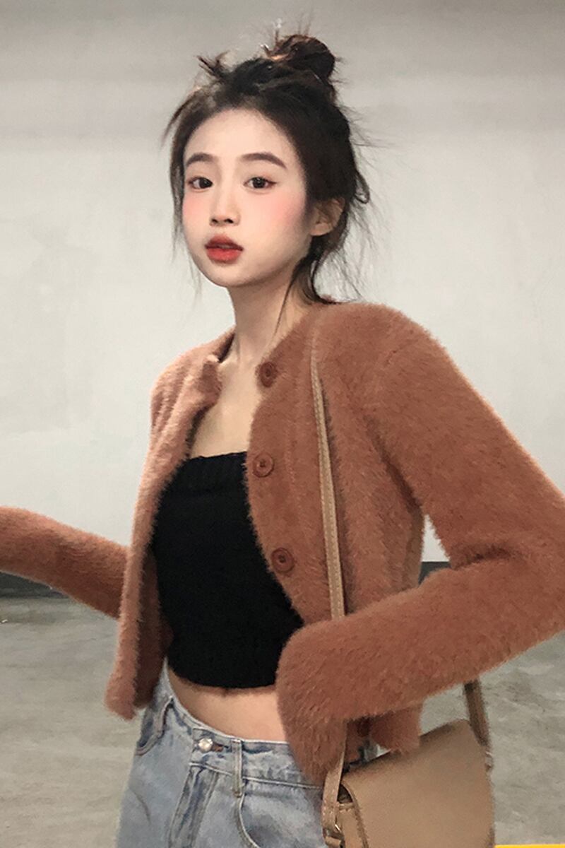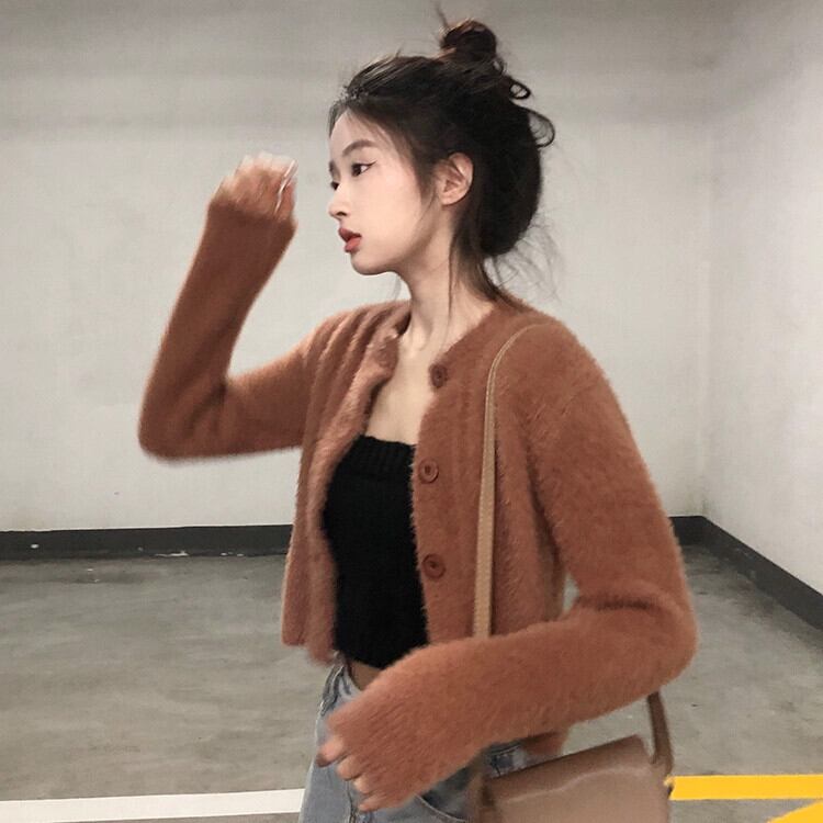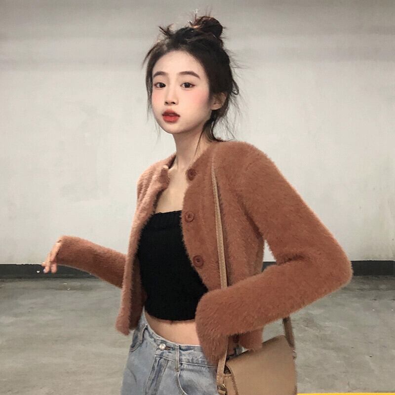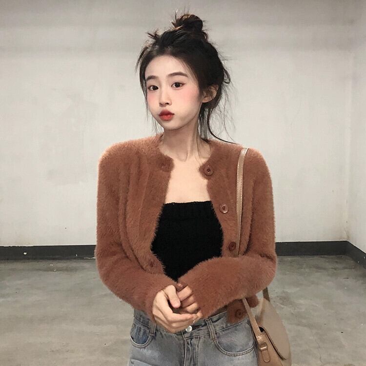厚みのある模造ミンクベルベットセータージャケット女性、秋と冬のレトロなルーズアウターウェア、ショートニットカーディガン小さなネクタイ オータム 秋物 ウィンター 冬物 7460044271843297 | framboise21