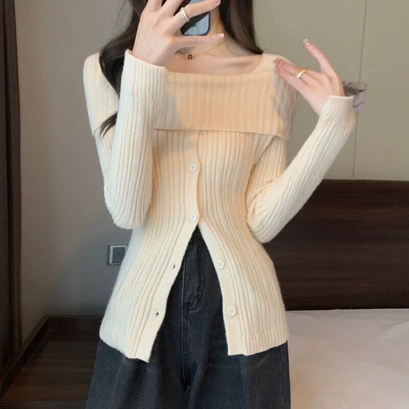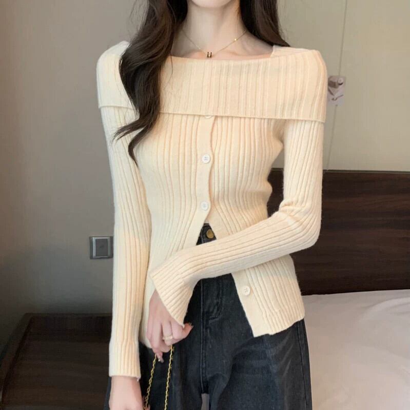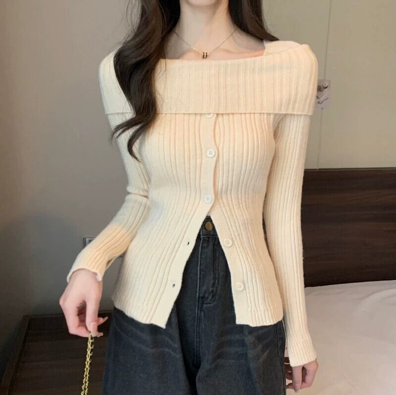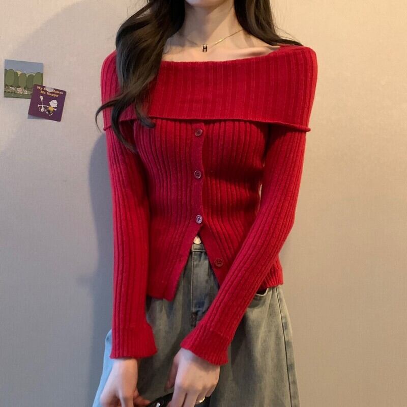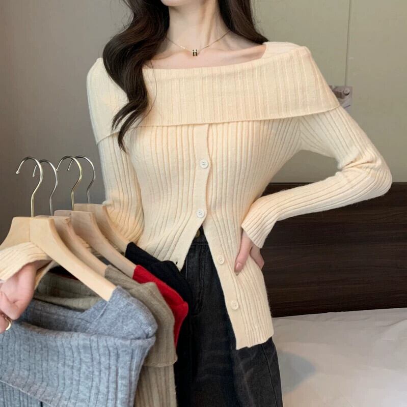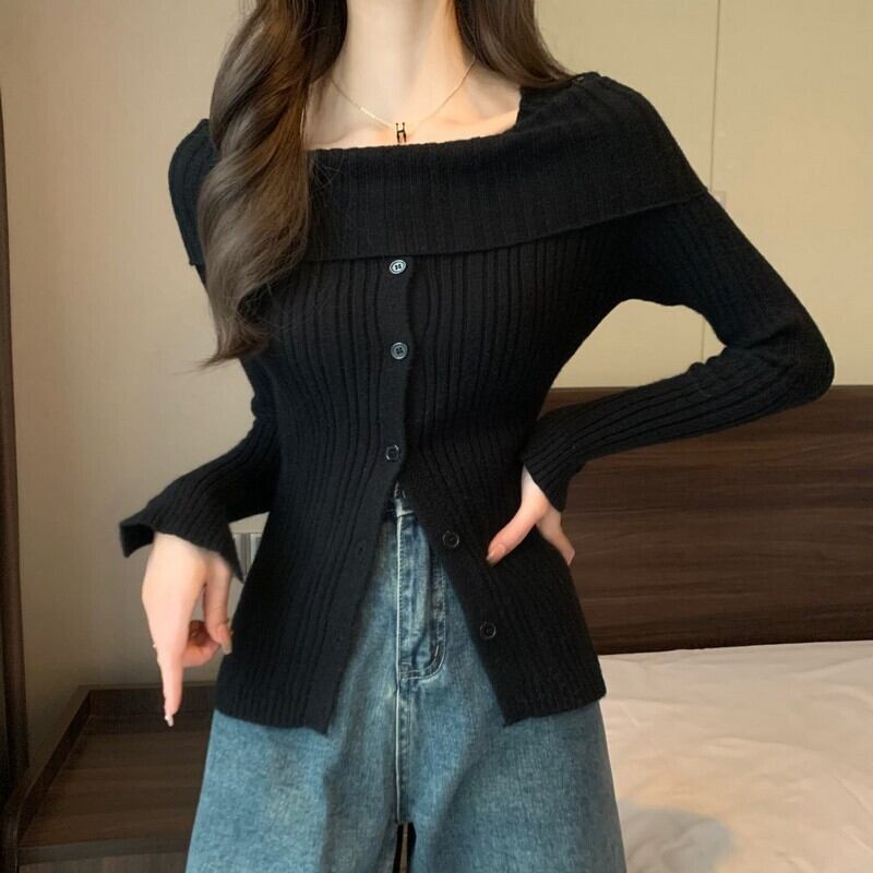 秋冬の不規則なショートニットボトムシャツ女性、ファッショナブルでスリム、ワンショルダー長袖セーター付き ロング オータム 秋物 ウィンター 冬物 7460018928508013 | framboise21
