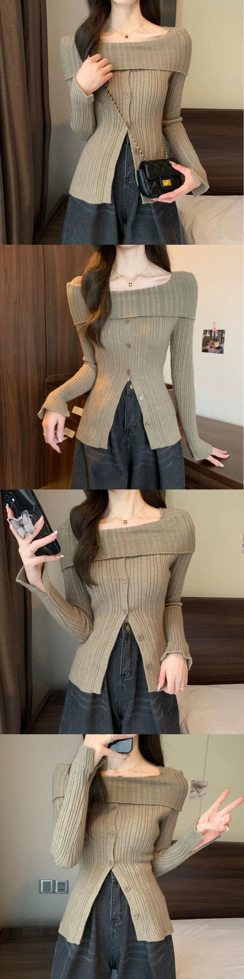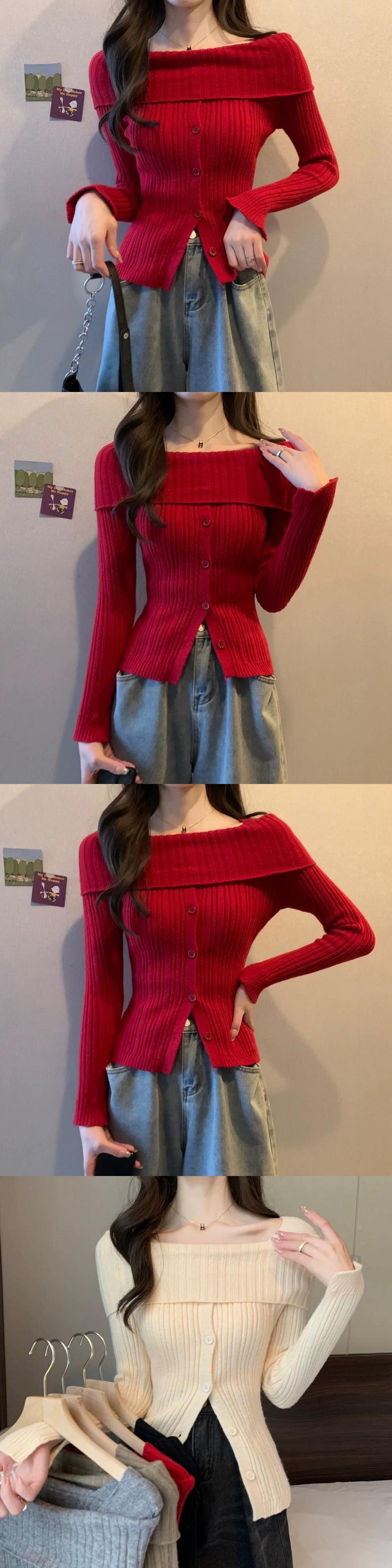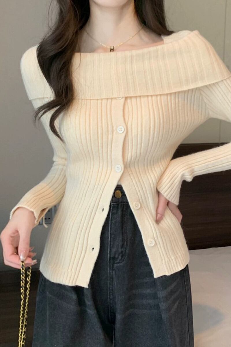 秋冬の不規則なショートニットボトムシャツ女性、ファッショナブルでスリム、ワンショルダー長袖セーター付き ロング オータム 秋物 ウィンター 冬物 7460018928508013 | framboise21