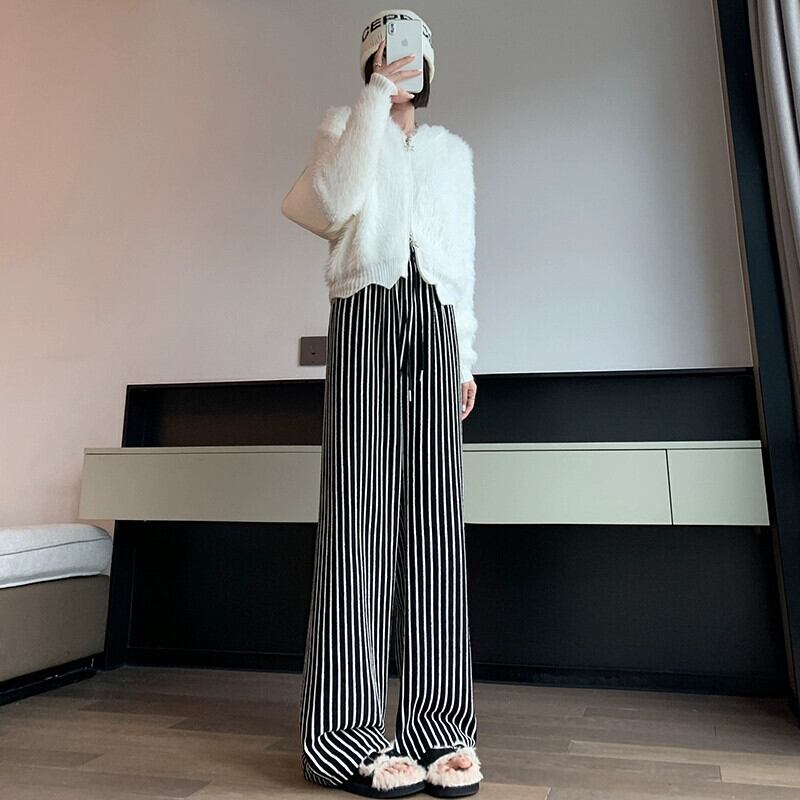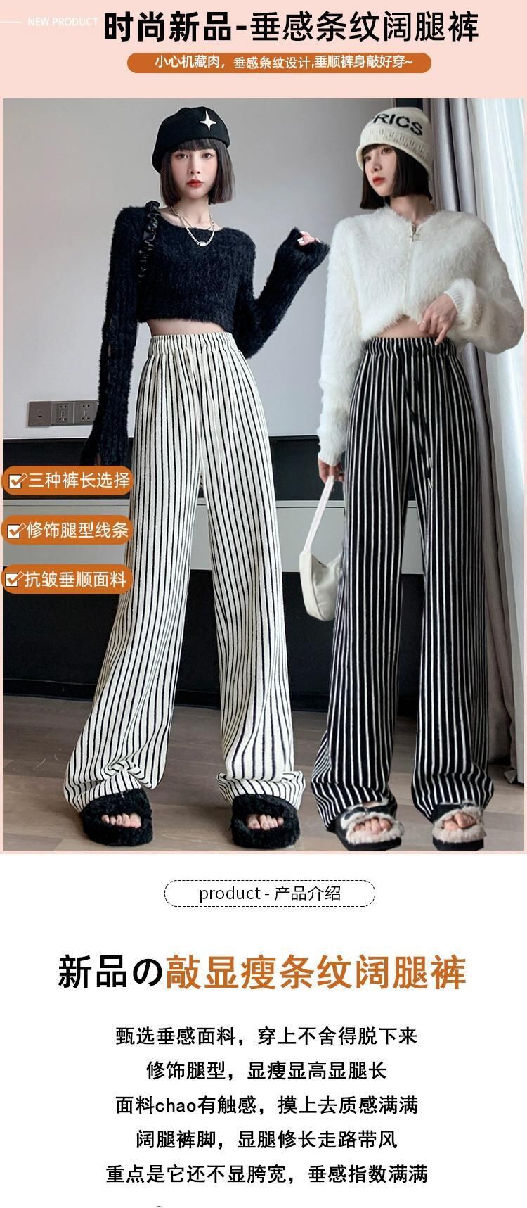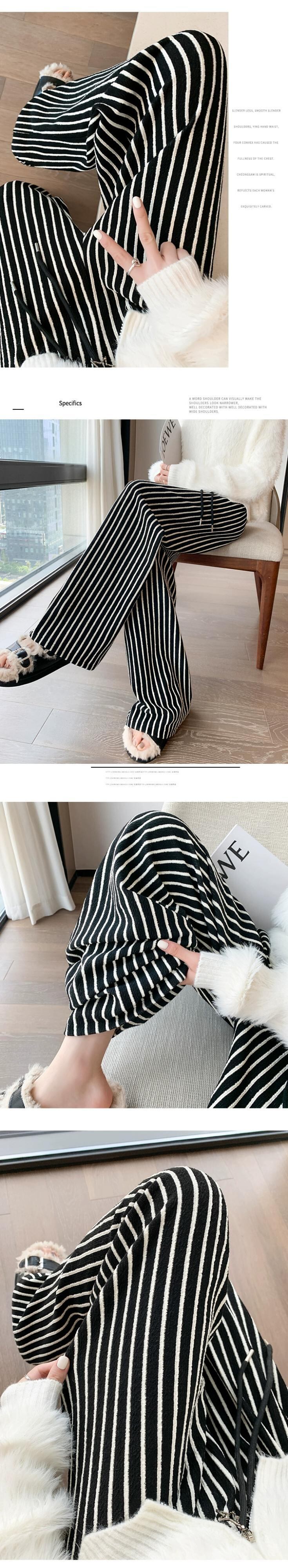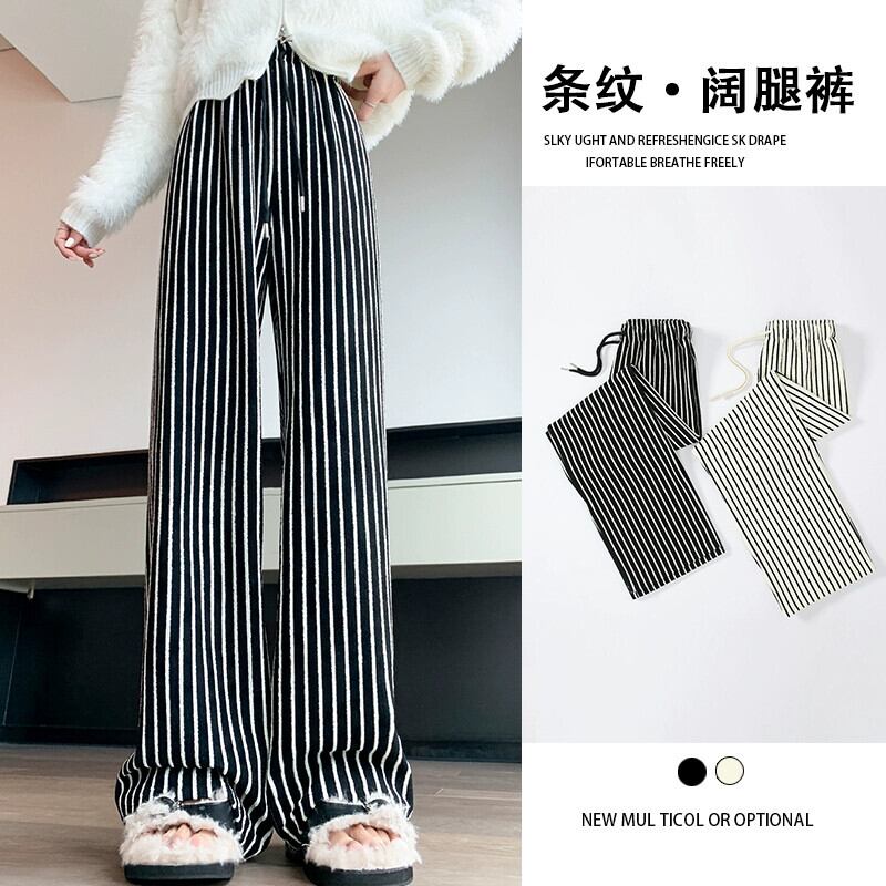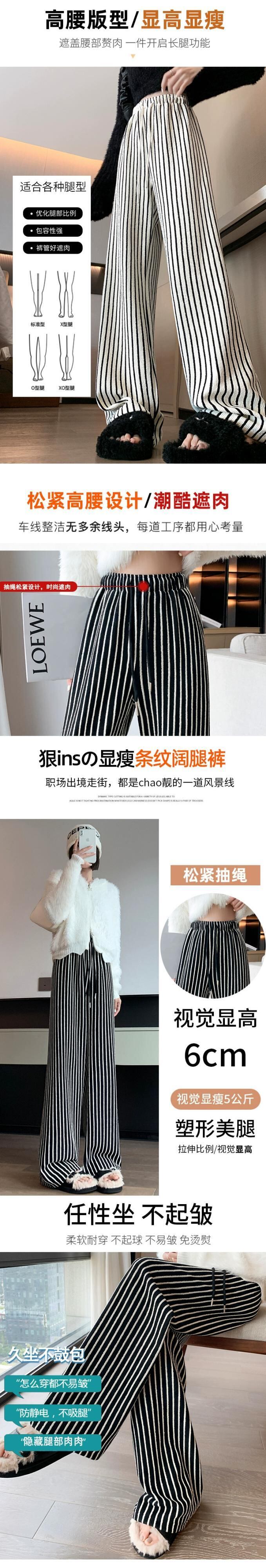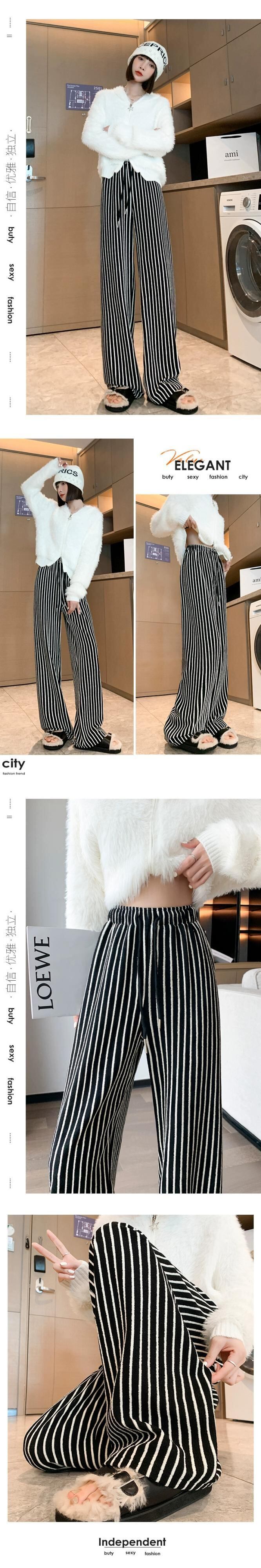 秋冬のプリーツテクスチャーストライプワイドレッグパンツレディース、怠惰なスタイルのハイウエストドレープパンツ、ルーズストレートレッグカジュアルパンツレディース レッド ウィンター 冬物 7460070996742052 | framboise21