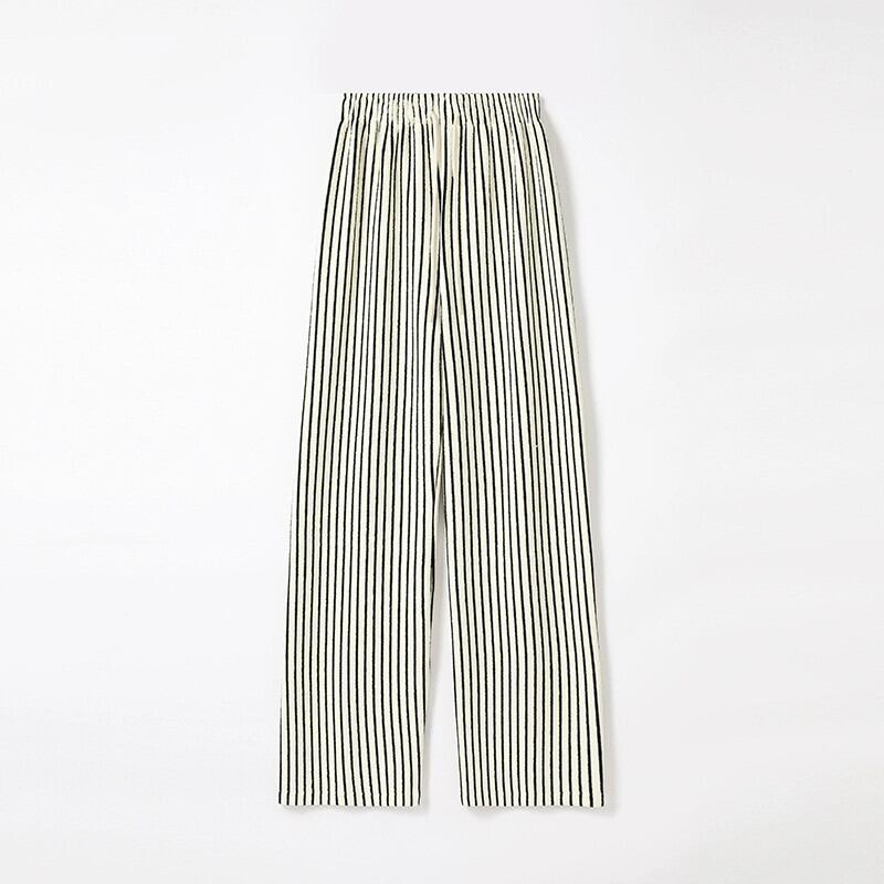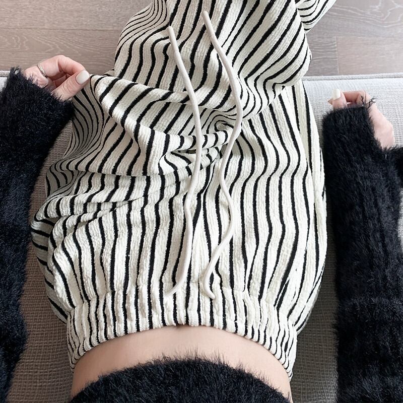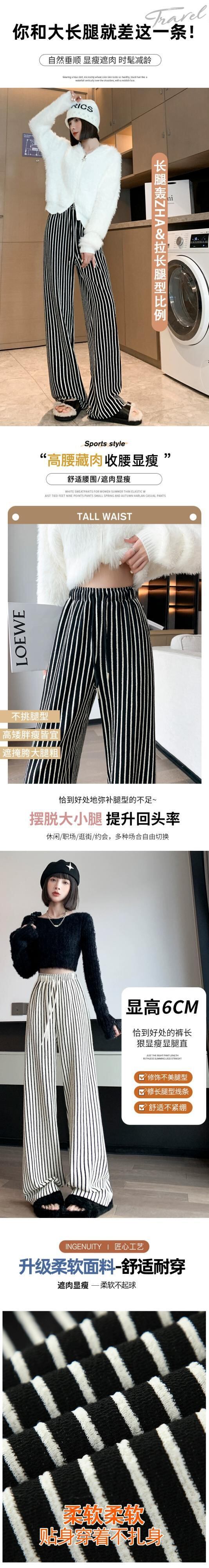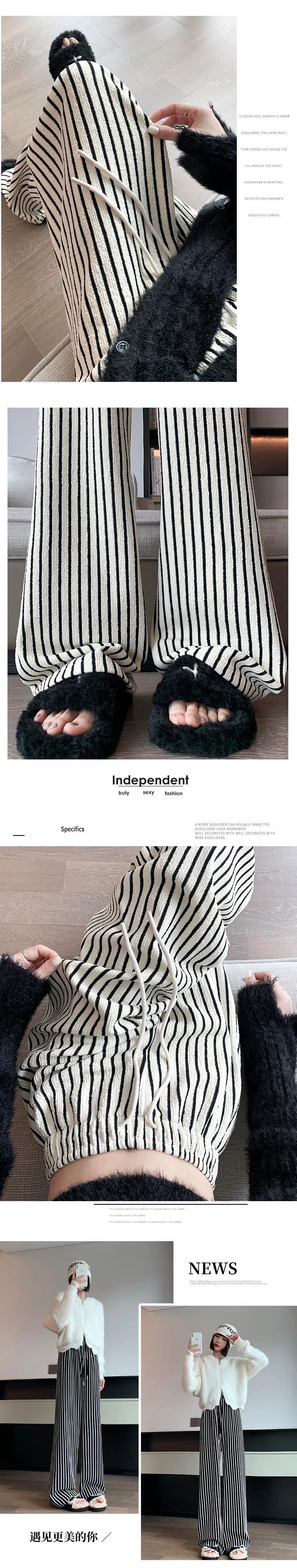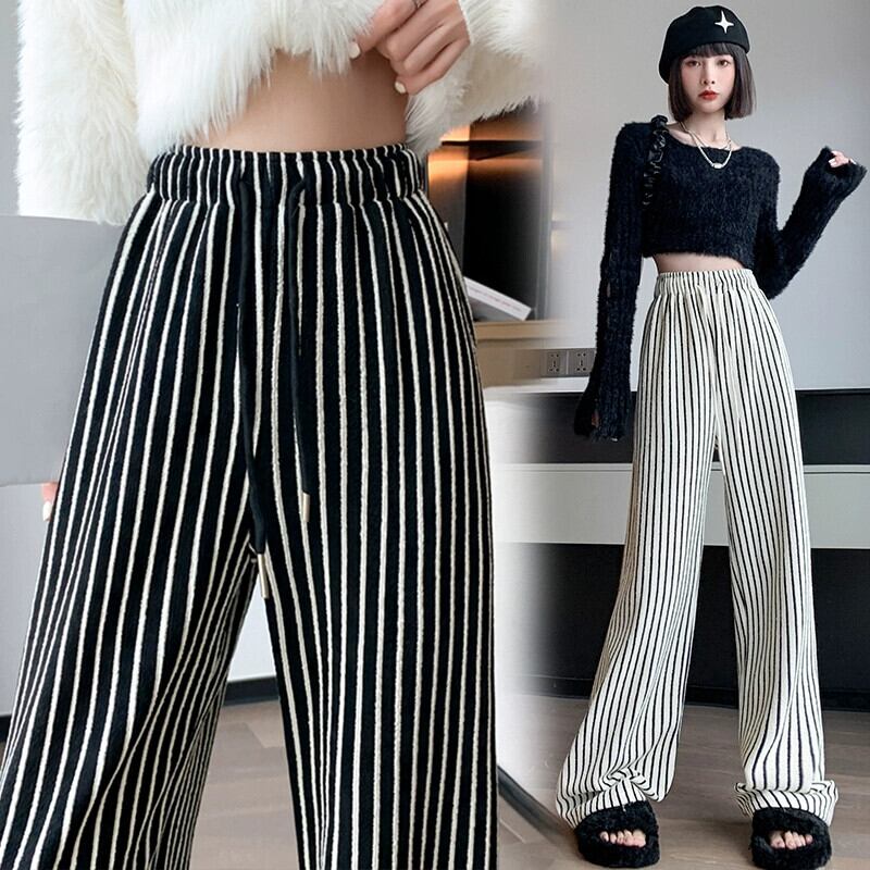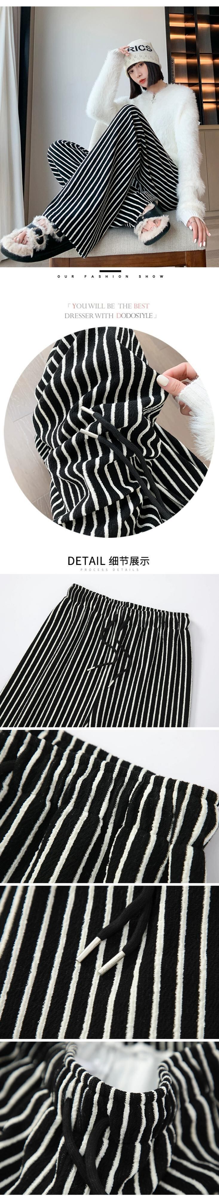 秋冬のプリーツテクスチャーストライプワイドレッグパンツレディース、怠惰なスタイルのハイウエストドレープパンツ、ルーズストレートレッグカジュアルパンツレディース レッド ウィンター 冬物 7460070996742052 | framboise21
