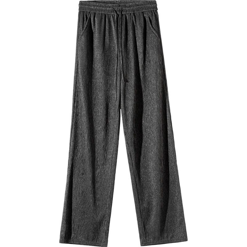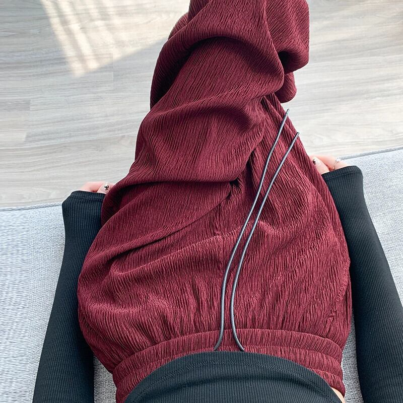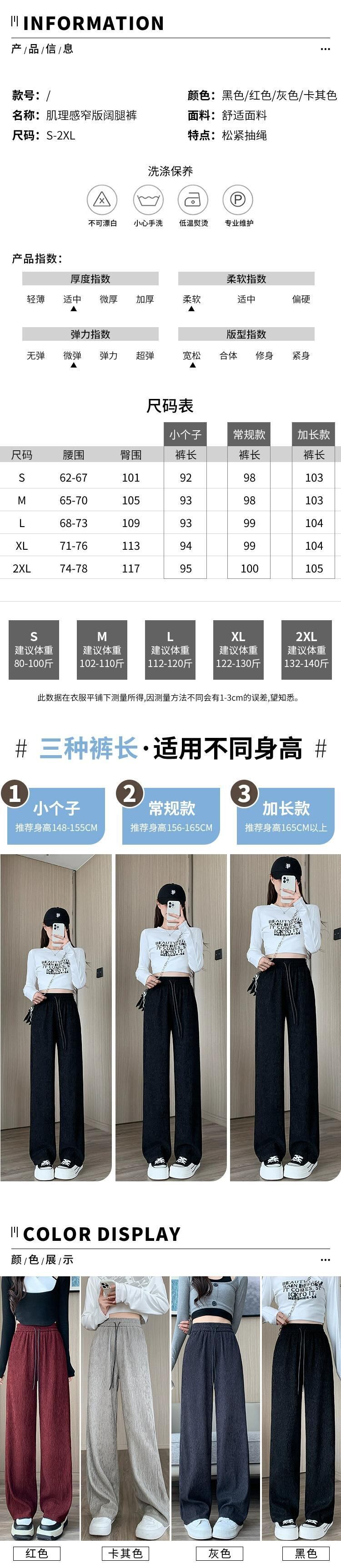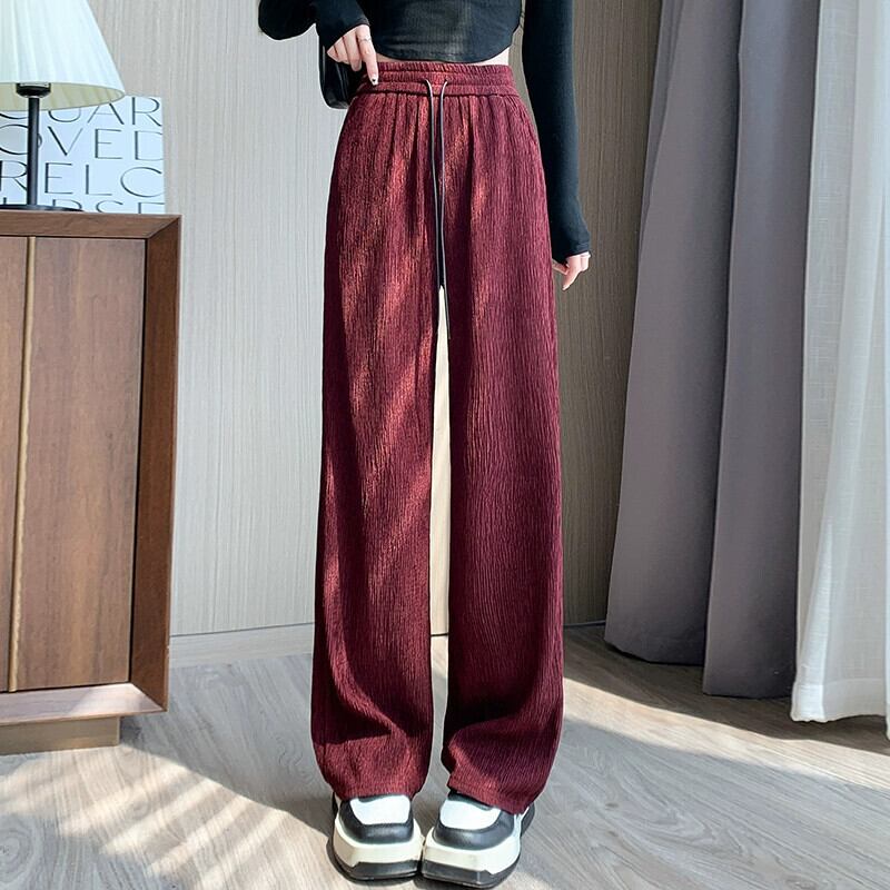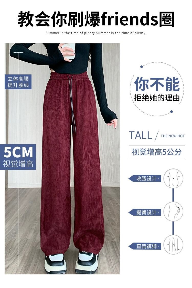 -ウエストナローワイドレッグパンツレディース秋冬2023新しいハイウエストドレープパンツテクスチャードストレートカジュアルフロアモップパンツ レッド オータム 秋物 ウィンター 冬物 7460030645346310 | framboise21
