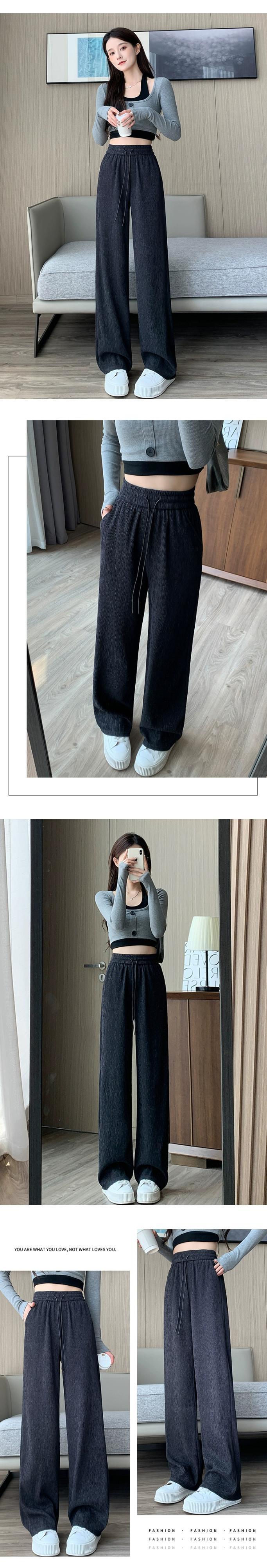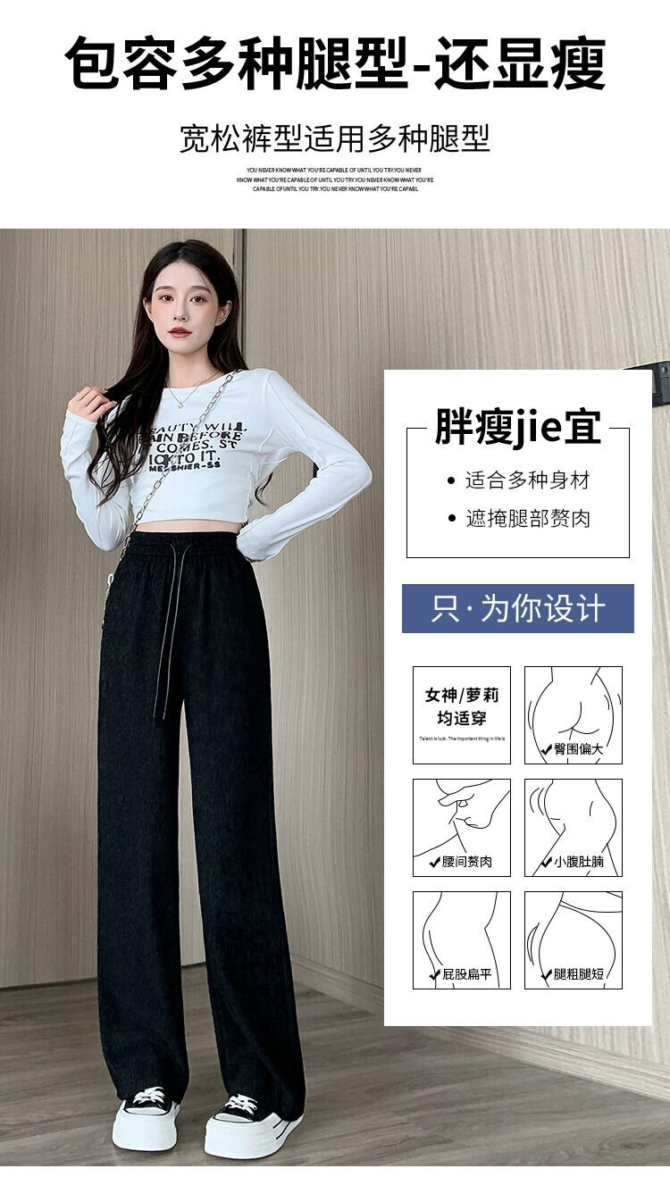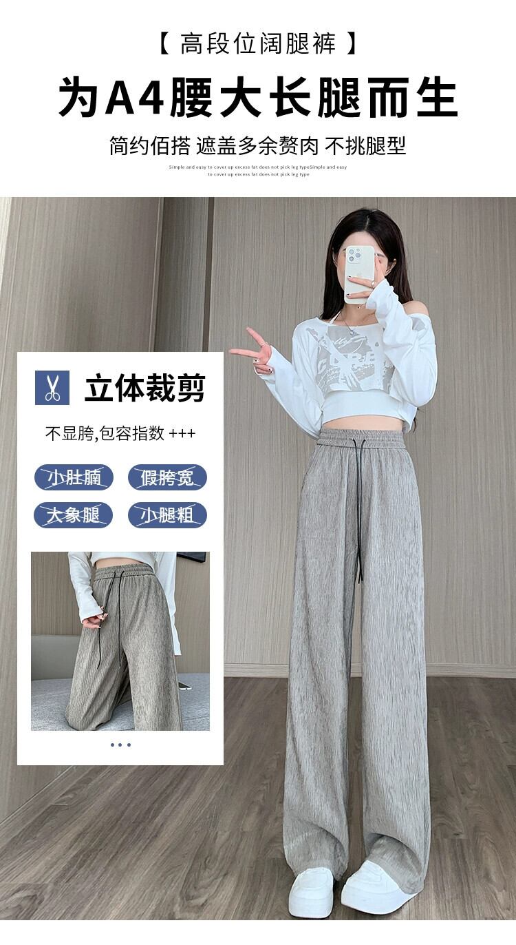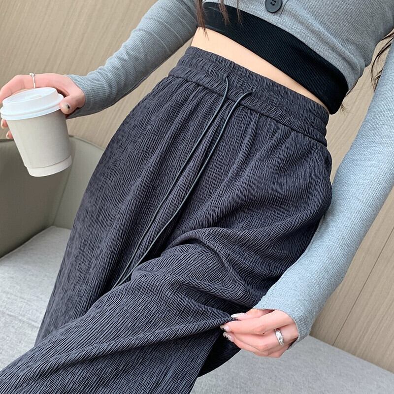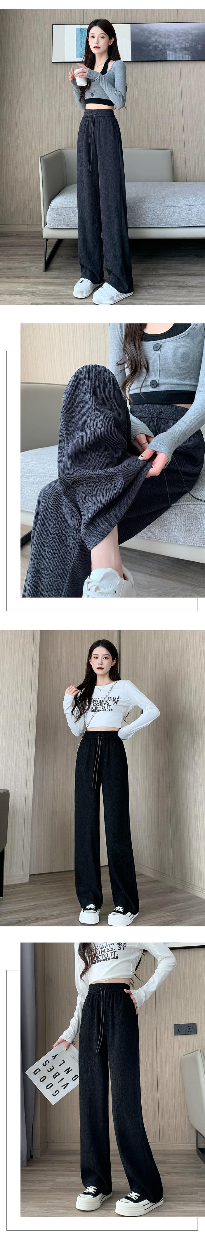 -ウエストナローワイドレッグパンツレディース秋冬2023新しいハイウエストドレープパンツテクスチャードストレートカジュアルフロアモップパンツ レッド オータム 秋物 ウィンター 冬物 7460030645346310 | framboise21