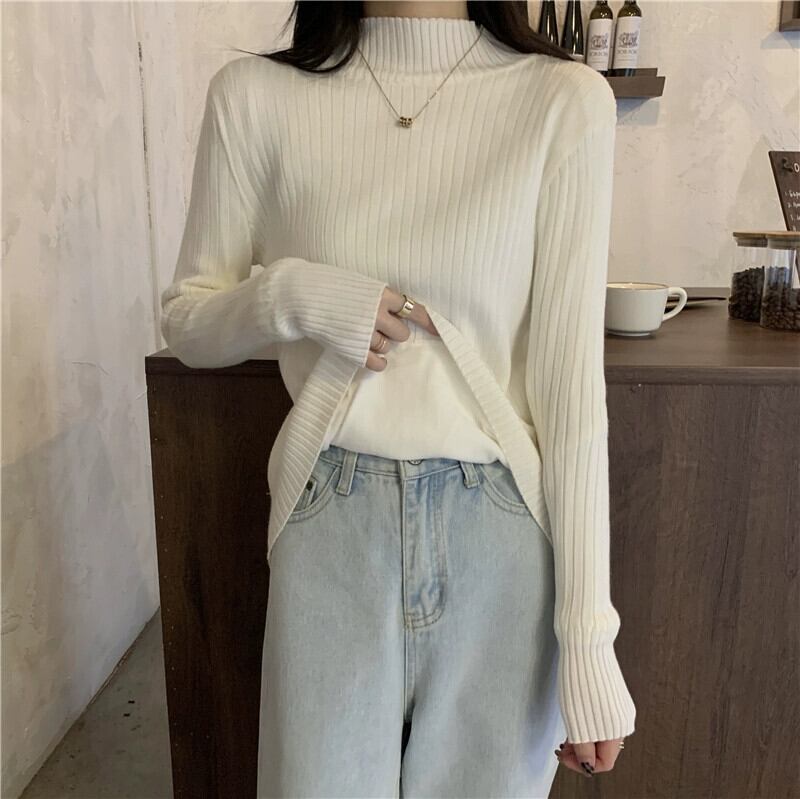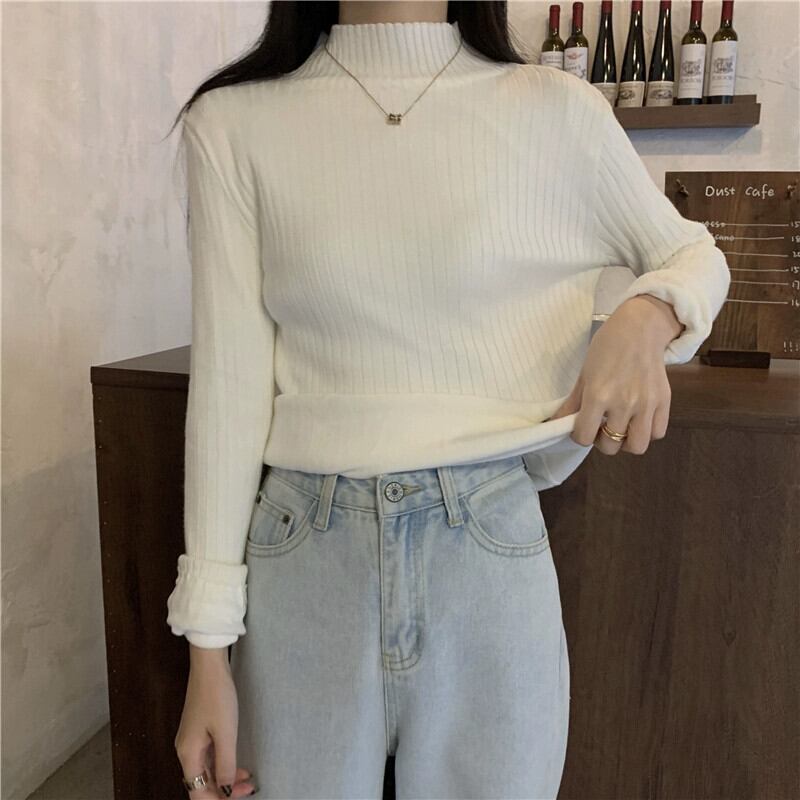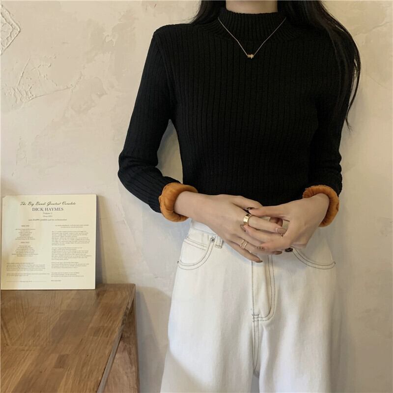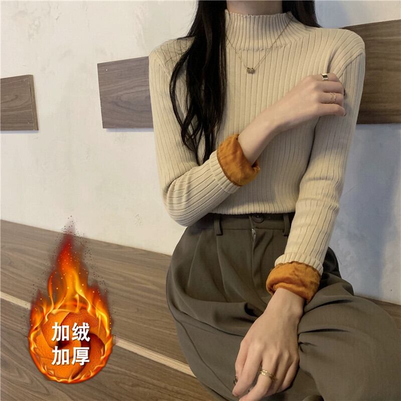 秋冬のハーフタートルネックボトムシャツ女性、ファッショナブルでスリムフィット、ベルベットの厚みのある暖かいニットセーター付き オータム 秋物 ウィンター 冬物 7460085677029825 | framboise21