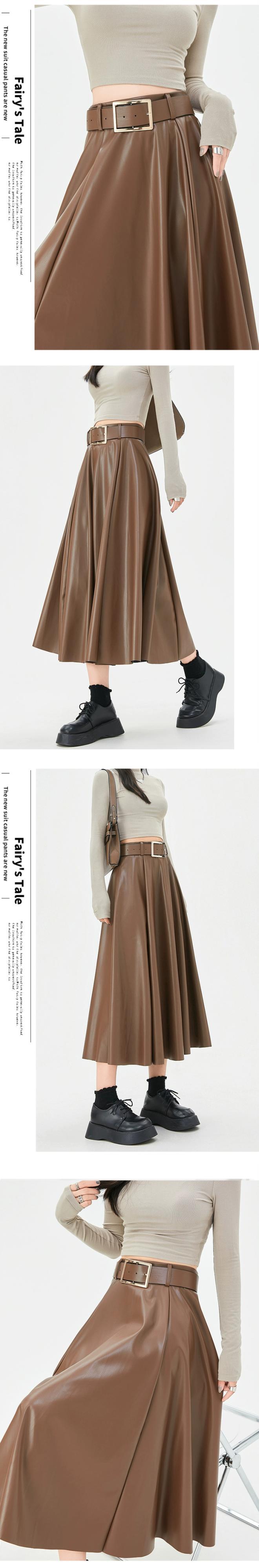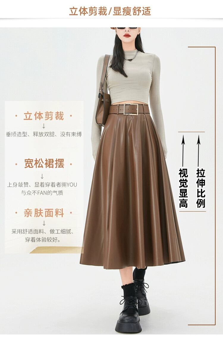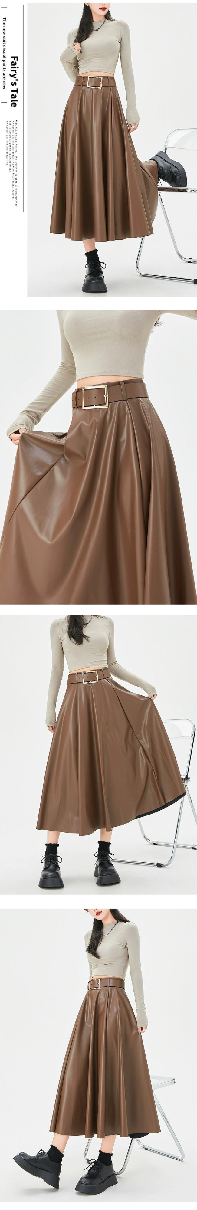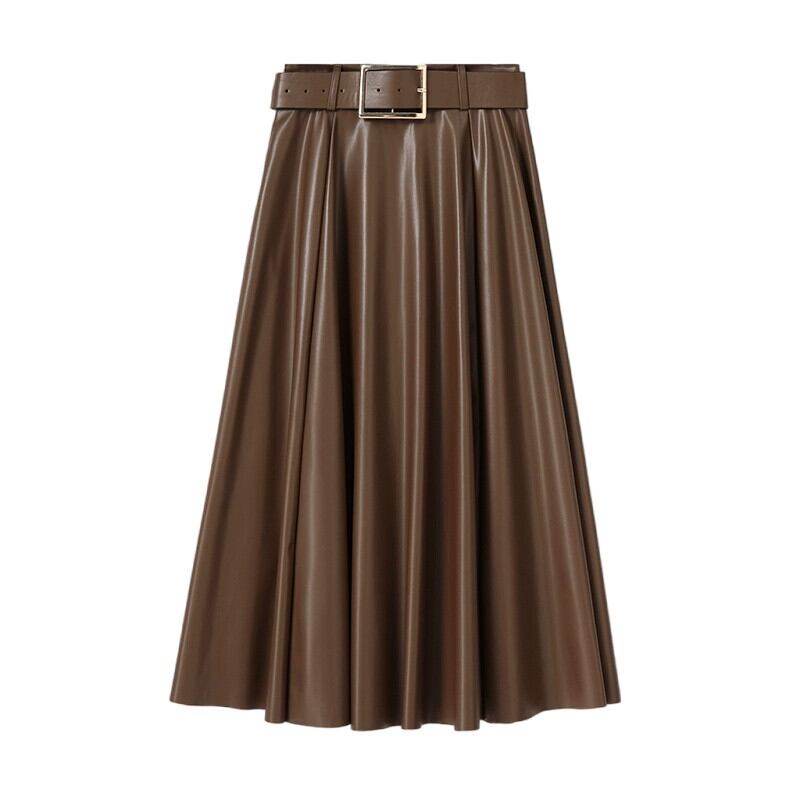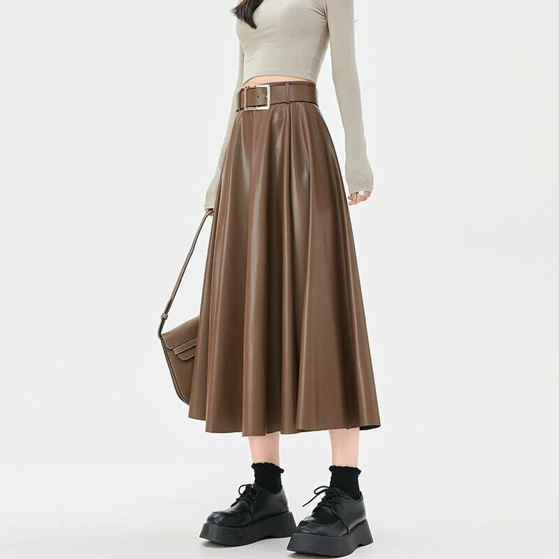 ブラウン pu レザースカートの女性の秋冬 2023 新しいレザースカート A ラインスカートハイエンドスリムで多用途なハイウエストロングスカート オータム 秋物 ウィンター 冬物 Aライン 7460035919230630 | framboise21