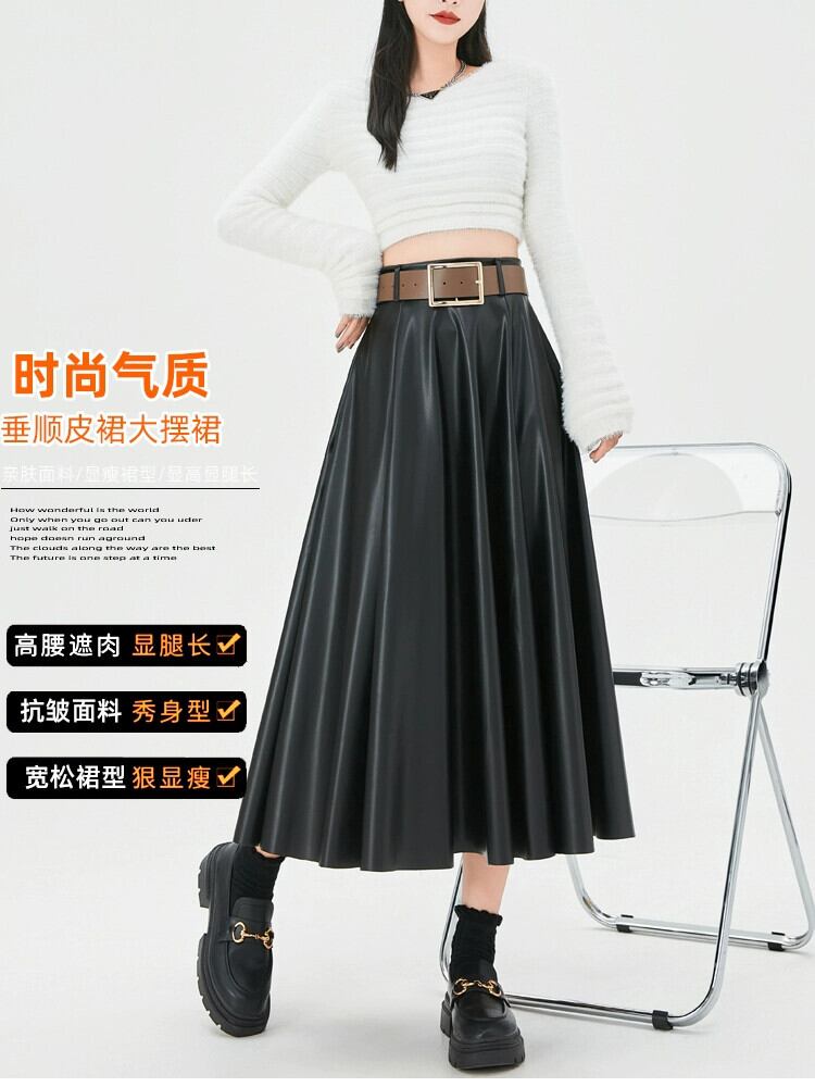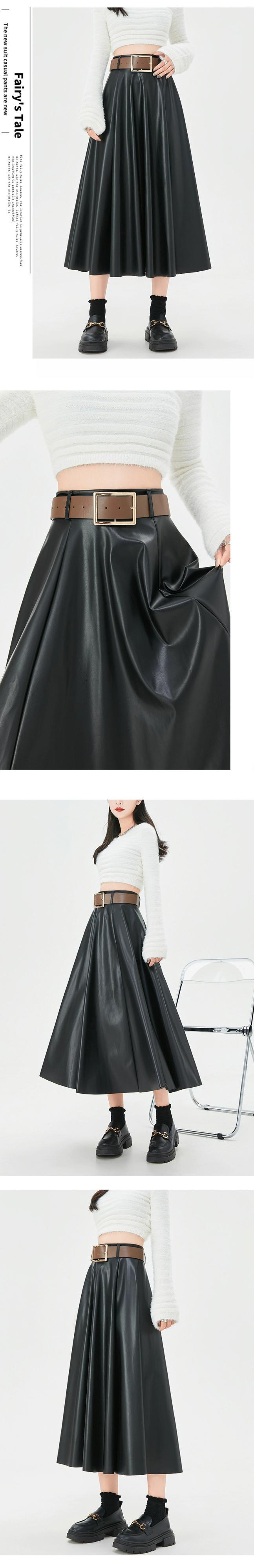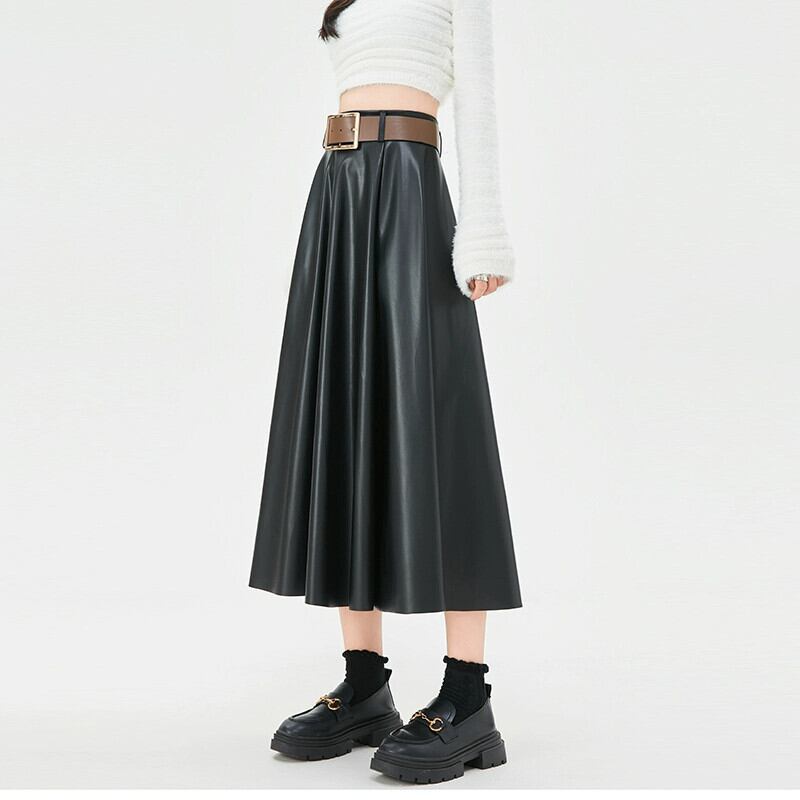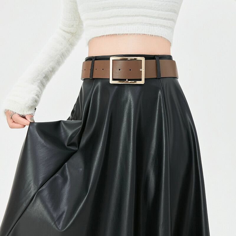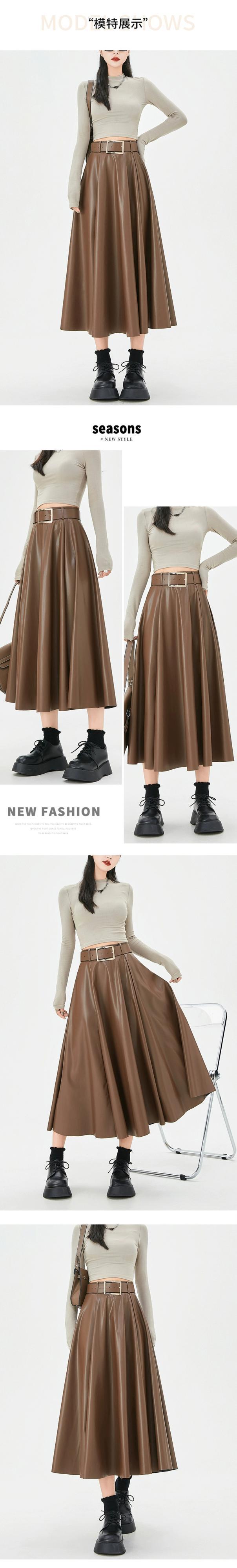 ブラウン pu レザースカートの女性の秋冬 2023 新しいレザースカート A ラインスカートハイエンドスリムで多用途なハイウエストロングスカート オータム 秋物 ウィンター 冬物 Aライン 7460035919230630 | framboise21