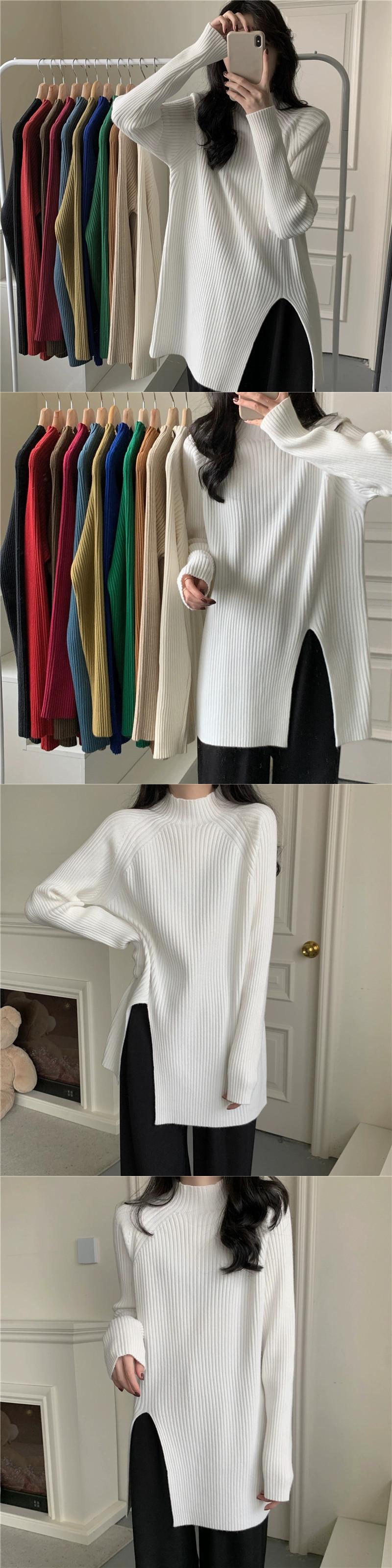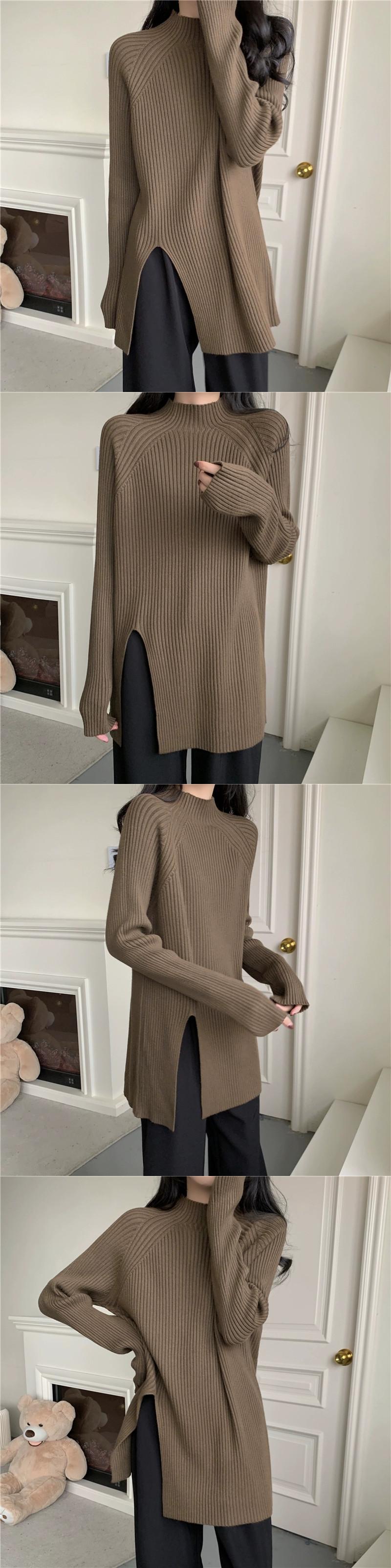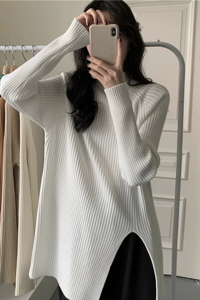 秋冬のハーフタートルネックボトムシャツレディース。ゆったりとしたスリムフィット。内側に長袖ニットセーターが入った変則スリットセーター。 ロング オータム 秋物 ウィンター 冬物 7460054073382343 | framboise21