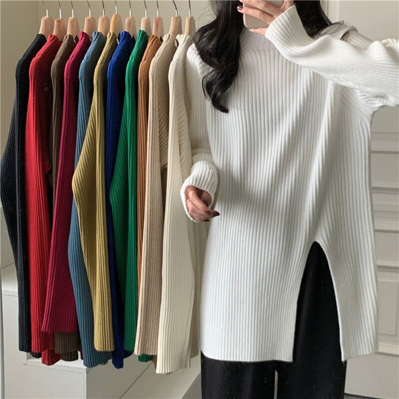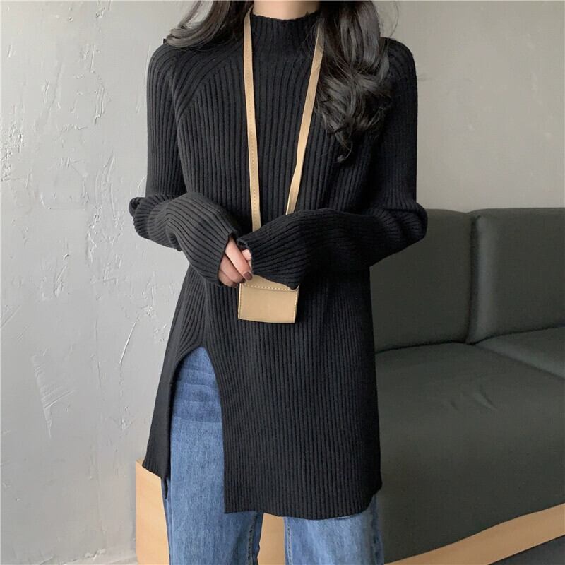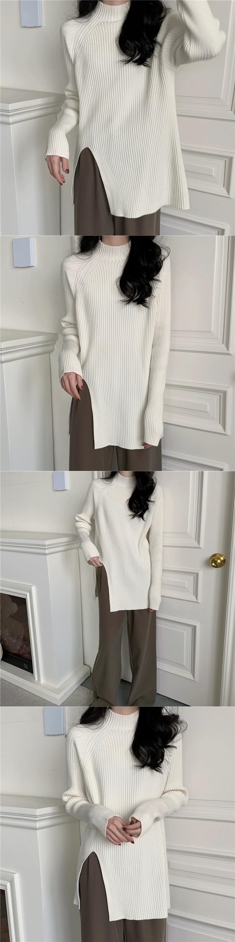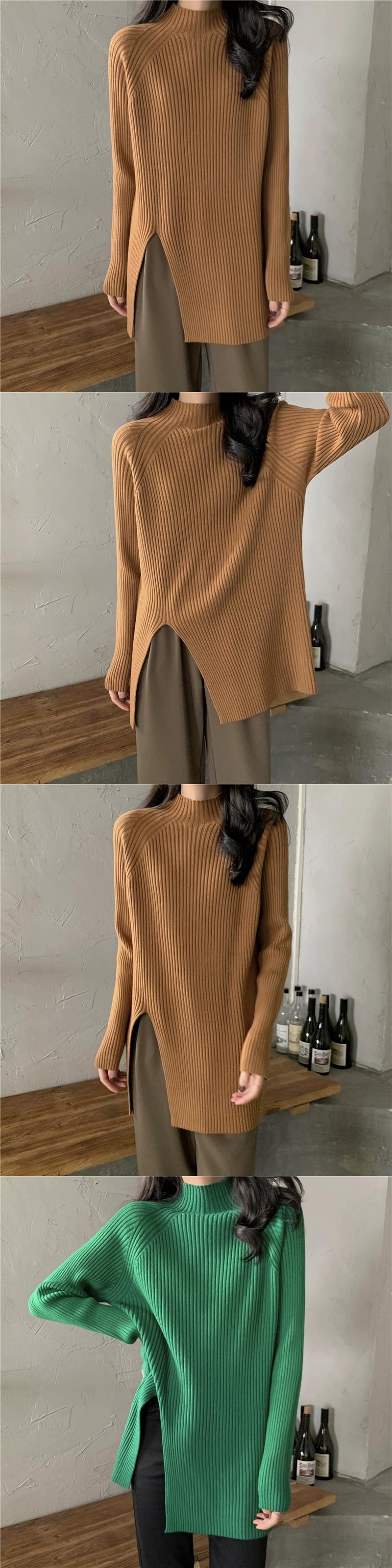 秋冬のハーフタートルネックボトムシャツレディース。ゆったりとしたスリムフィット。内側に長袖ニットセーターが入った変則スリットセーター。 ロング オータム 秋物 ウィンター 冬物 7460054073382343 | framboise21