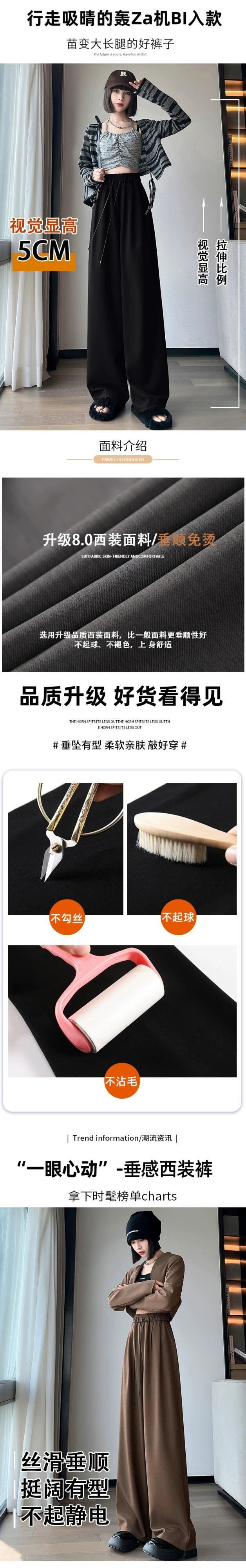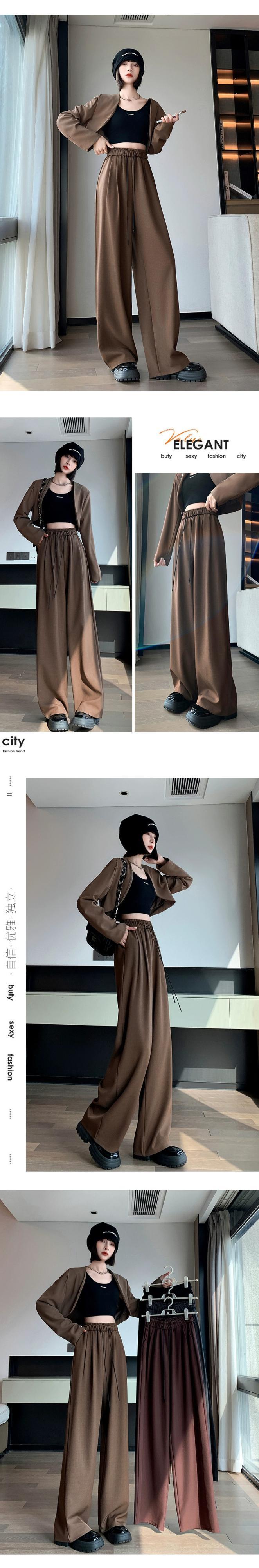 狭いストレートレッグスーツパンツの女性 2023 秋の新しいハイエンドドレープワイドレッグパンツルーズカジュアルブラウンパンツ オータム 秋物 7460082704375568 | framboise21