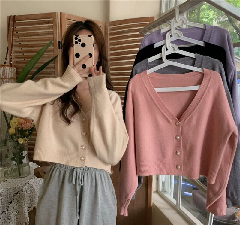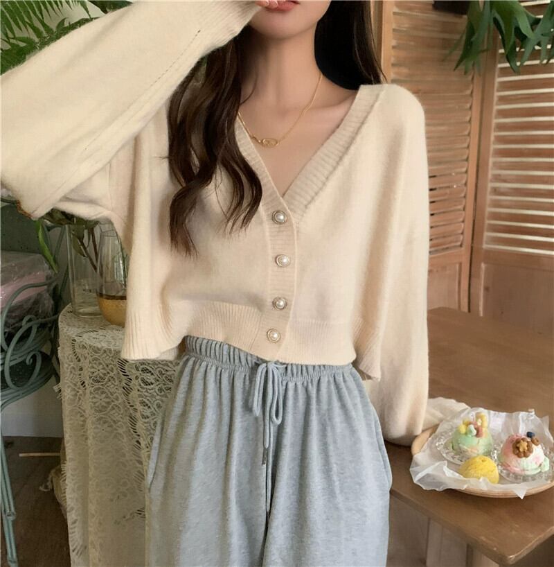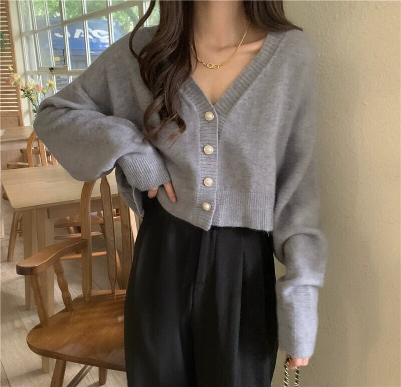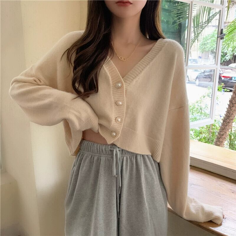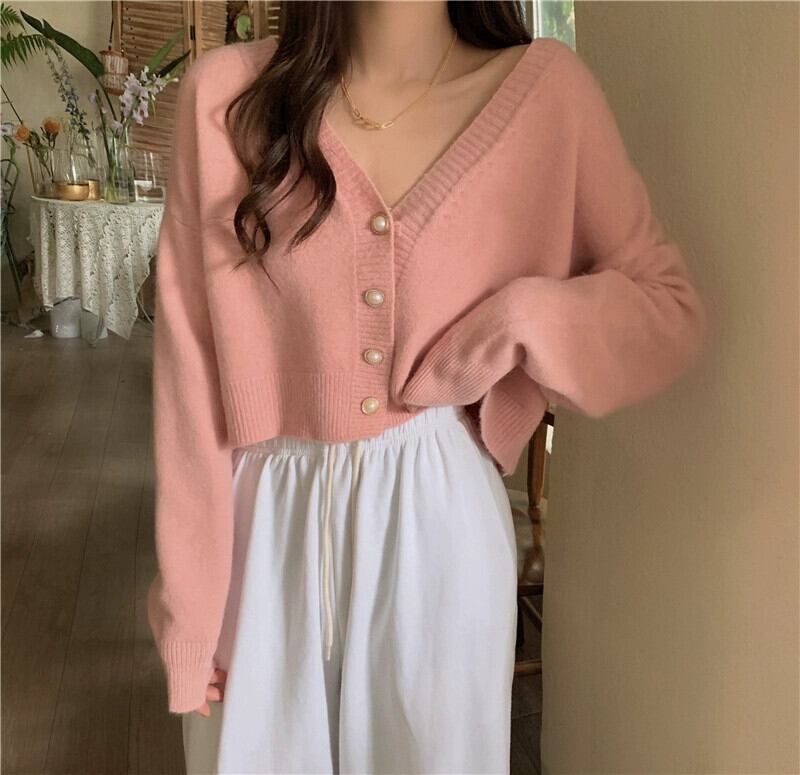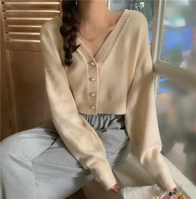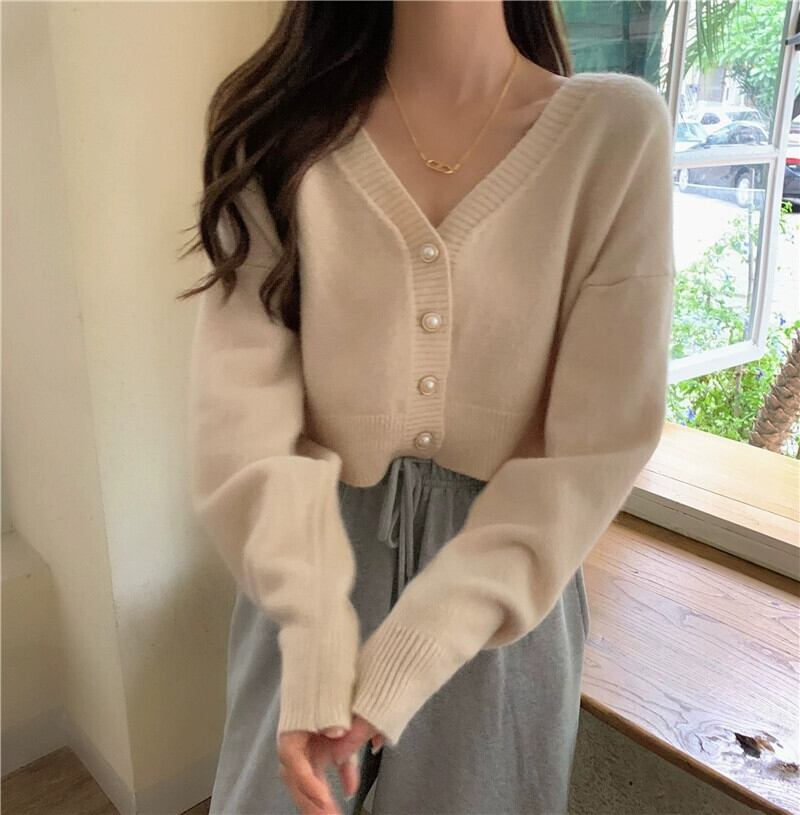 柔らかくてワックスのようなショートカーディガンセータージャケットの女性の秋と冬の新しいスタイルの小さな優しくてルーズなアウターウェアvネックセーター オータム 秋物 ウィンター 冬物 746001888827907 | framboise21