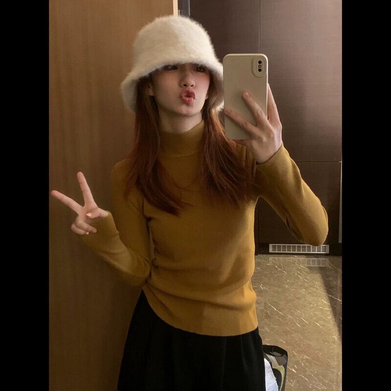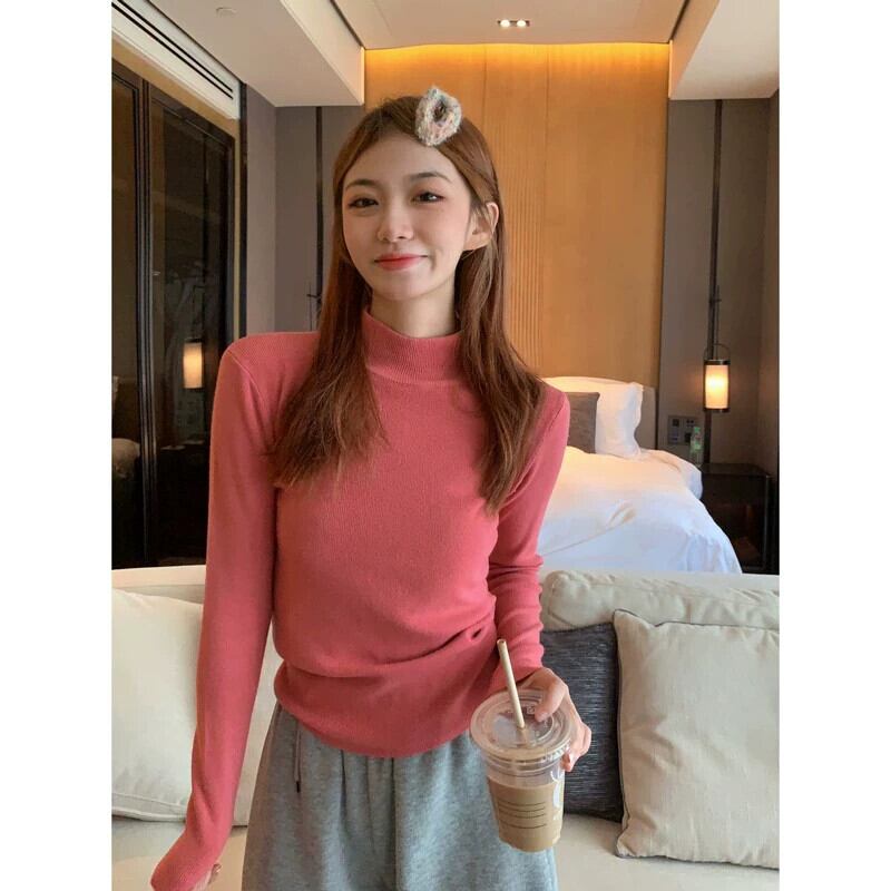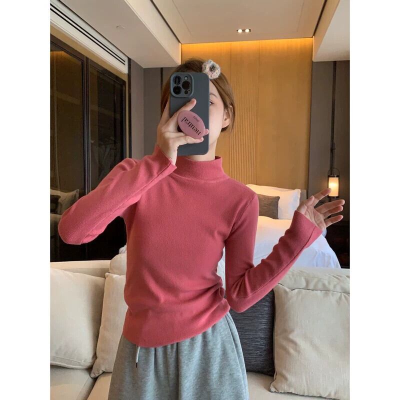 ハーフタートルネックボトムシャツレディース、秋冬スタイル、スタイリッシュでスリムフィット、ラズベリーピンクのミッドカラーセーターとその下に短い長袖セーター ショート ロング オータム 秋物 ウィンター 冬物 7460041855443 | framboise21
