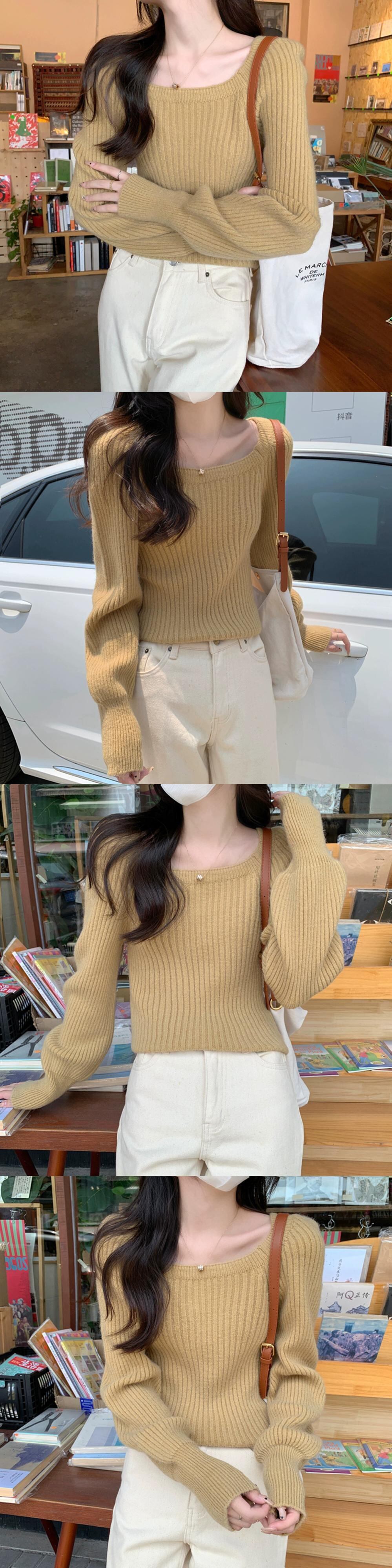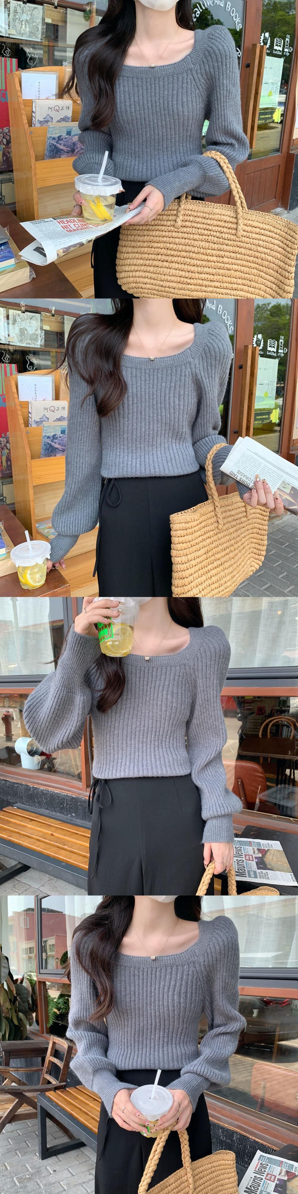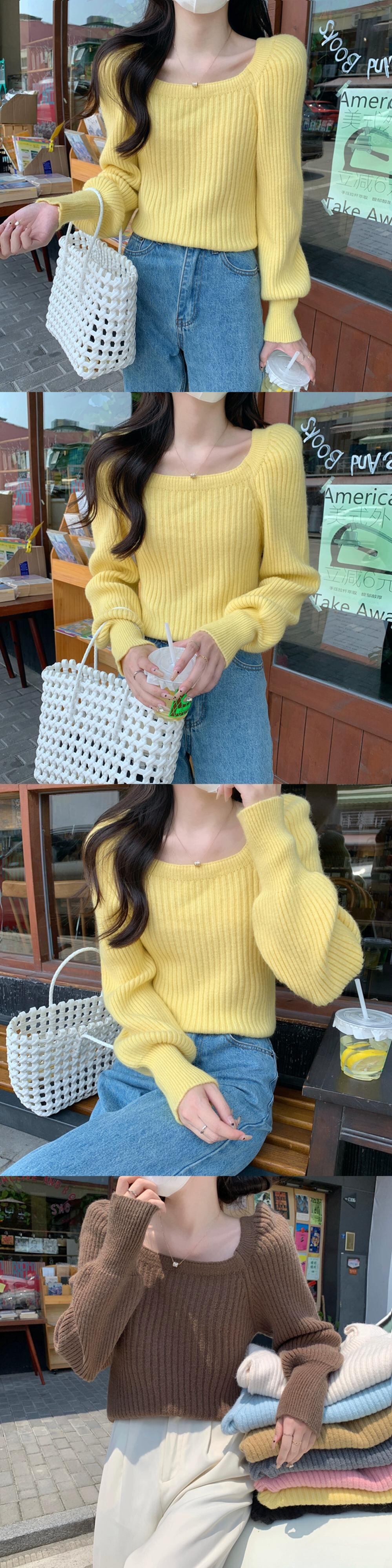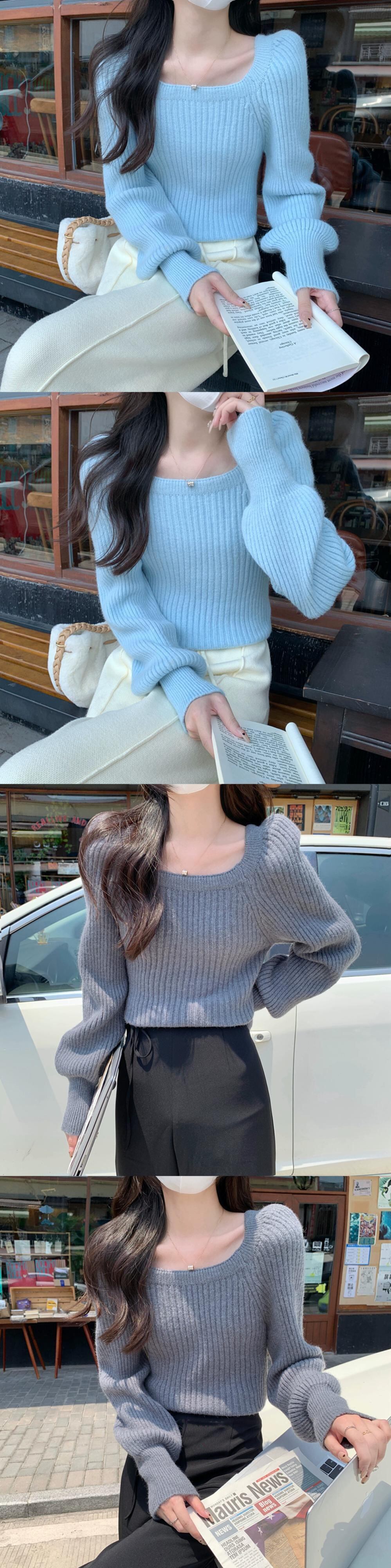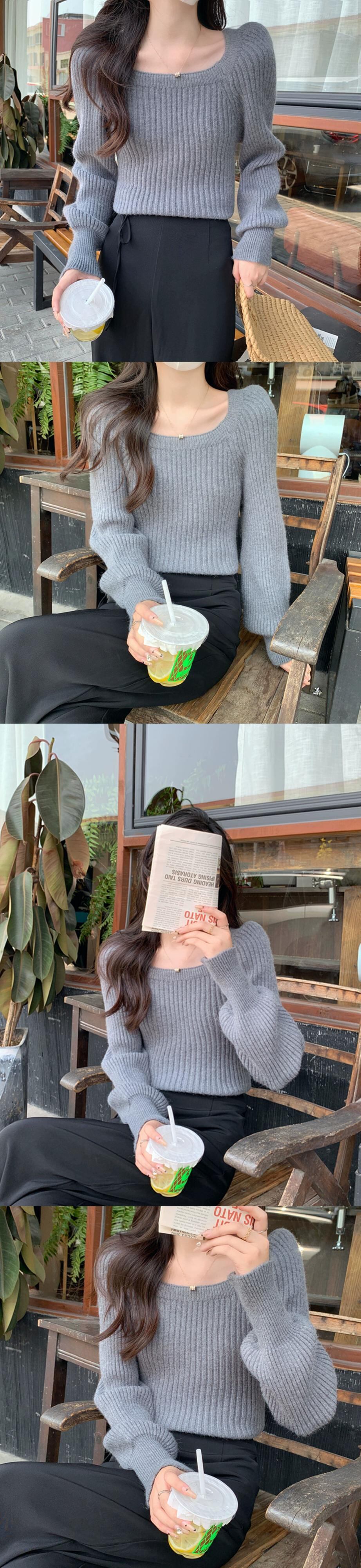 秋冬のソフトワックスランタンスリーブセーターレディース、ファッショナブルでスリム、外側と内側で着用可能、底付きスクエアネック長袖セーター ロング オータム 秋物 ウィンター 冬物 スクウェア 7460099704570046 | framboise21