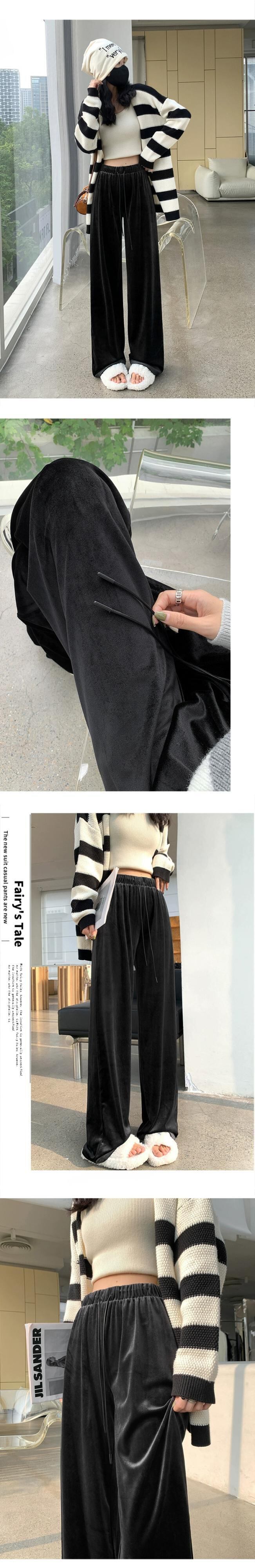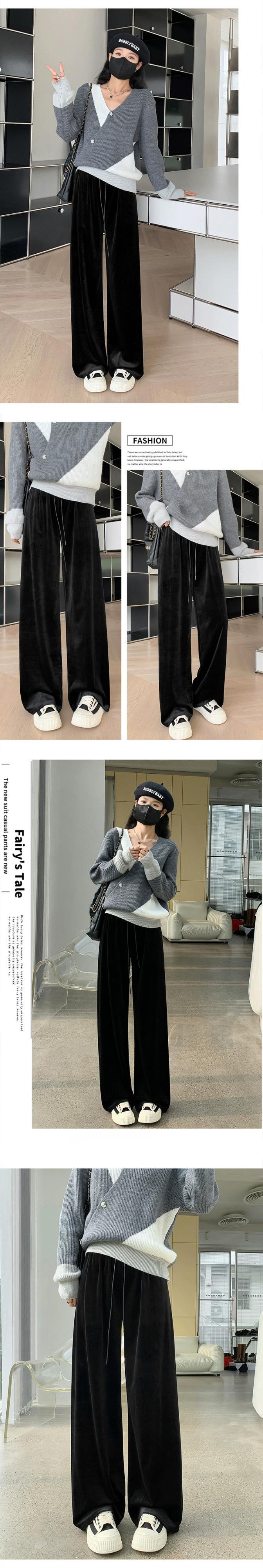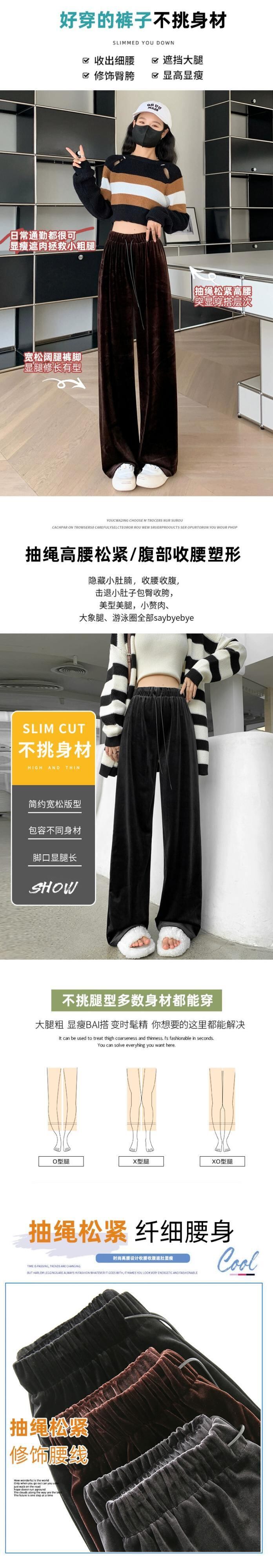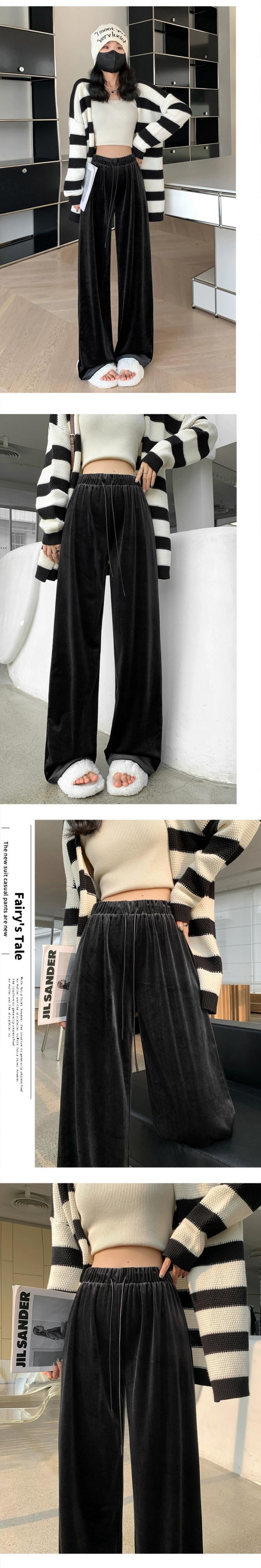 厚みのあるゴールドベルベットのワイドレッグパンツレディース、秋と冬のハイウエストドレープパンツ、レイジースタイル、ルーズ、スリミング、ストレートレッグカジュアルパンツ オータム 秋物 ウィンター 冬物 7460074346017736 | framboise21