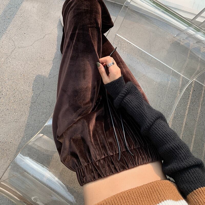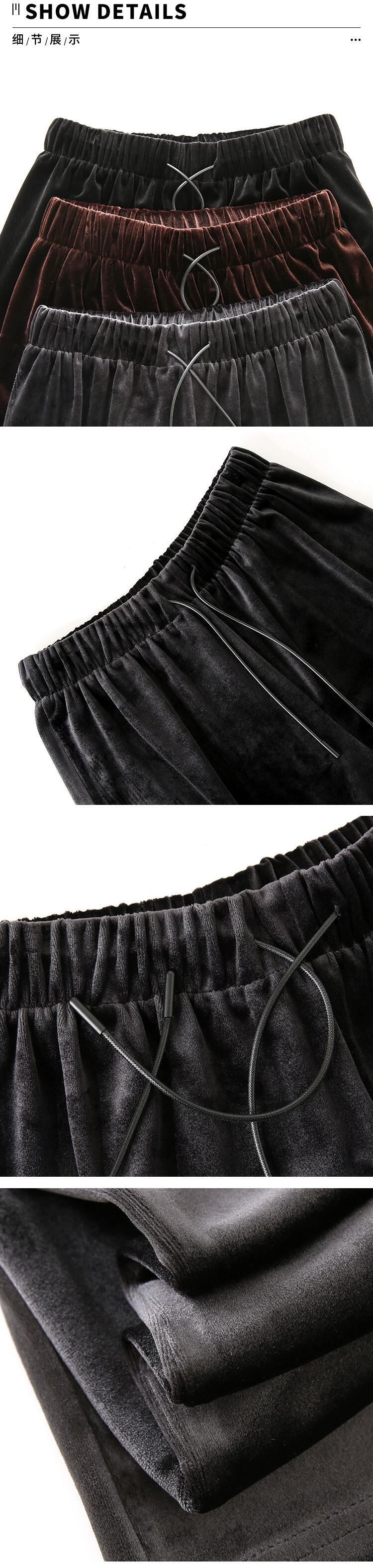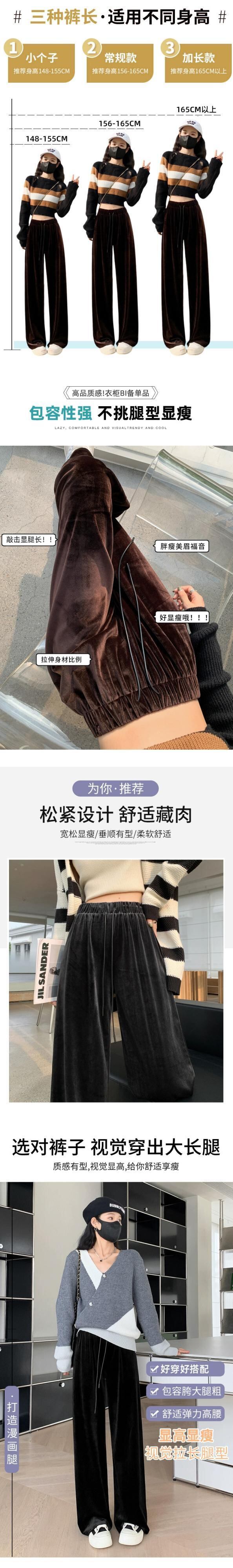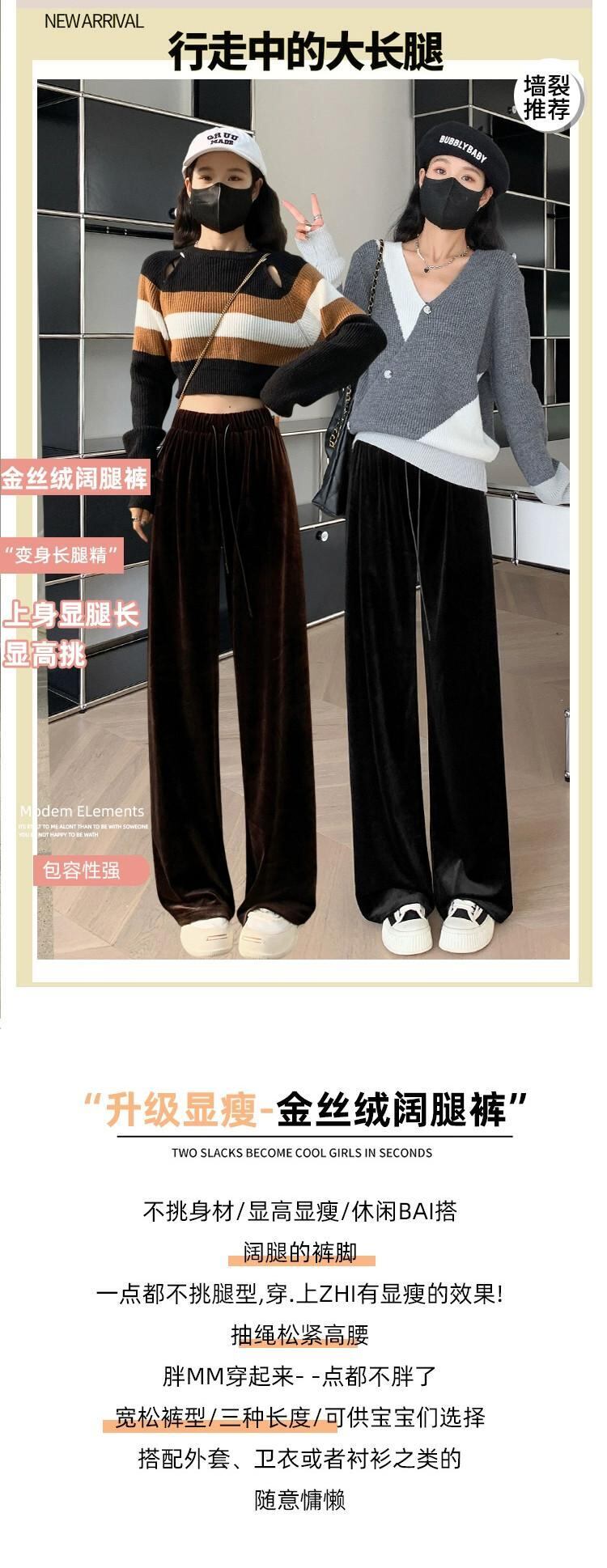 厚みのあるゴールドベルベットのワイドレッグパンツレディース、秋と冬のハイウエストドレープパンツ、レイジースタイル、ルーズ、スリミング、ストレートレッグカジュアルパンツ オータム 秋物 ウィンター 冬物 7460074346017736 | framboise21