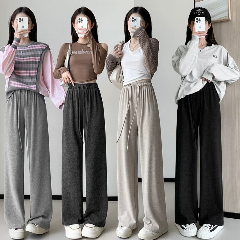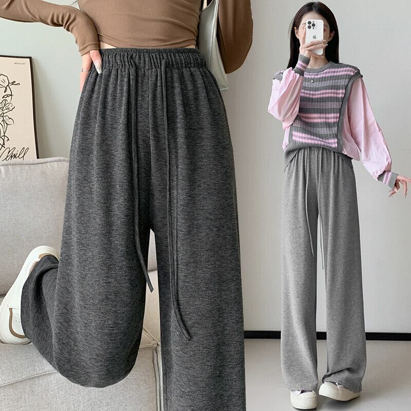ドレープのあるもち米パンツの女性の狭いバージョン、秋と冬の小柄な人、ドレープのあるワイドレッグパンツ、ルーズストレートカジュアルフロアレングスパンツ オータム 秋物 ウィンター 冬物 7460015842591910 | framboise21