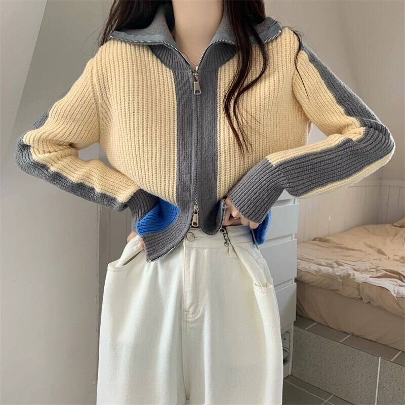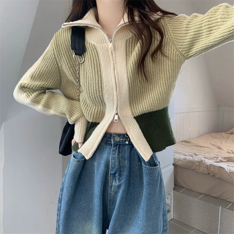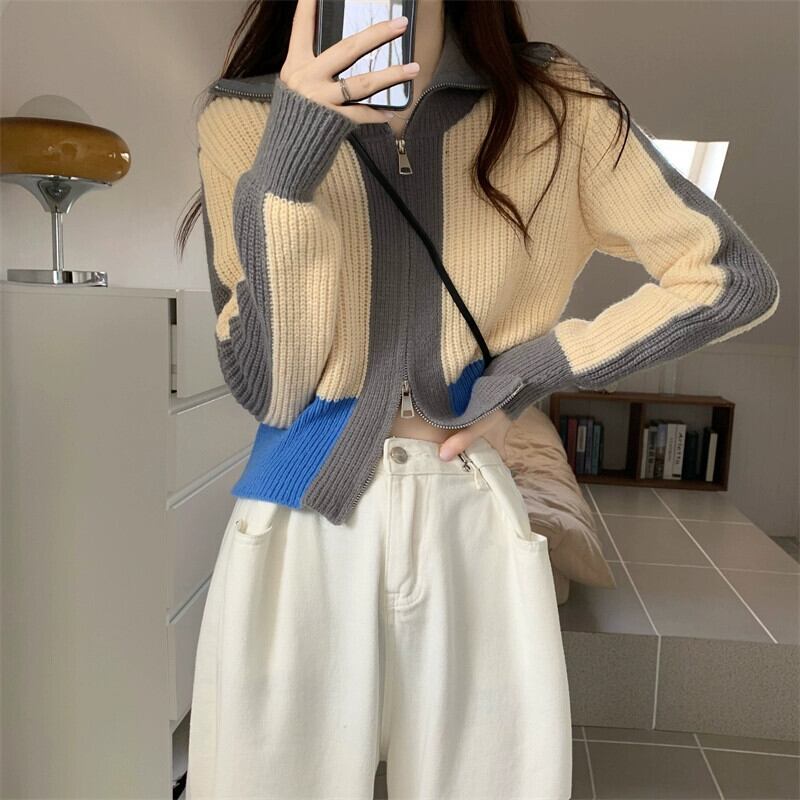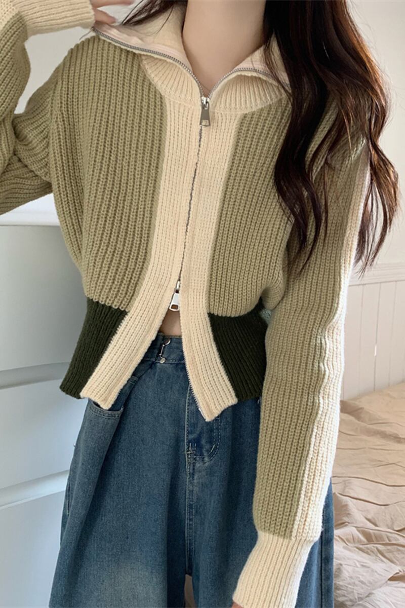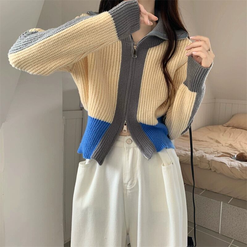 厚いジッパーラペルカーディガンセータージャケット女性秋と冬のレトロなデザインルーズアウターニットセーター オータム 秋物 ウィンター 冬物 7460083284726895 | framboise21
