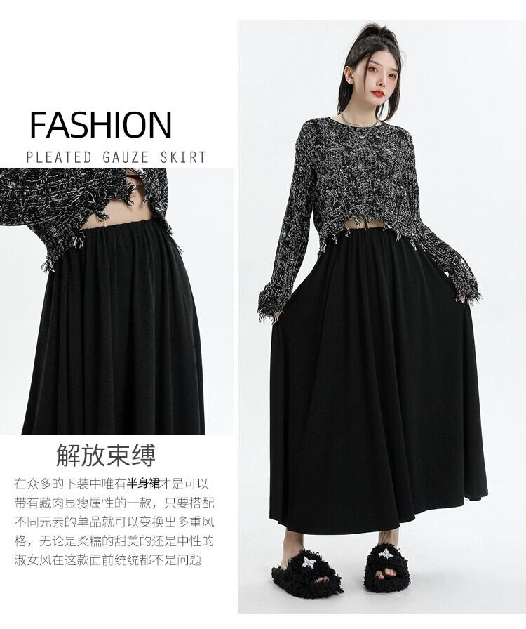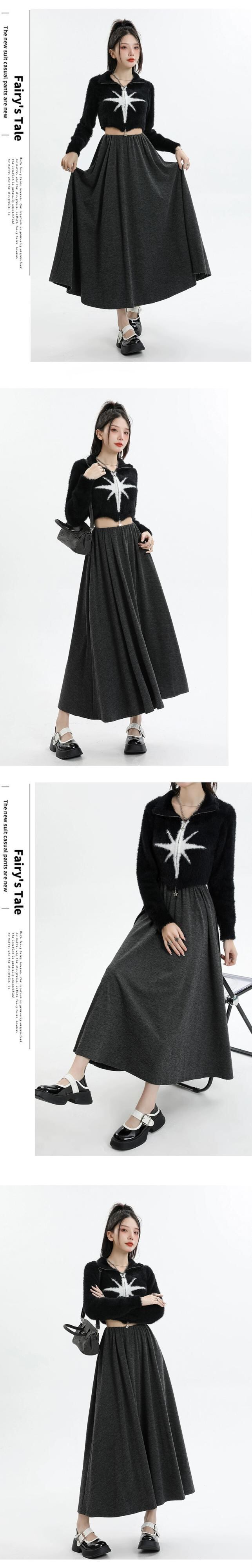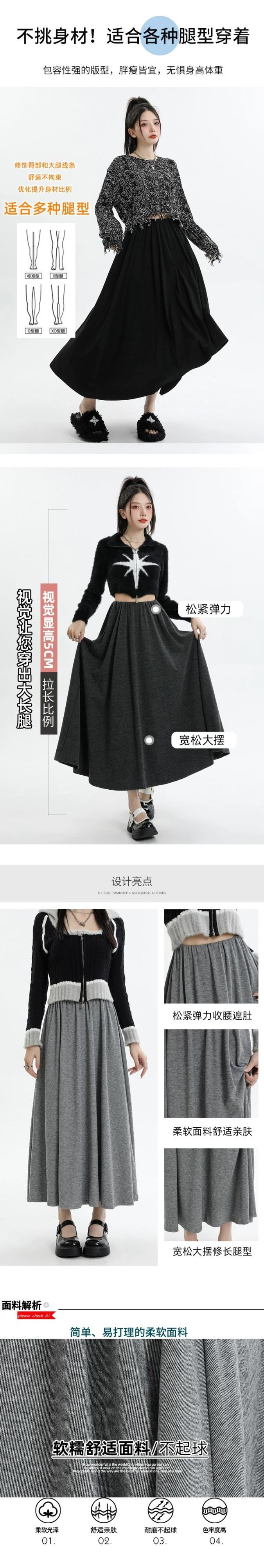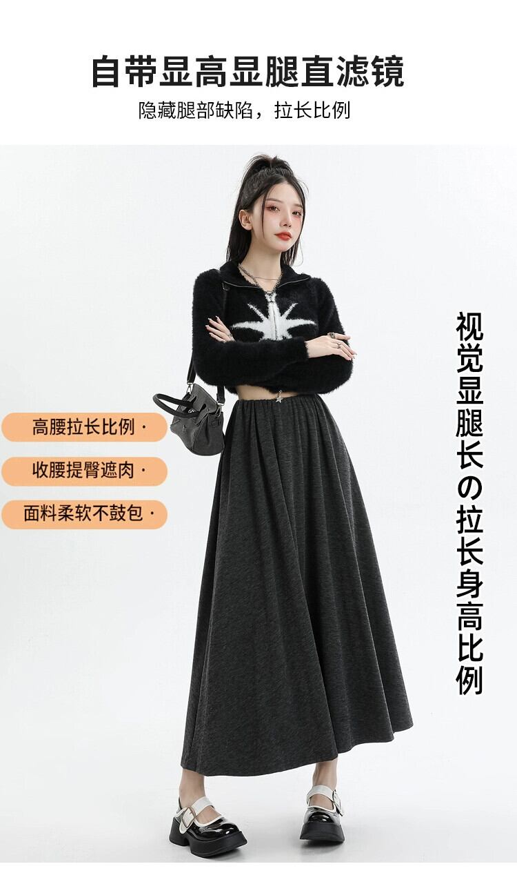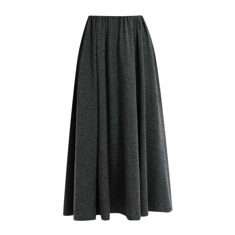 グレーのソフトワックスニットスカートの女性の秋冬 2023 新しいロングスカート、ハイウエスト、スリムで股間をカバー、ミッドレングスの A ラインスカート ハイウェスト オータム 秋物 ウィンター 冬物 Aライン 7460048768164683 | framboise21