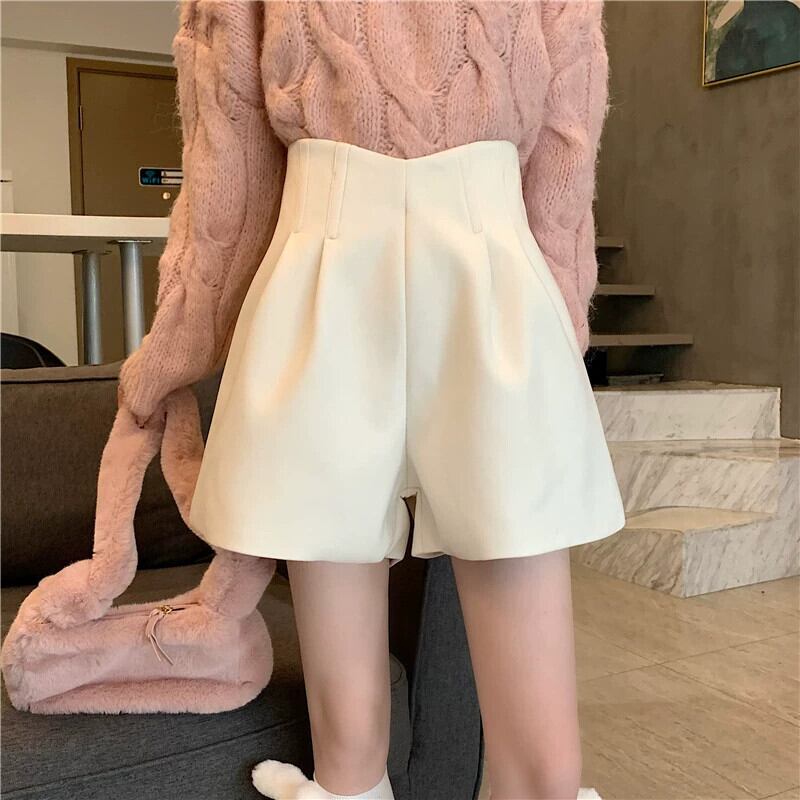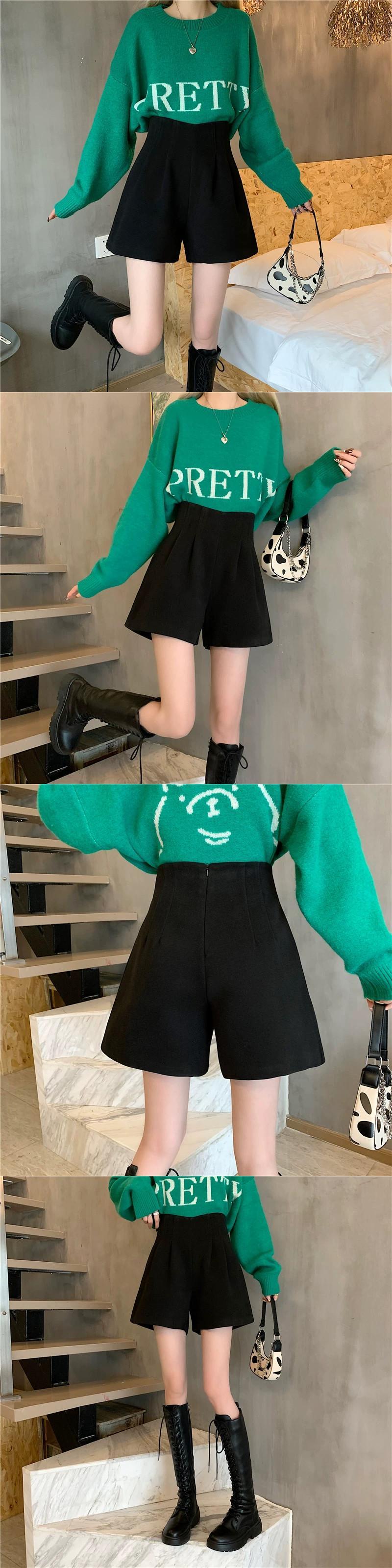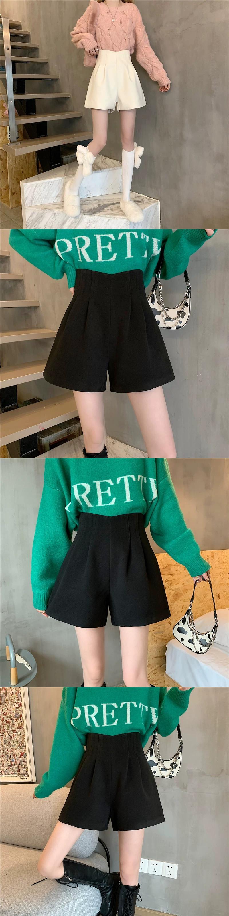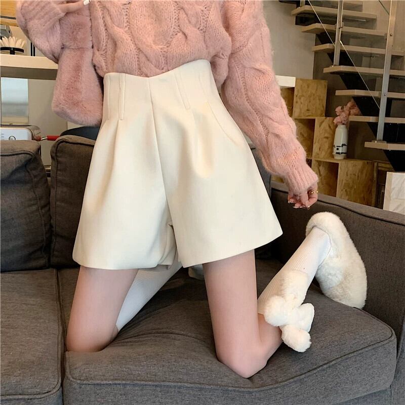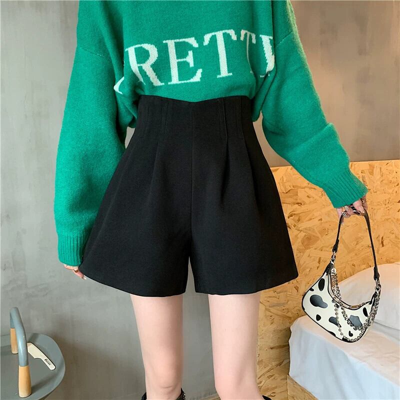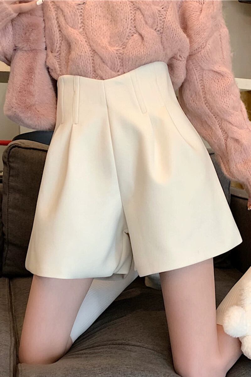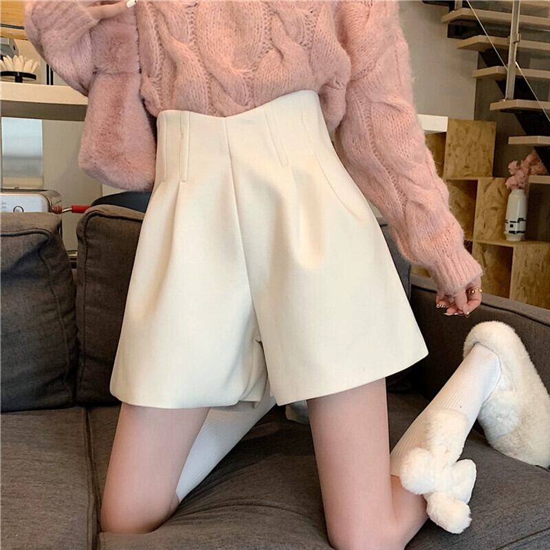 秋冬のAラインワイドレッグウールショートパンツ、不規則なハイウエストブーツパンツ、セーター付きカジュアルパンツ、小柄な人 オータム 秋物 ウィンター 冬物 ショーツ ブルマー 7460072729991019 | framboise21