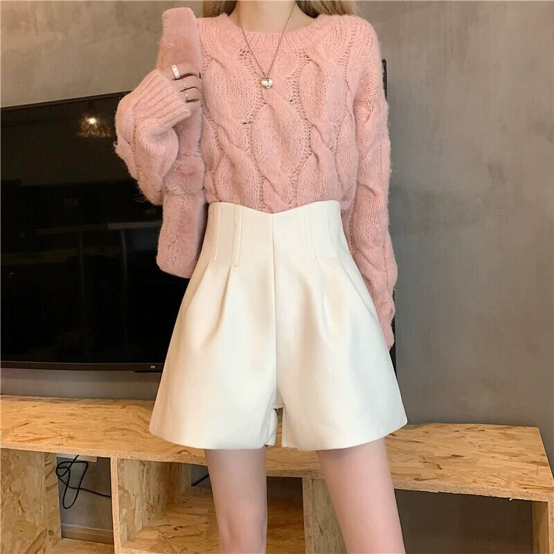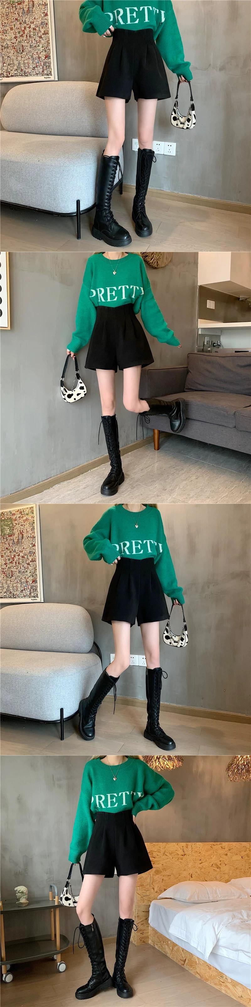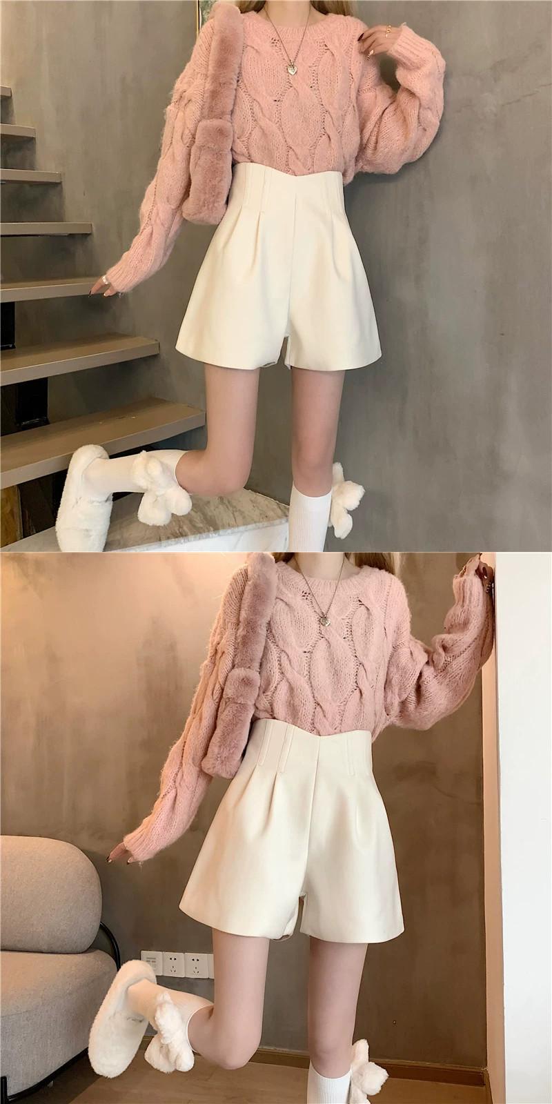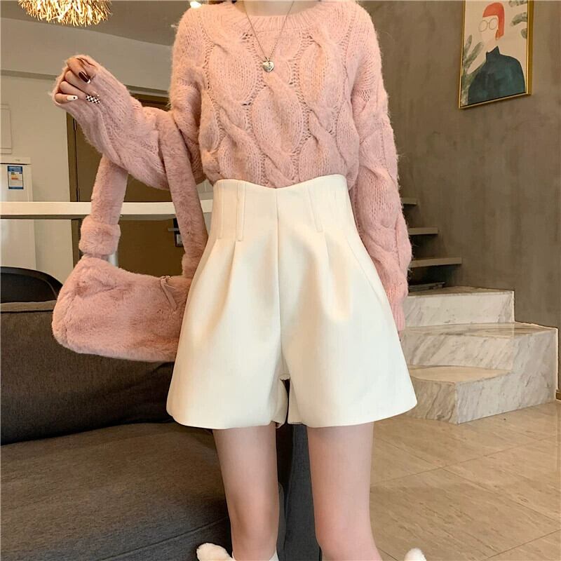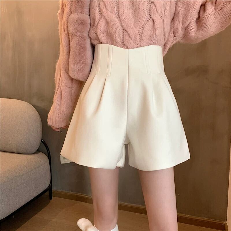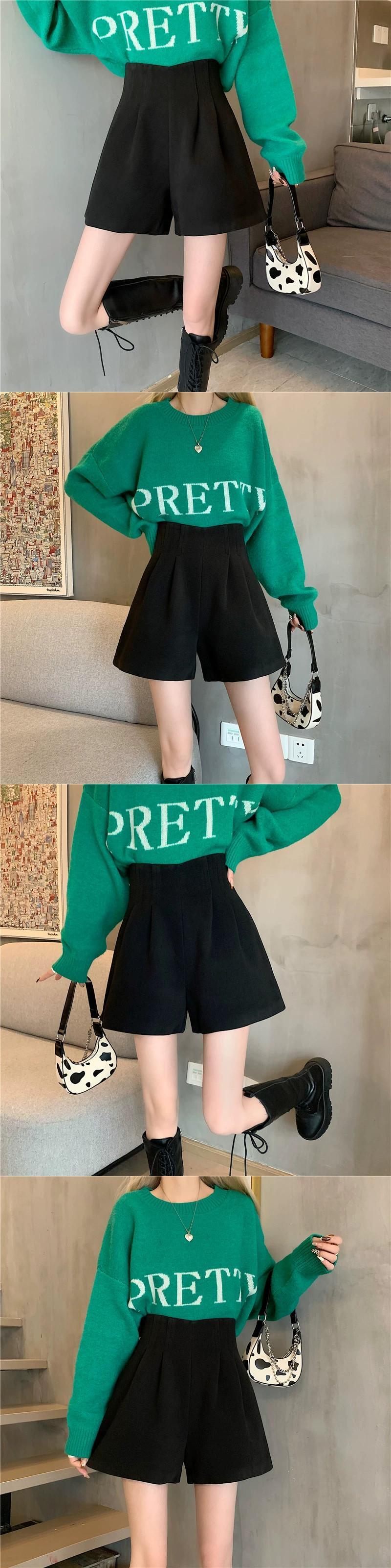 秋冬のAラインワイドレッグウールショートパンツ、不規則なハイウエストブーツパンツ、セーター付きカジュアルパンツ、小柄な人 オータム 秋物 ウィンター 冬物 ショーツ ブルマー 7460072729991019 | framboise21
