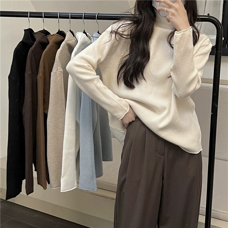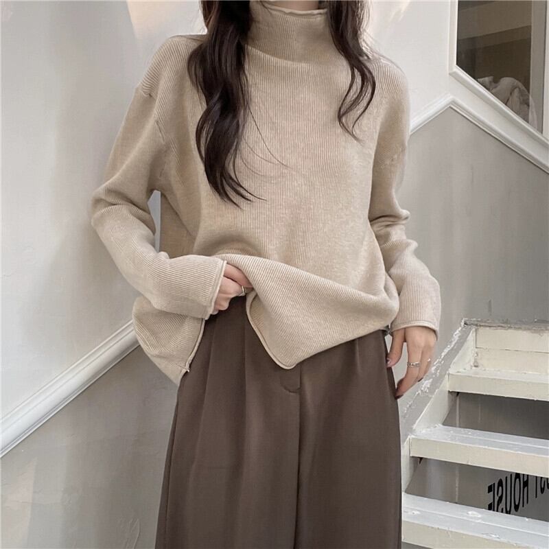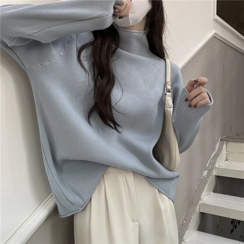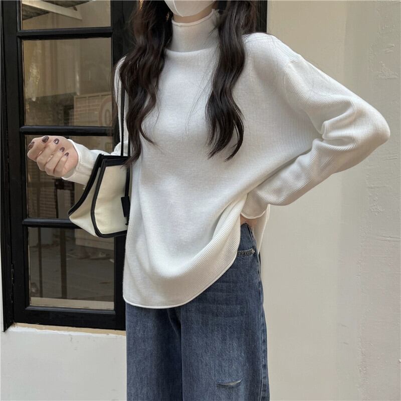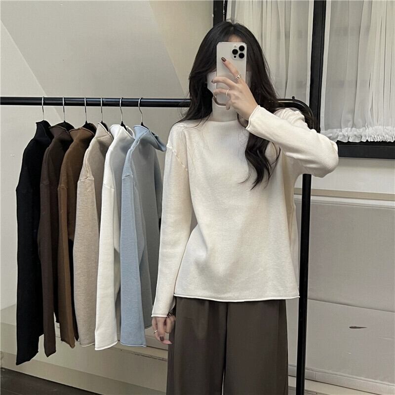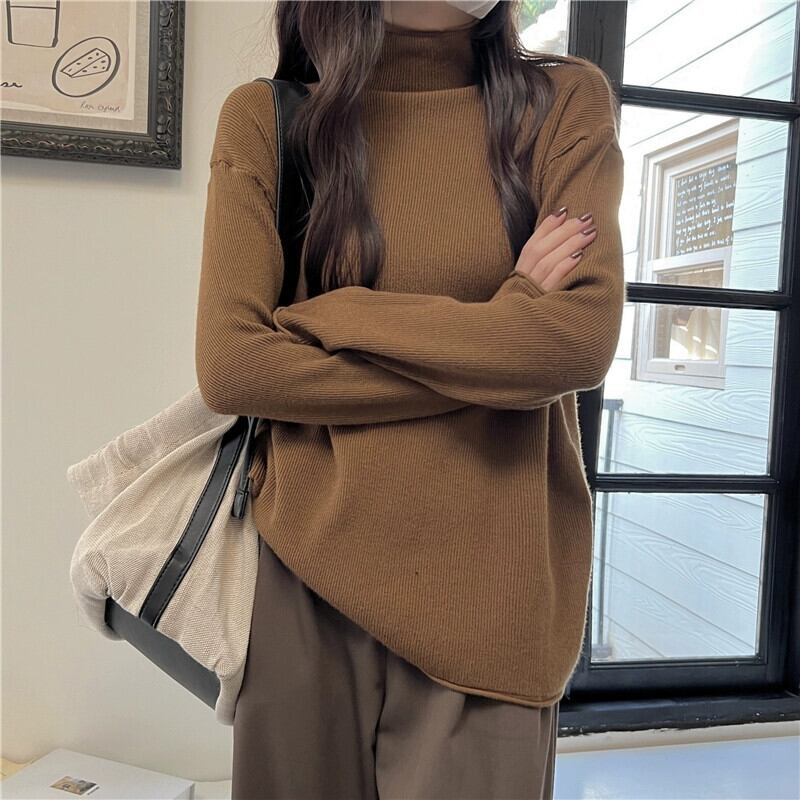 肥厚ハーフタートルネックボトミングセーター女性の秋と冬のフレンチスタイルルーズ痩身アウターウェア怠惰なスタイル長袖セーター内側 ロング オータム 秋物 ウィンター 冬物 7460022354589219 | framboise21