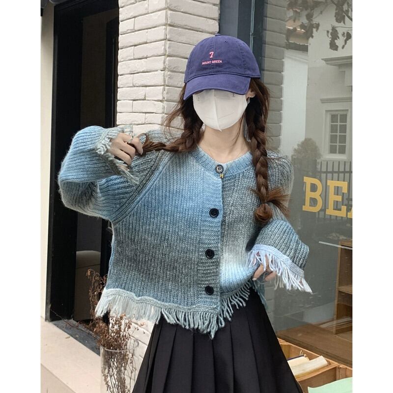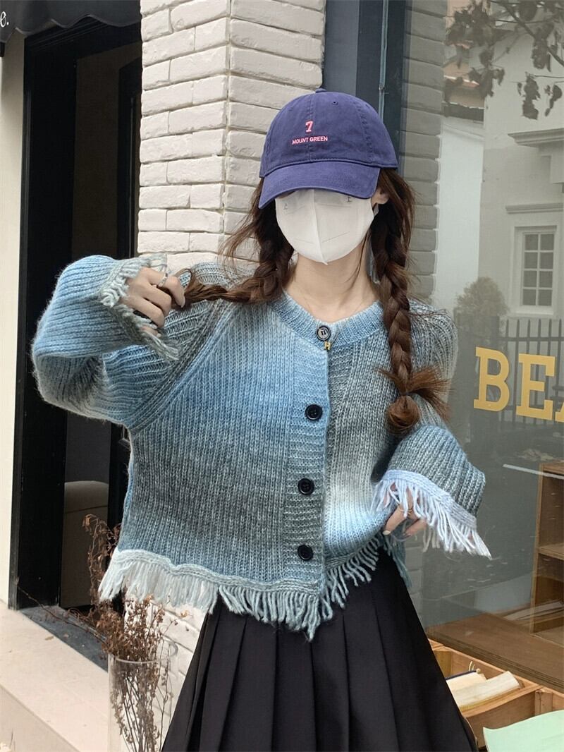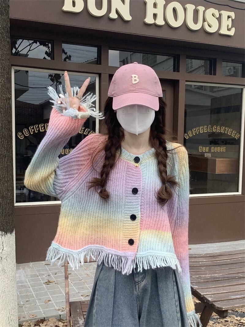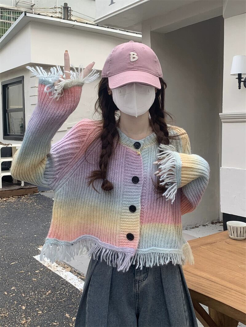 グラデーションレインボーショートカーディガンセータージャケット女性の秋と冬ルーズアウターレイジーテルニットセーター オータム 秋物 ウィンター 冬物 7460010798722910 | framboise21