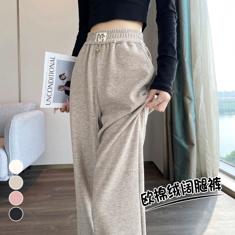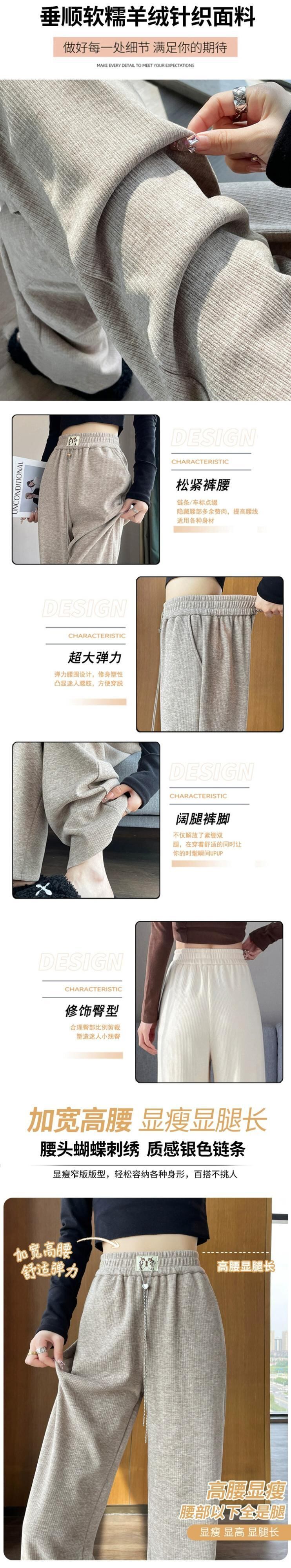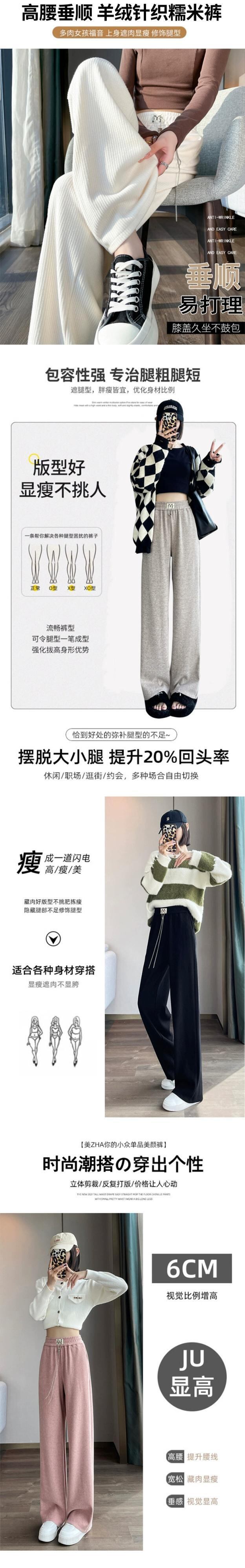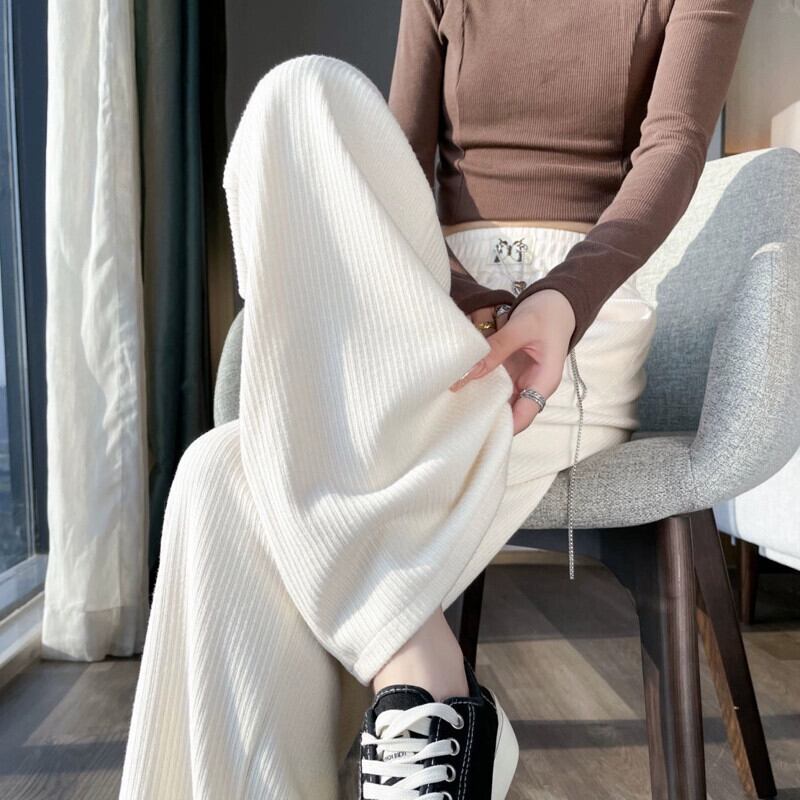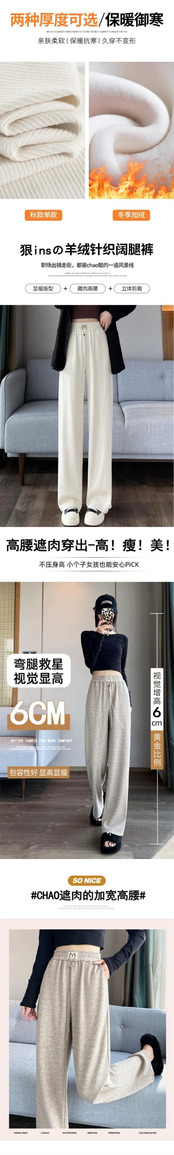 カシミヤニットナローワイドレッグパンツ女性秋冬小柄もち米パンツ弾性ウエストドレープストレートフロアレングスカジュアルパンツ エラスティック 伸縮 オータム 秋物 ウィンター 冬物 7460092048243696 | framboise21