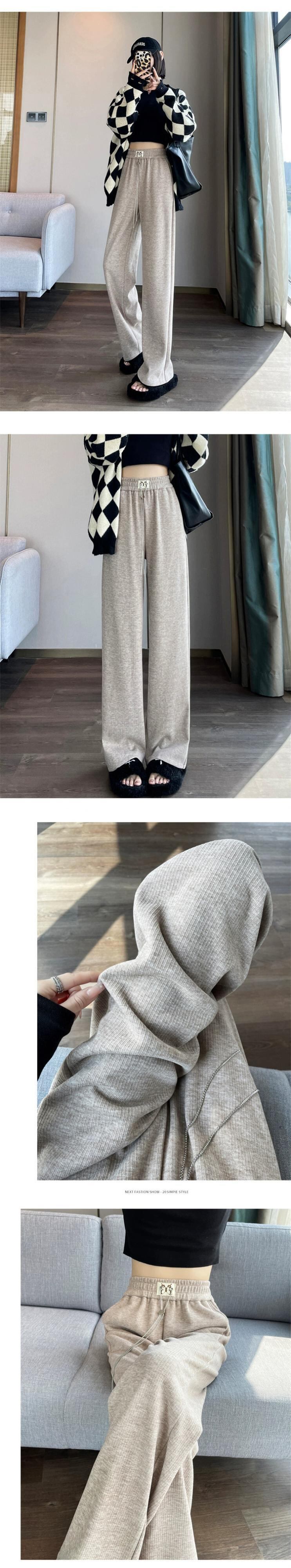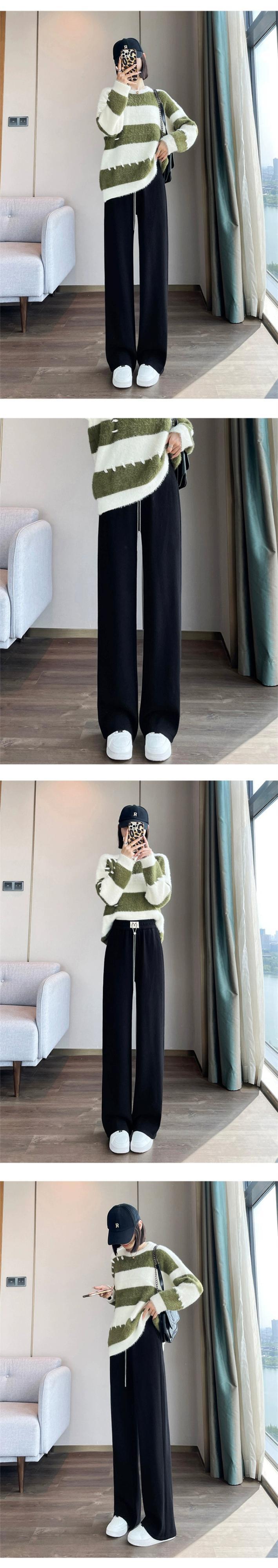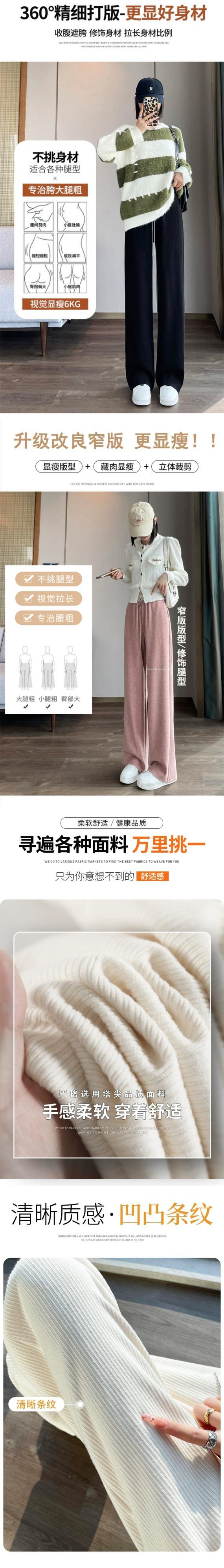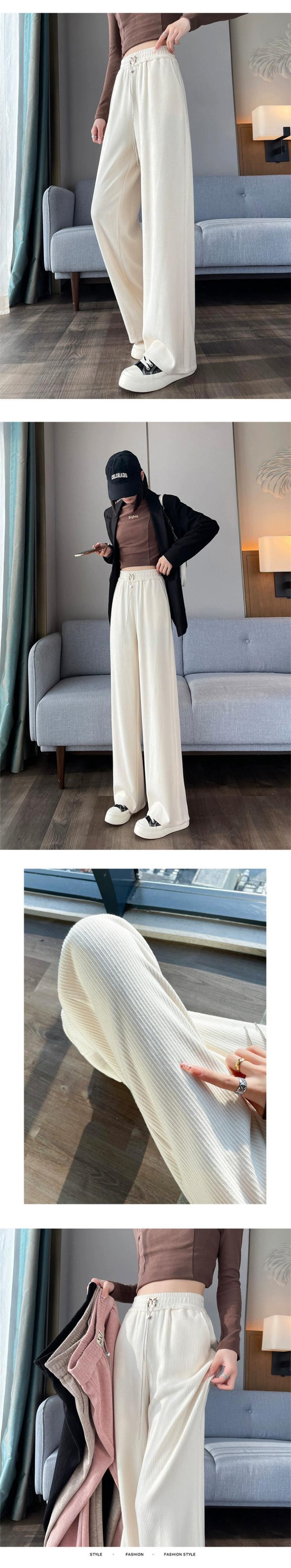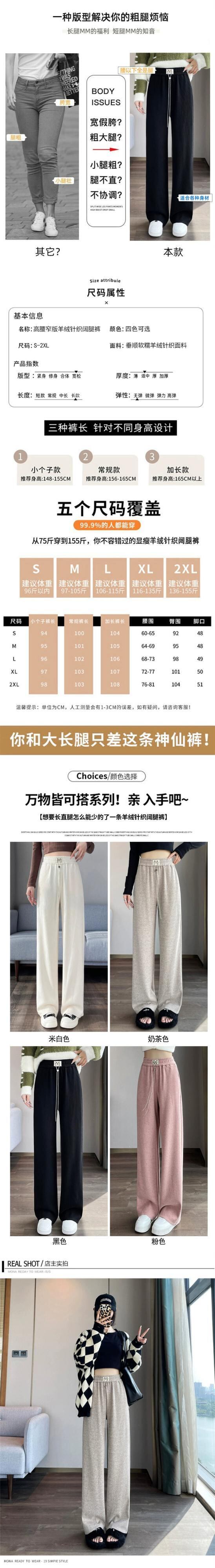 カシミヤニットナローワイドレッグパンツ女性秋冬小柄もち米パンツ弾性ウエストドレープストレートフロアレングスカジュアルパンツ エラスティック 伸縮 オータム 秋物 ウィンター 冬物 7460092048243696 | framboise21