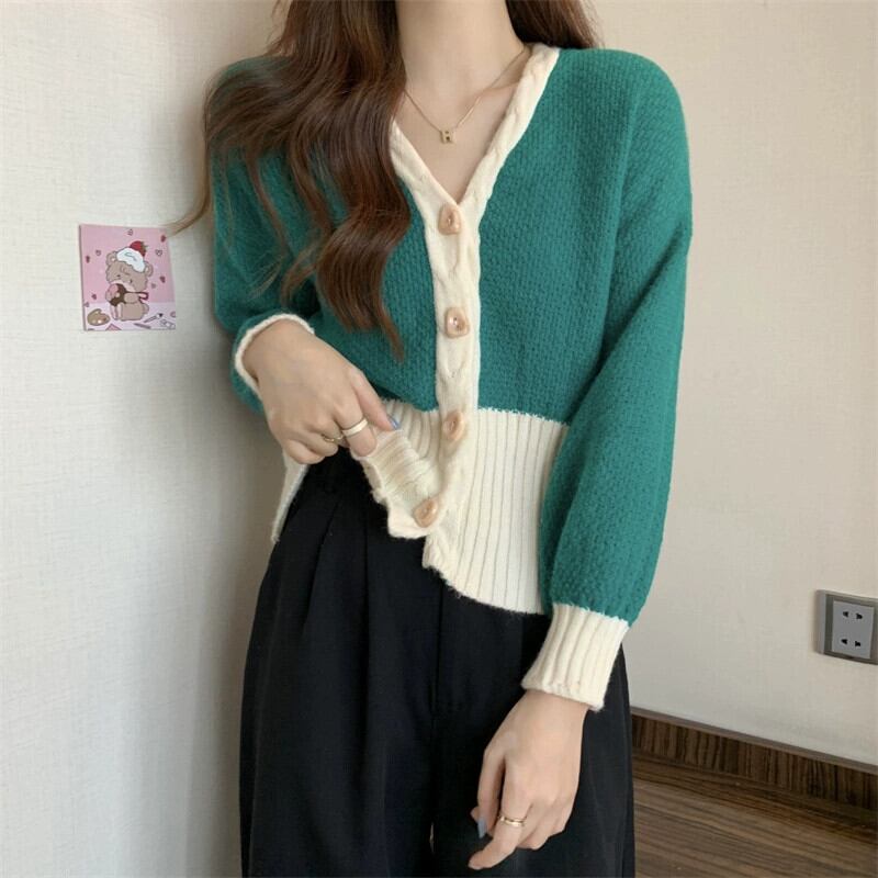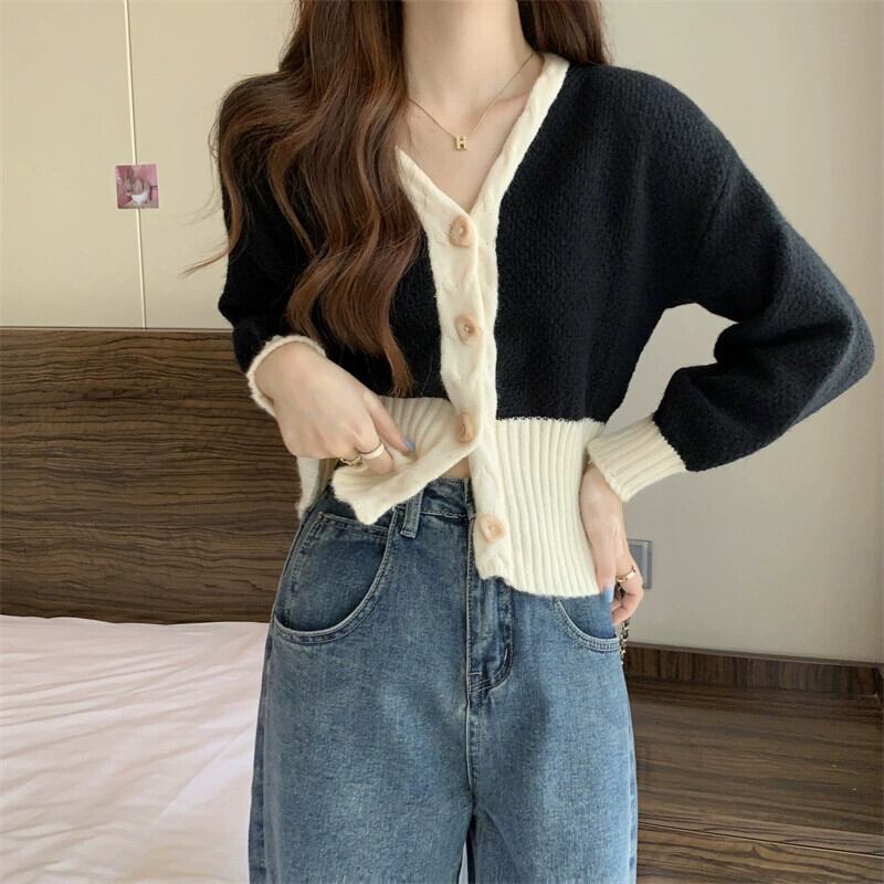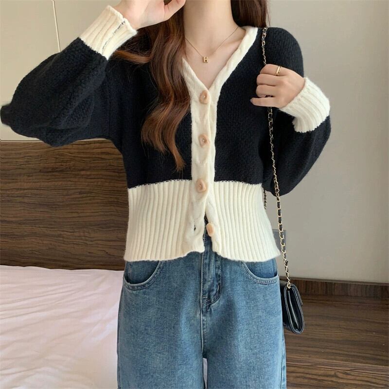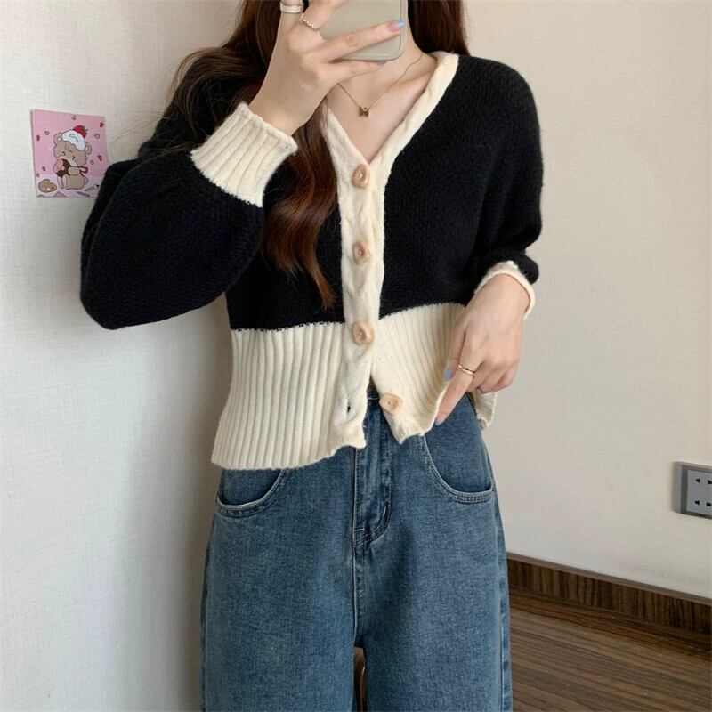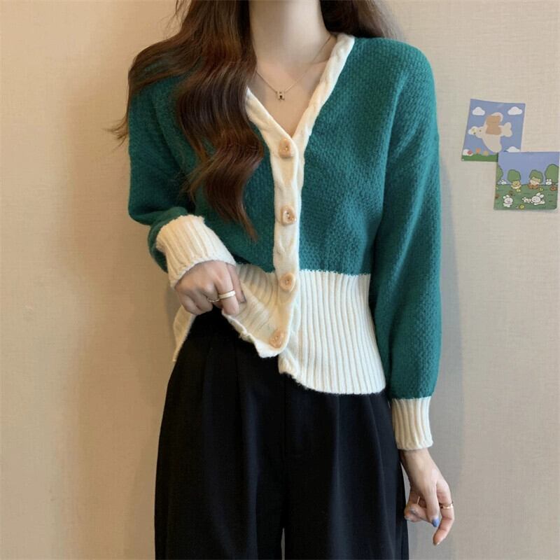 V ネックツイストカーディガンセータージャケット女性の秋と冬のファッショナブルなデザインルーズアウターウェアコントラスト長袖ニットトップ ロング オータム 秋物 ウィンター 冬物 Vネック 7460036415470421 | framboise21