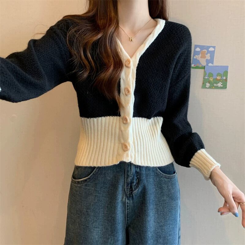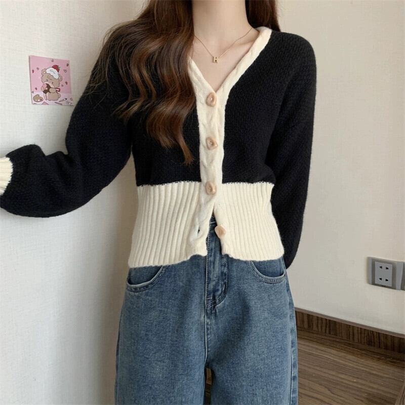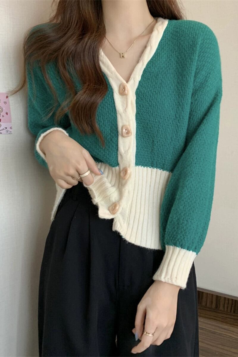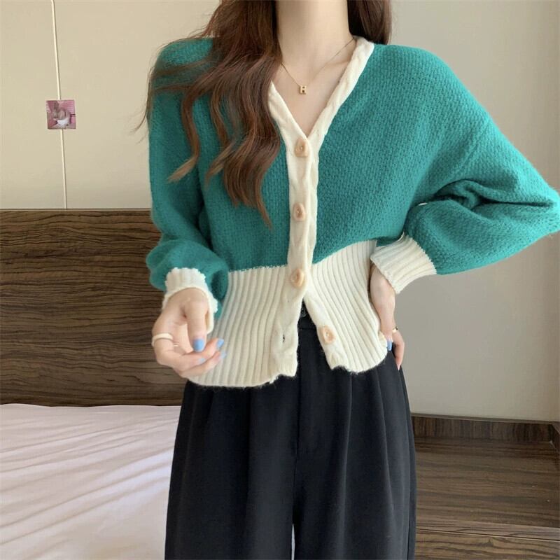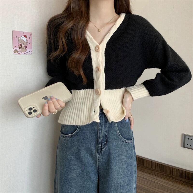 V ネックツイストカーディガンセータージャケット女性の秋と冬のファッショナブルなデザインルーズアウターウェアコントラスト長袖ニットトップ ロング オータム 秋物 ウィンター 冬物 Vネック 7460036415470421 | framboise21