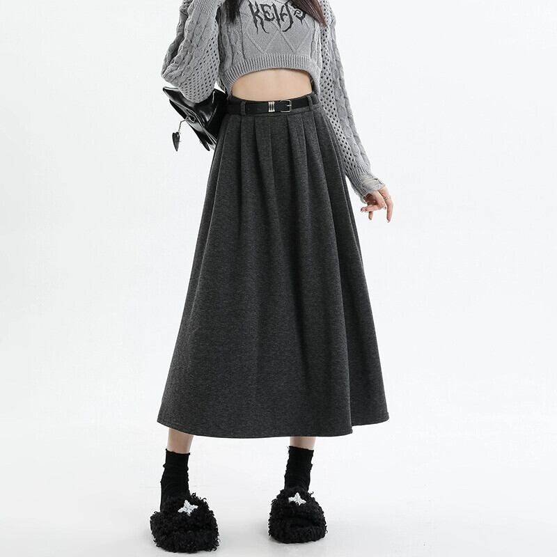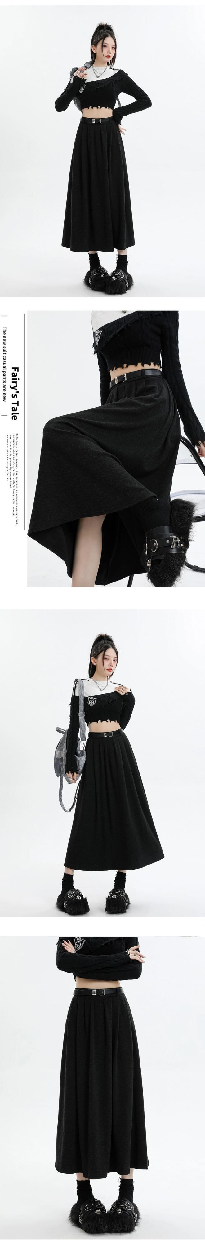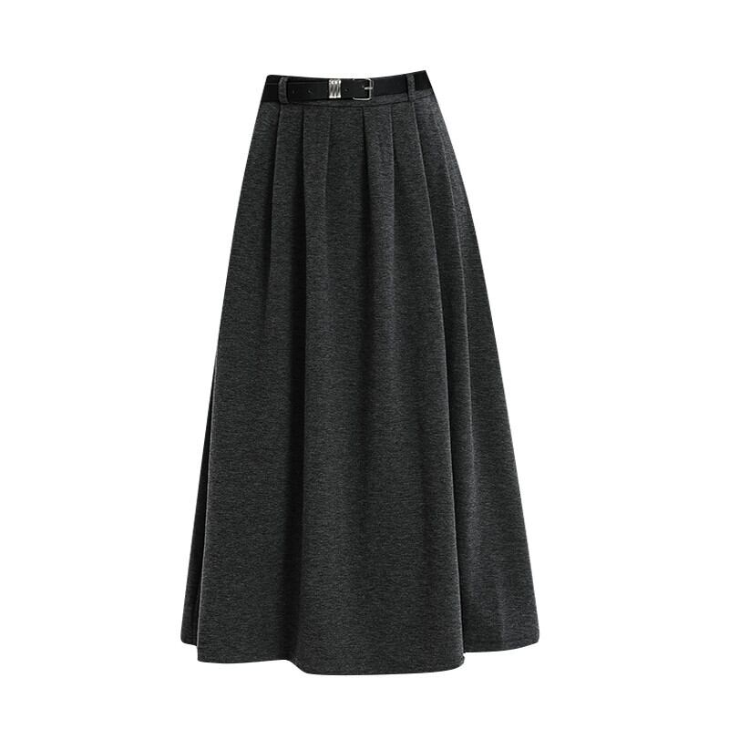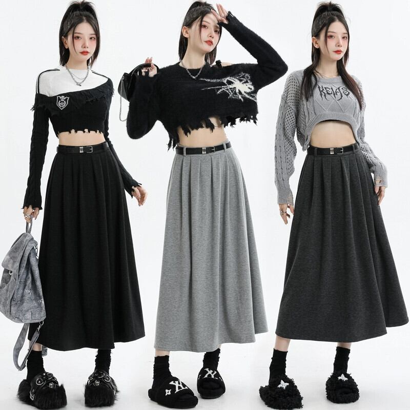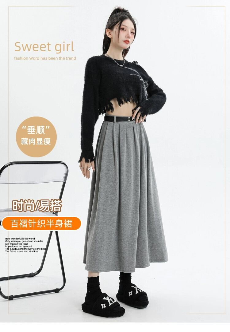 ミドル丈ニットスカートレディース、2023年秋冬新作Aラインスカート、ハイウエスト、痩身、股間カバー、ドレープ、黒ロングスカート ハイウェスト ブラック オータム 秋物 ウィンター 冬物 7460052752367066 | framboise21