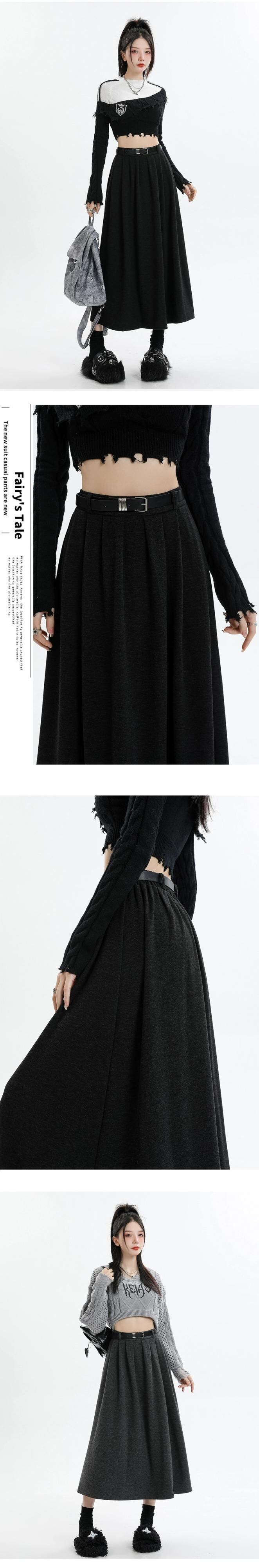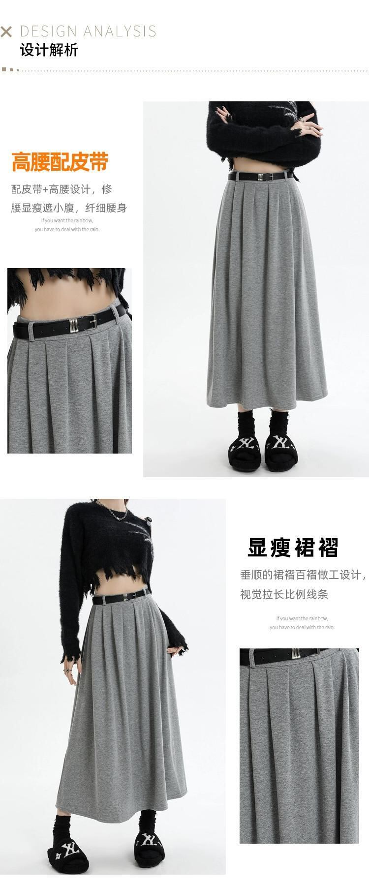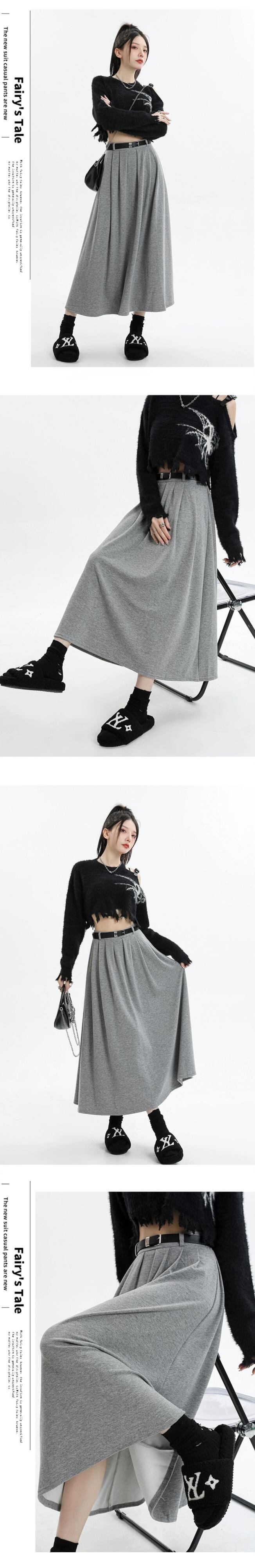 ミドル丈ニットスカートレディース、2023年秋冬新作Aラインスカート、ハイウエスト、痩身、股間カバー、ドレープ、黒ロングスカート ハイウェスト ブラック オータム 秋物 ウィンター 冬物 7460052752367066 | framboise21
