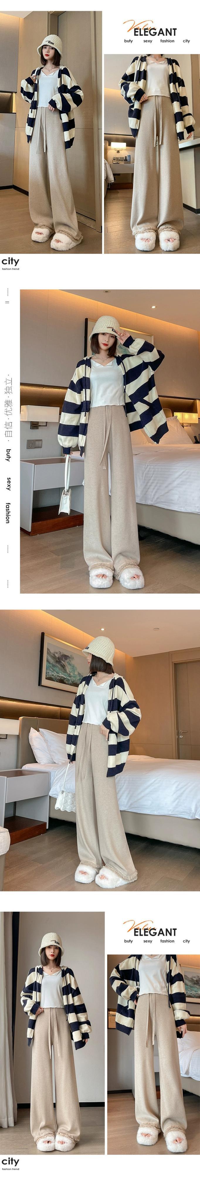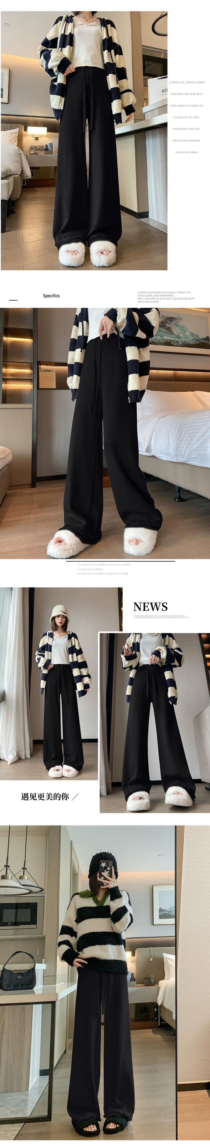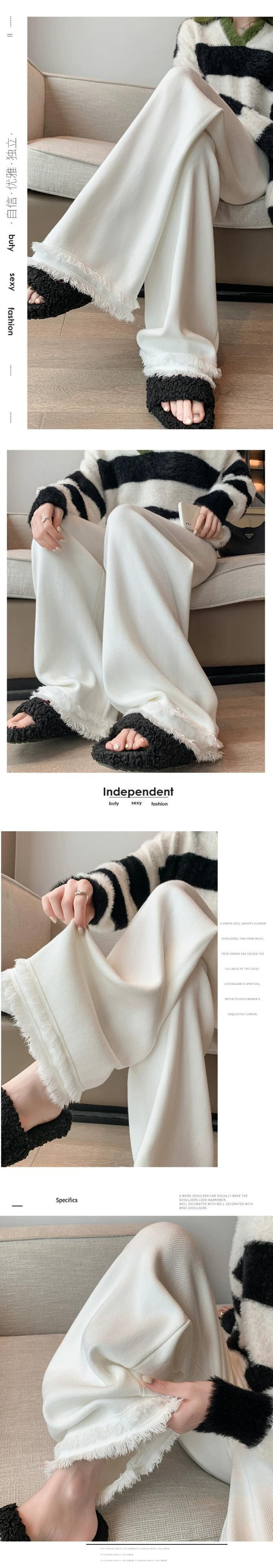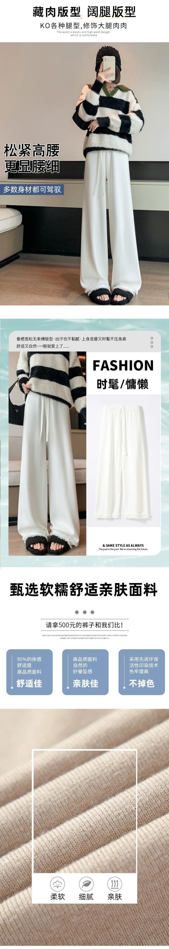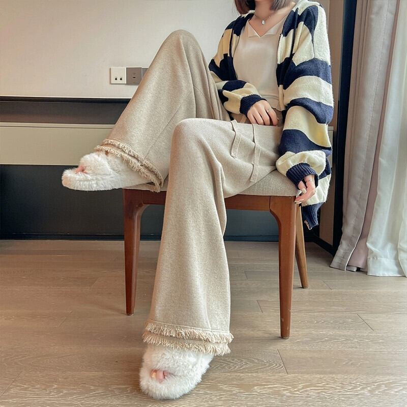 秋と冬のテルニットワイドレッグパンツレディース、ハイウエスト、細いエッジのもち米パンツ、ゆるいストレートレッグの柔らかいもち米カジュアルフロアモップパンツ オータム 秋物 ウィンター 冬物 7460058984653351 | framboise21
