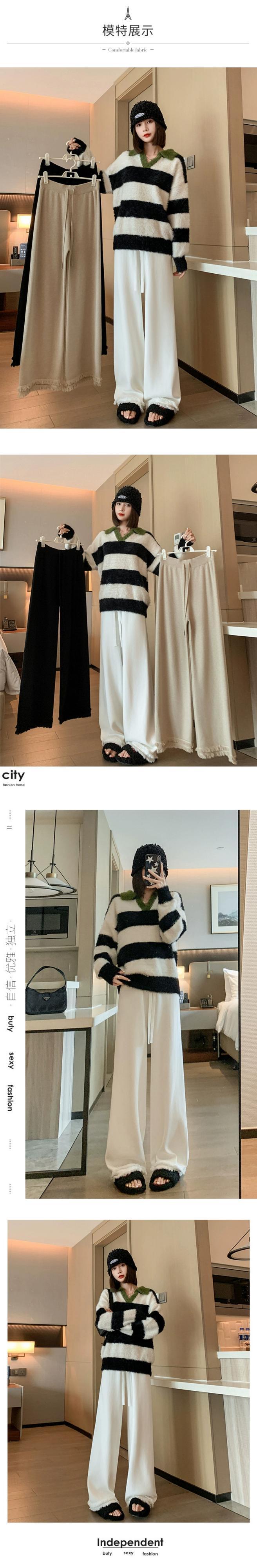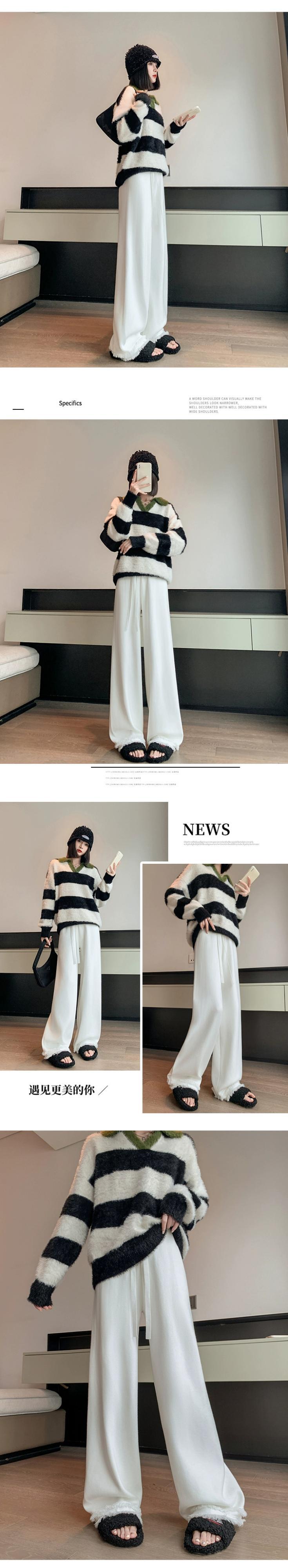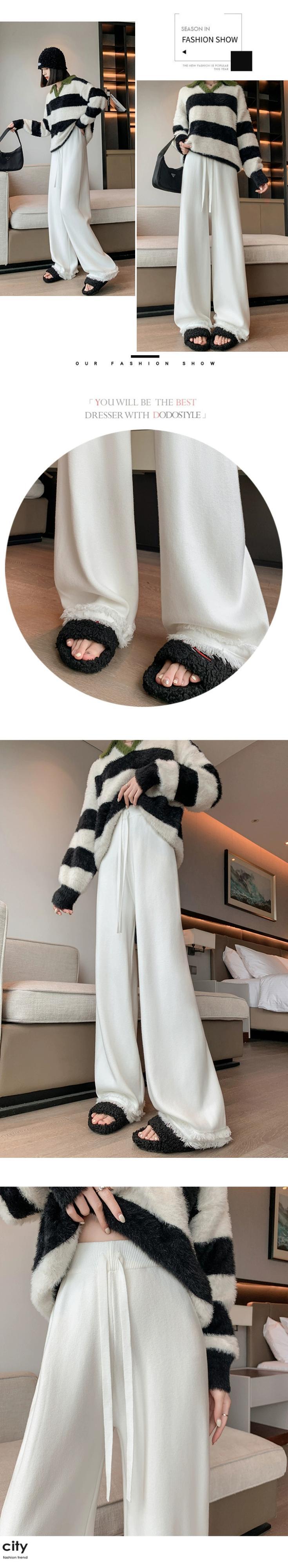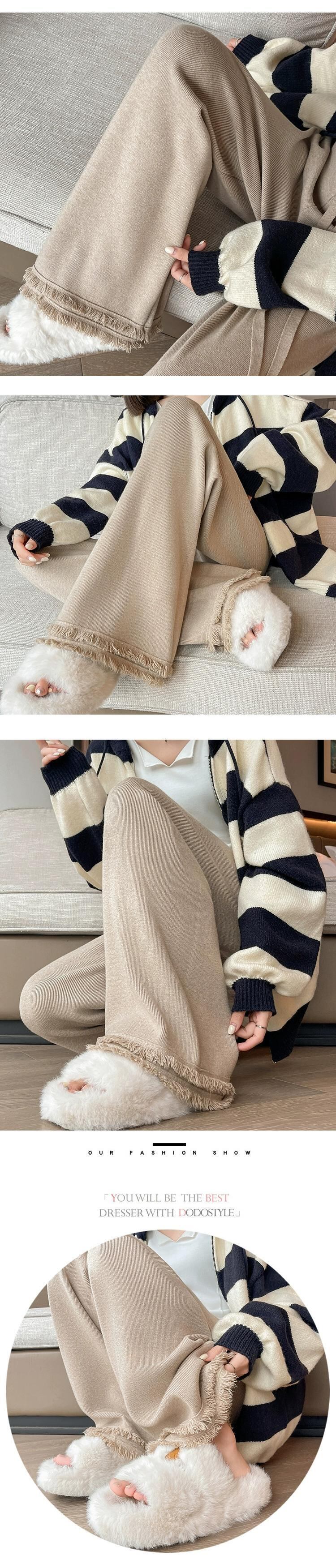秋と冬のテルニットワイドレッグパンツレディース、ハイウエスト、細いエッジのもち米パンツ、ゆるいストレートレッグの柔らかいもち米カジュアルフロアモップパンツ オータム 秋物 ウィンター 冬物 7460058984653351 | framboise21