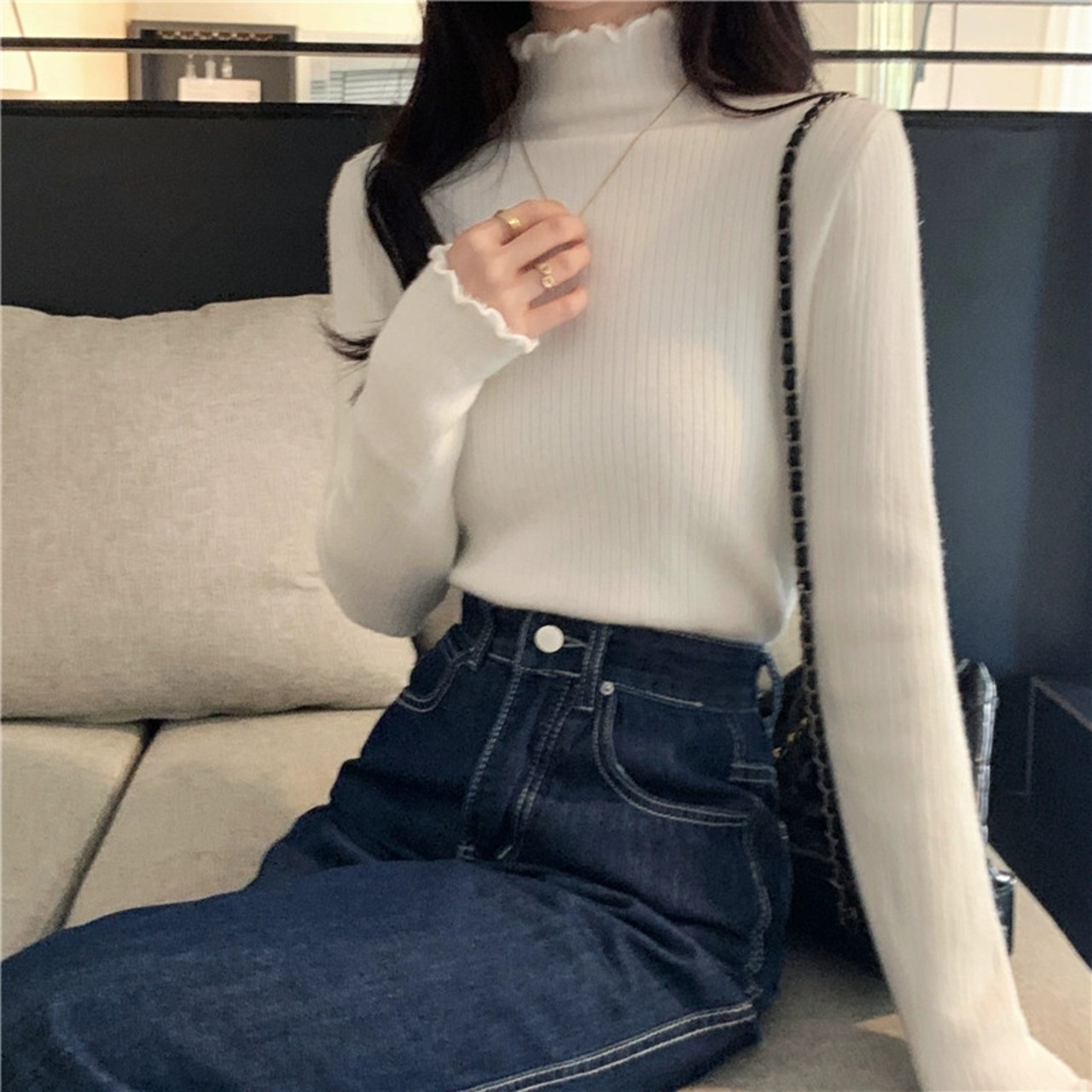 秋と冬の厚いベルベットの底シャツの女性、暖かいハーフタートルネックセーター、ファッショナブルでスリムフィットの白いセーター ホワイト オータム 秋物 ウィンター 冬物 7460077170375990