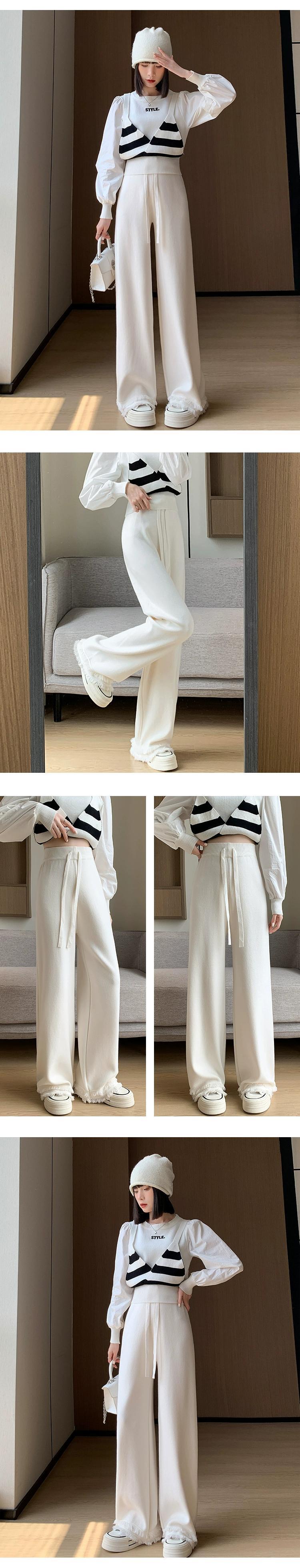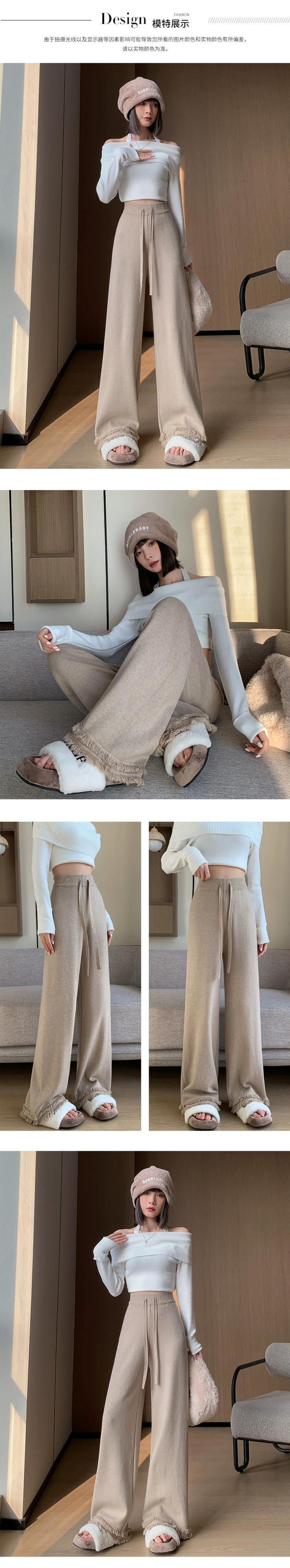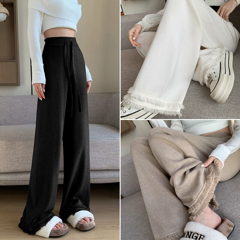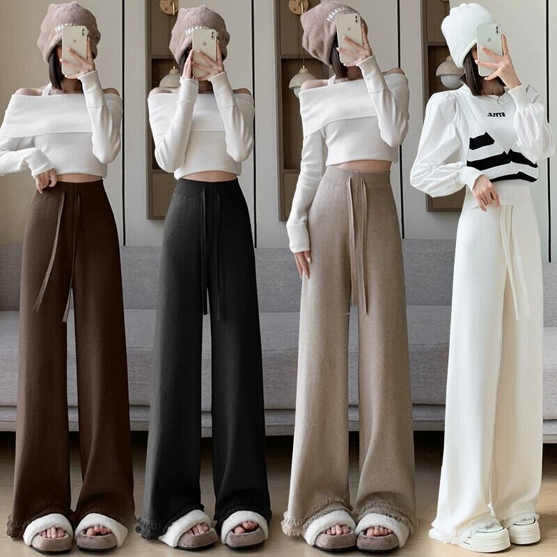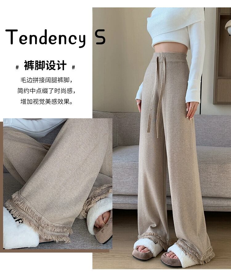 ローエッジテルニットワイドレッグパンツ女性 2023 新しい秋と冬のハイウエストカジュアルドレープ床モップパンツオートミールカラーパンツ ハイウェスト オータム 秋物 ウィンター 冬物 ワイドパンツ 7460026855266489 | framboise21