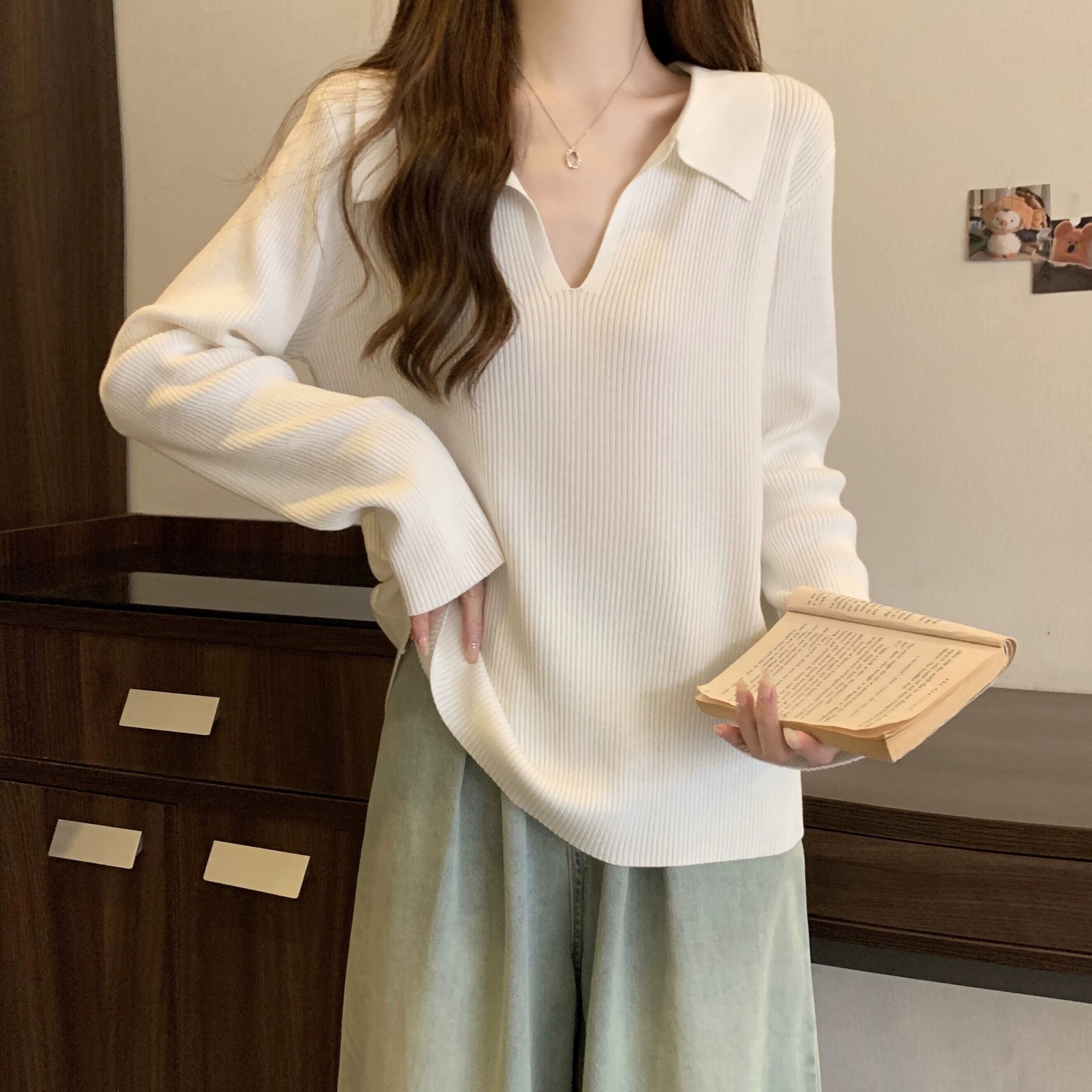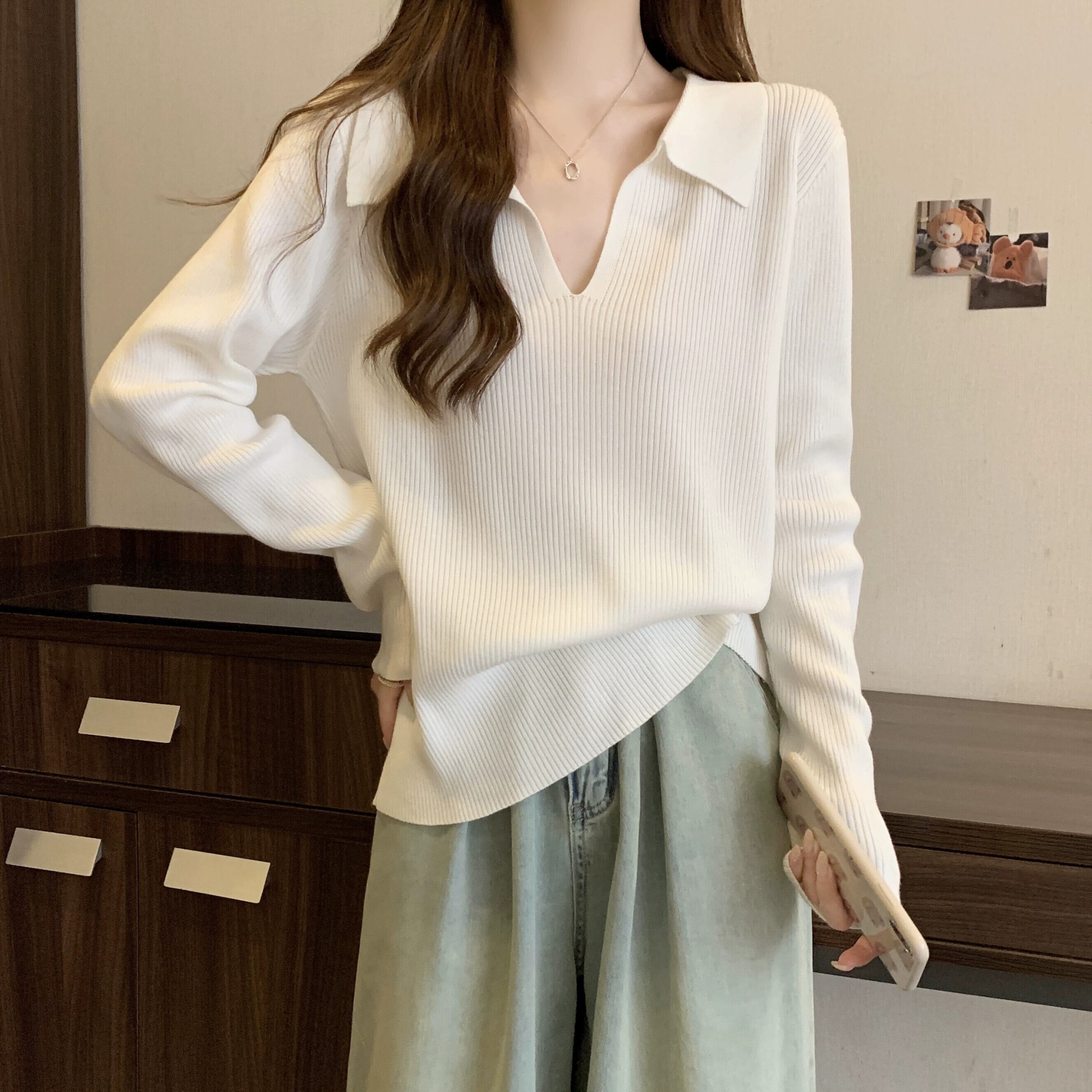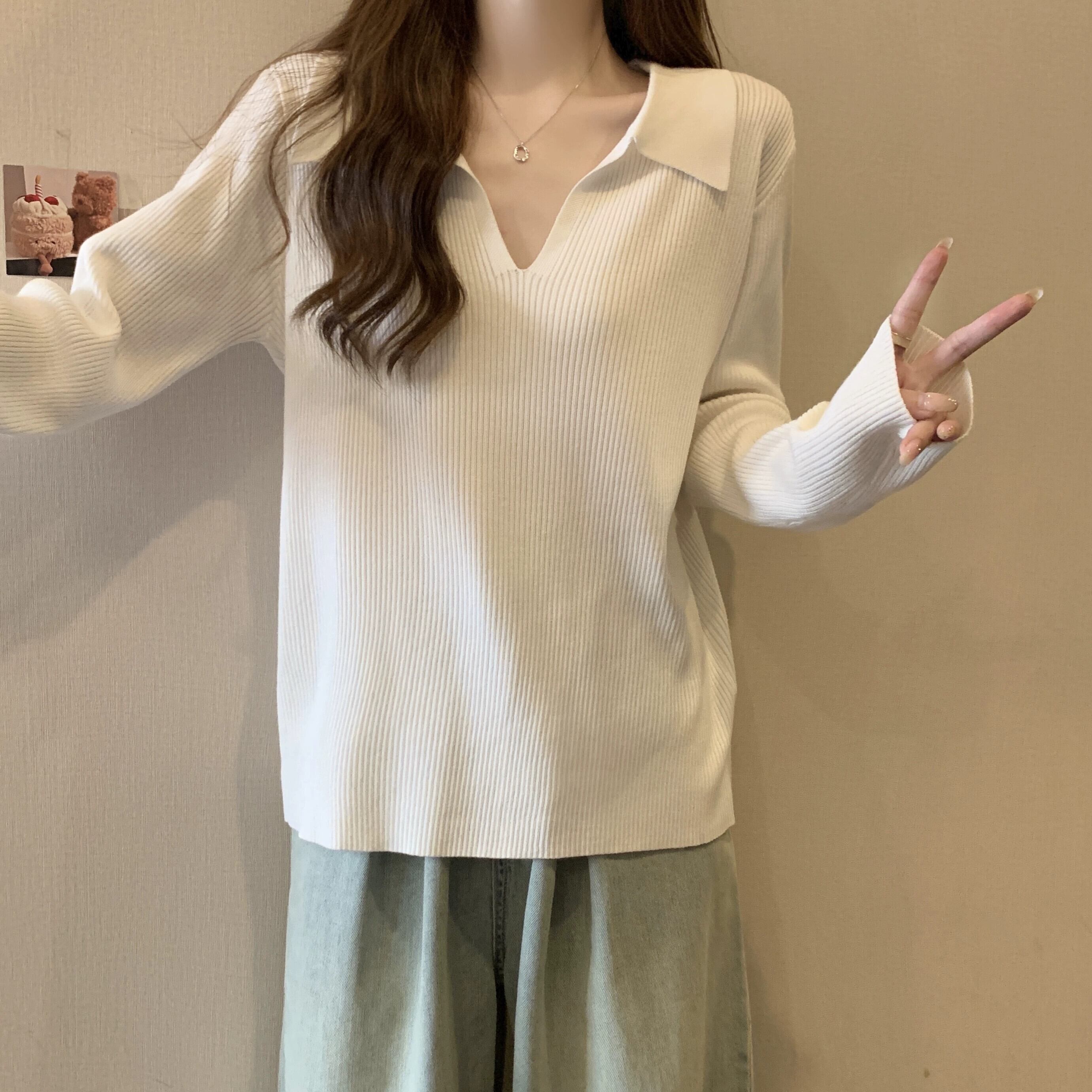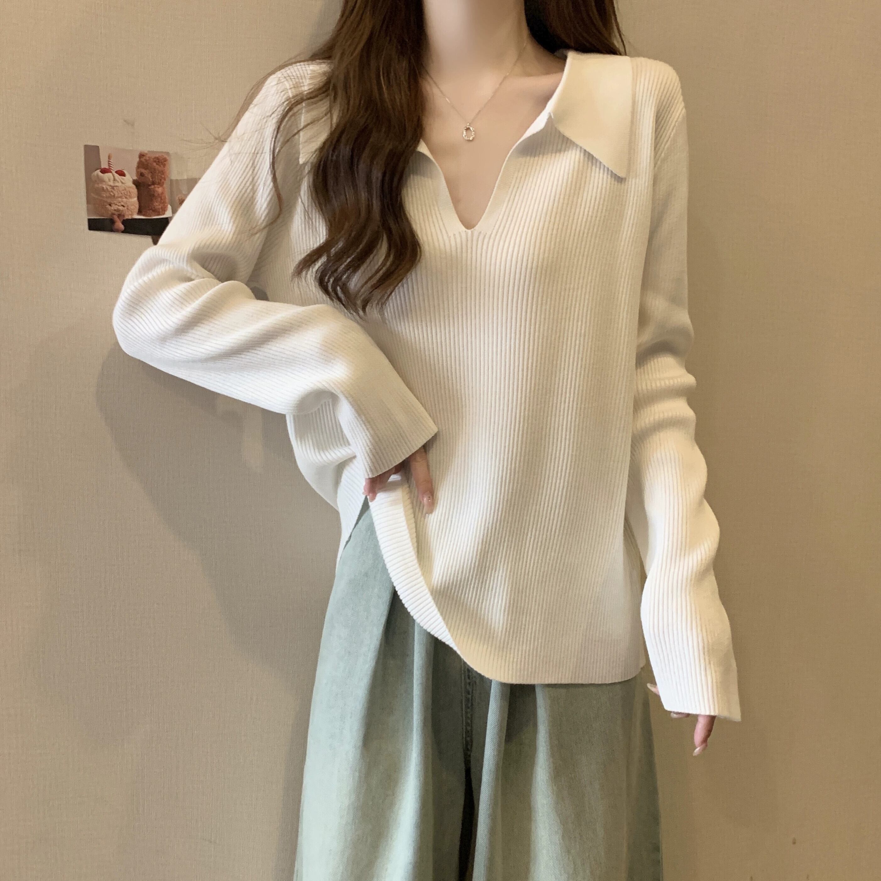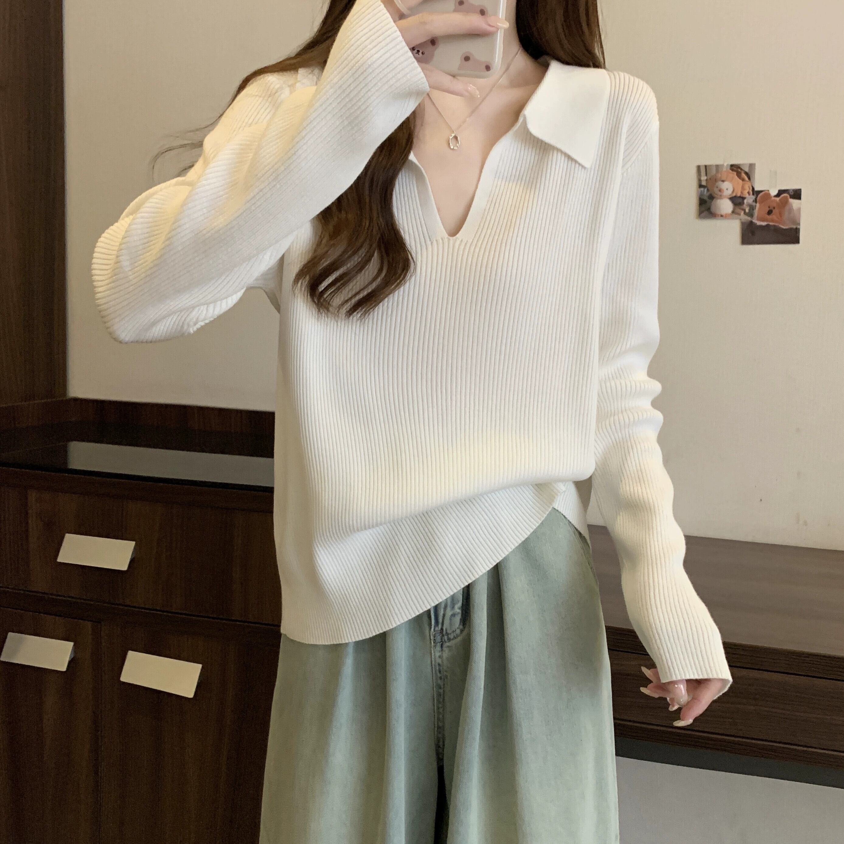 白ニットボトリングシャツ 2023 新しい女性の秋冬スタイルファッショナブルなルーズインナーポロカラー長袖セーター ロング ホワイト オータム 秋物 ウィンター 冬物 74600748859223 | framboise21