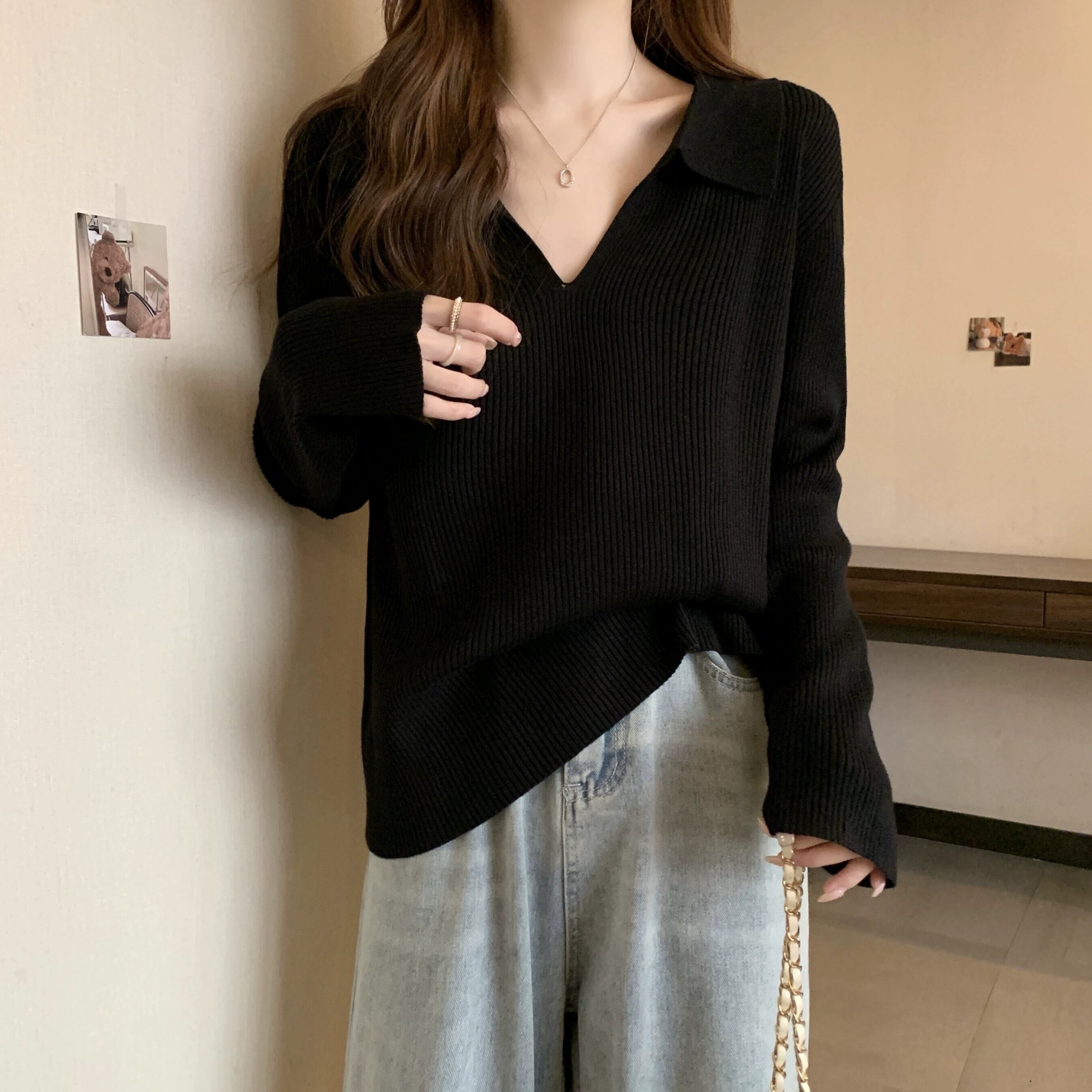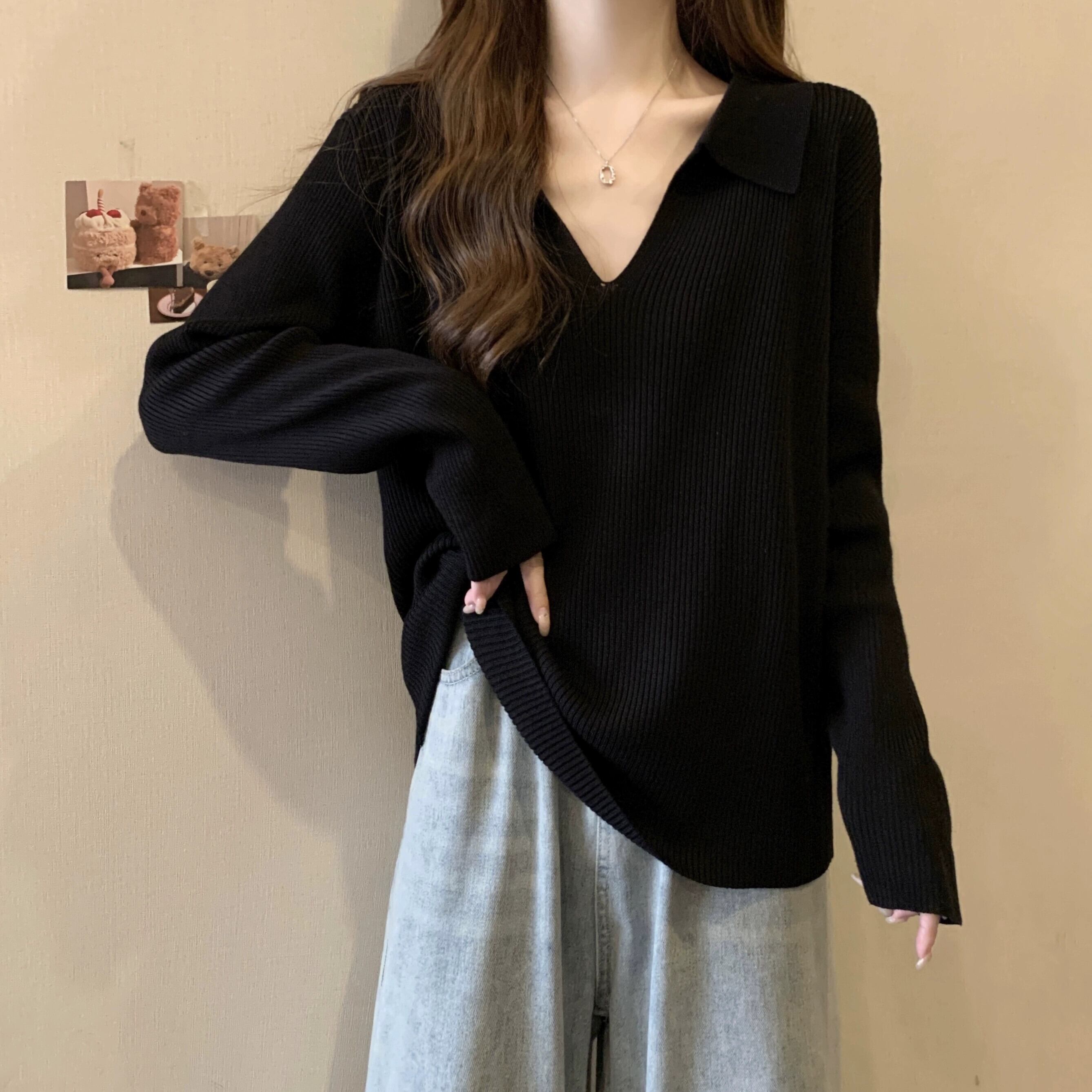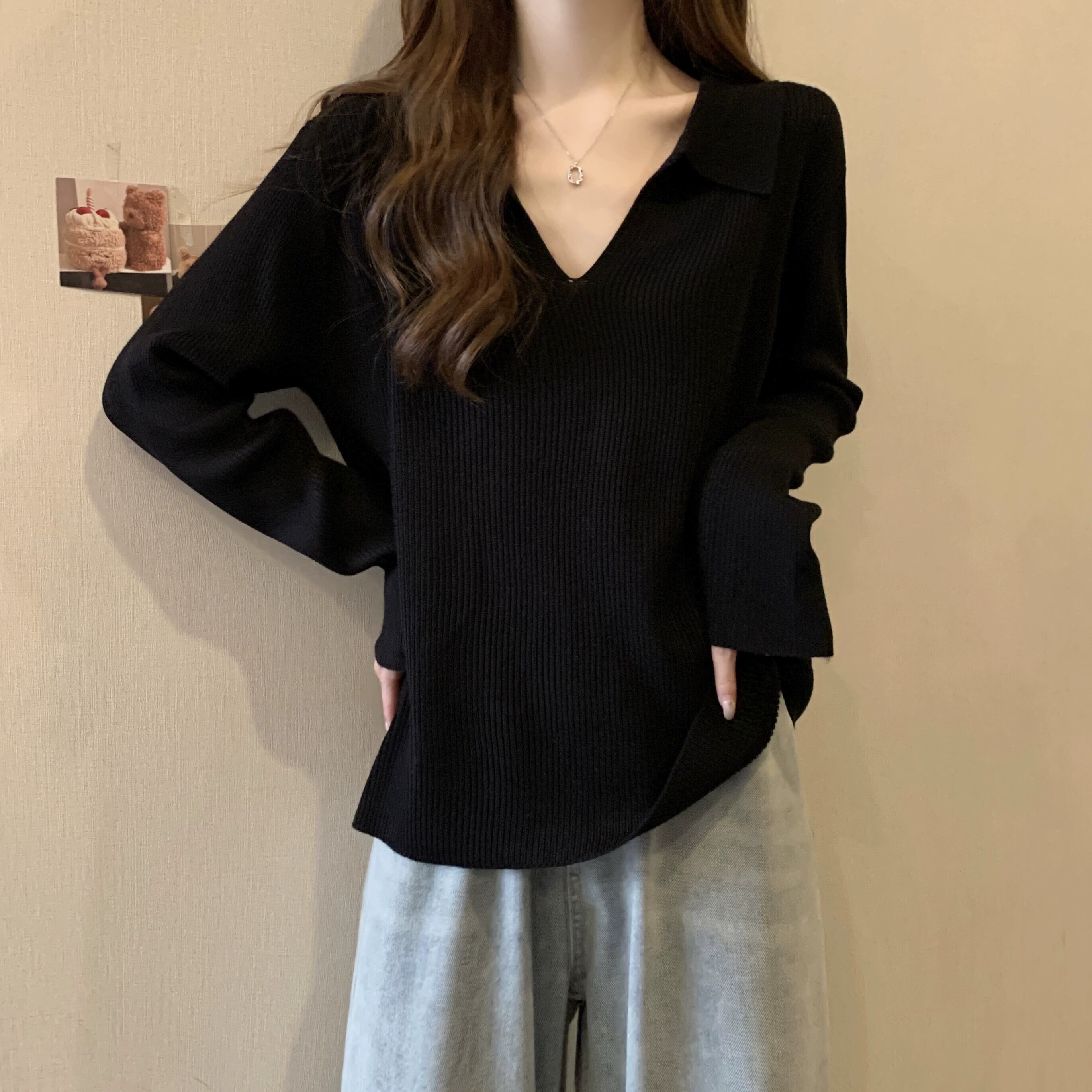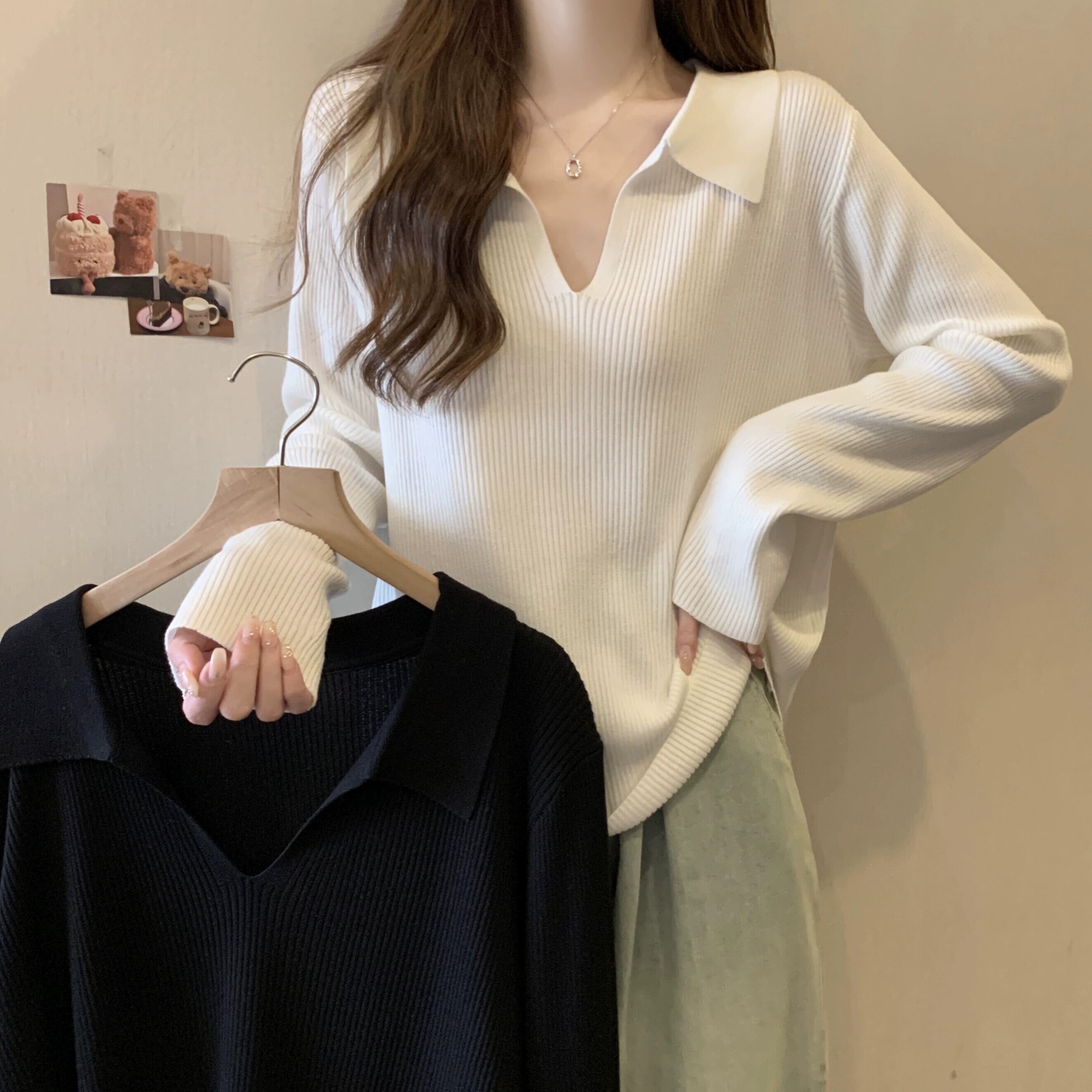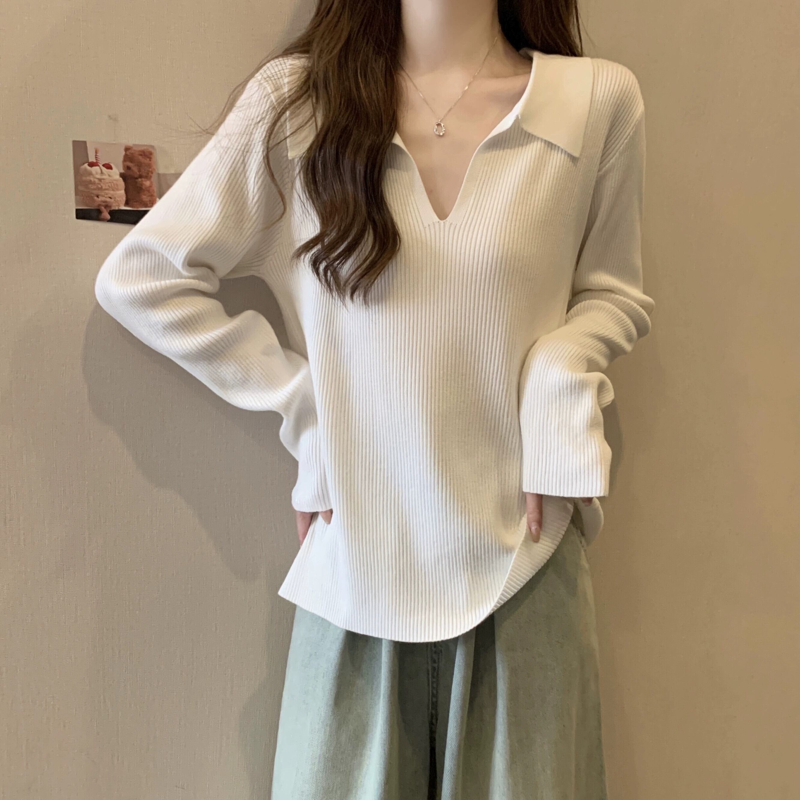 白ニットボトリングシャツ 2023 新しい女性の秋冬スタイルファッショナブルなルーズインナーポロカラー長袖セーター ロング ホワイト オータム 秋物 ウィンター 冬物 74600748859223 | framboise21